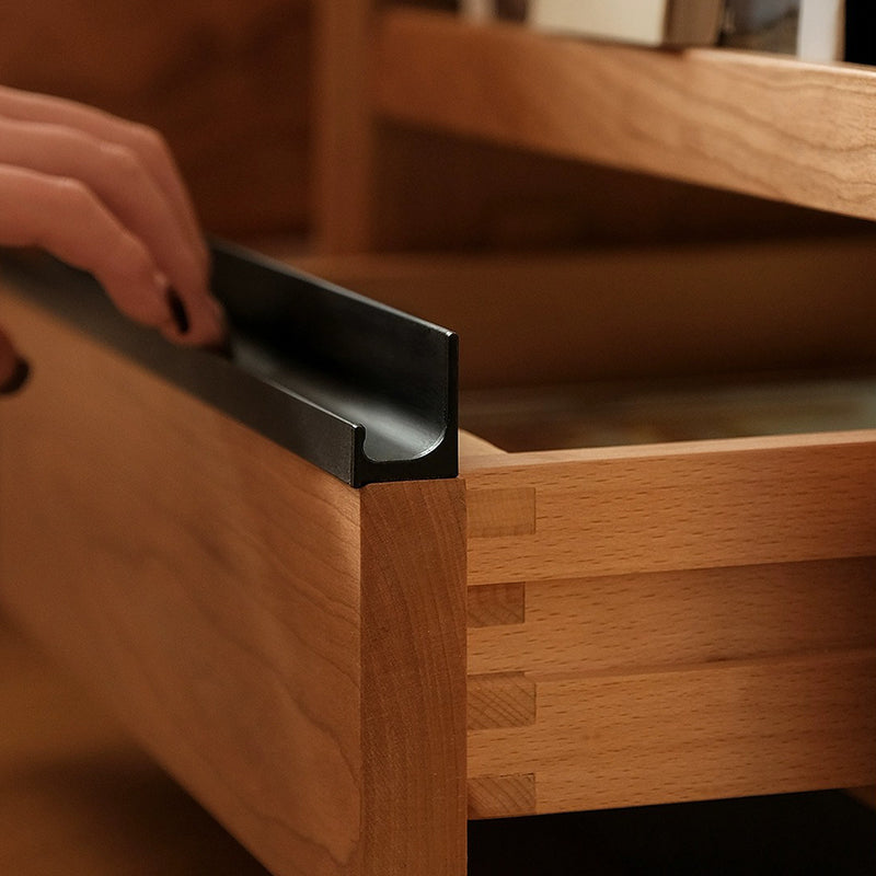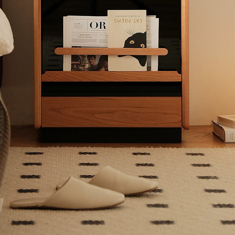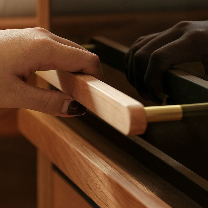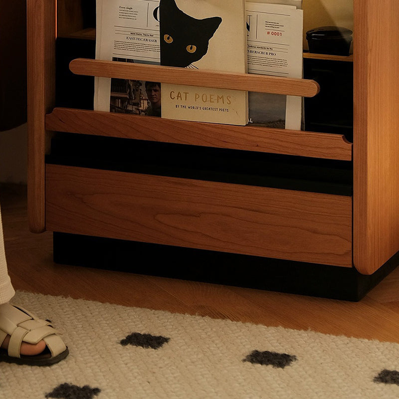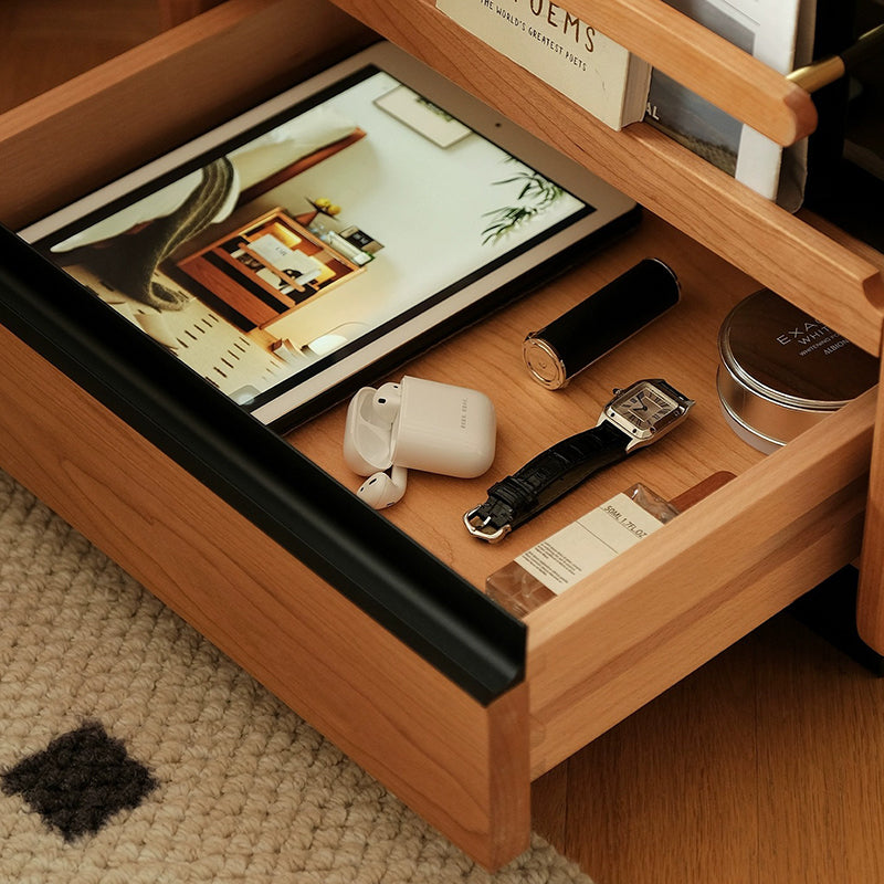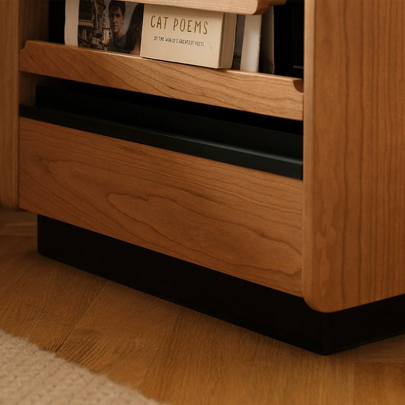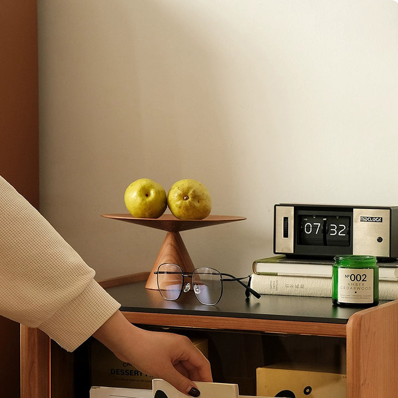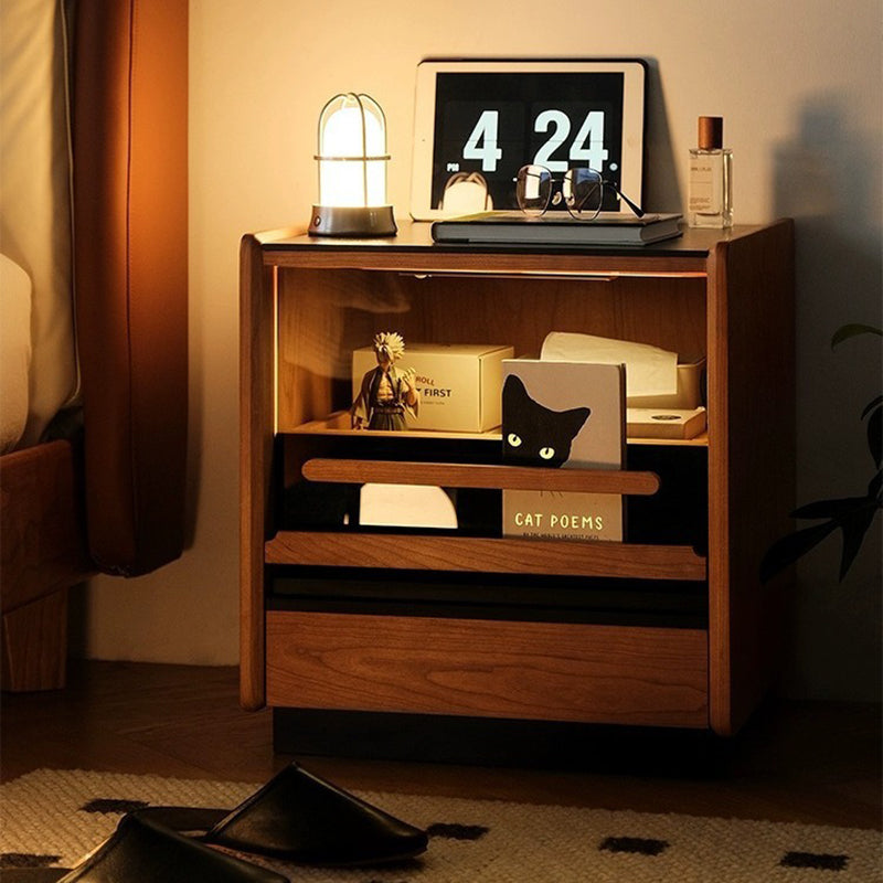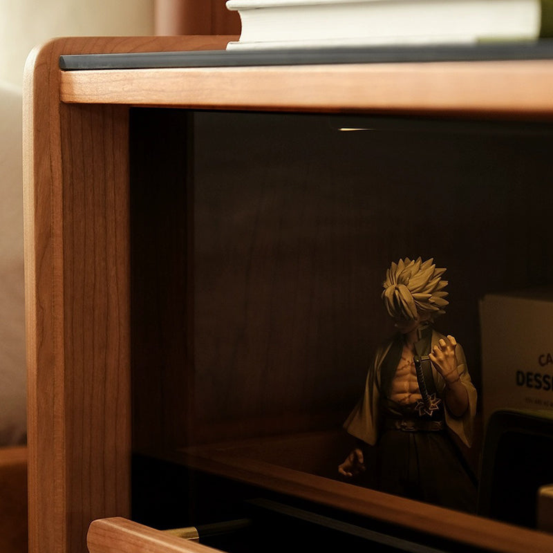 Contemporary Retro Sintered Stone Cherry Wood Nightstand 2 - Drawer For Bedroom