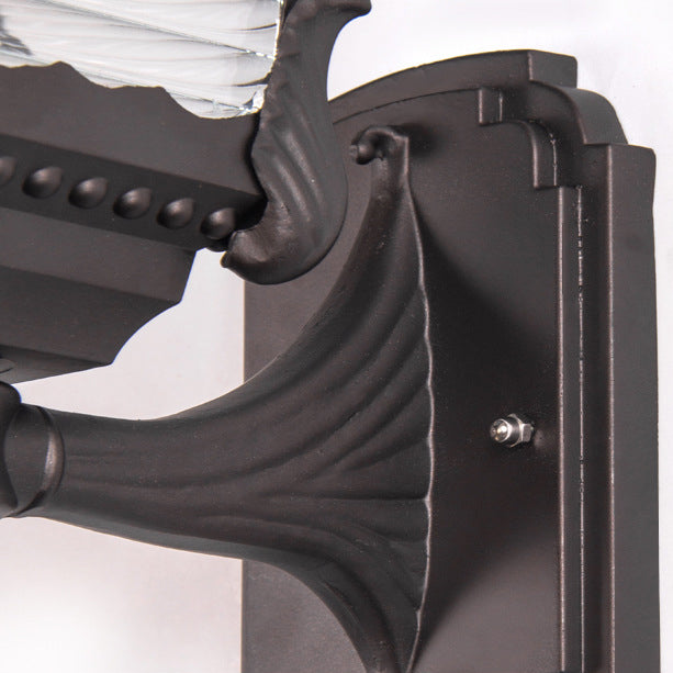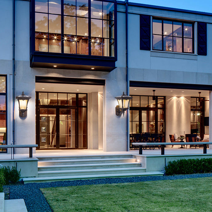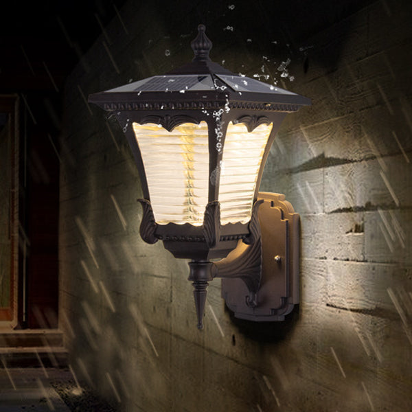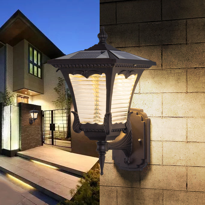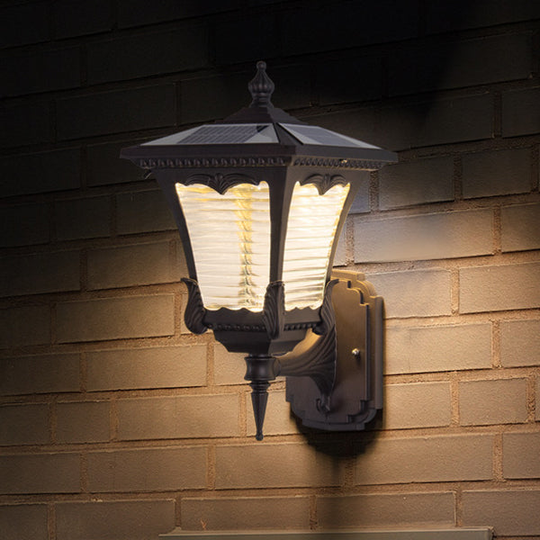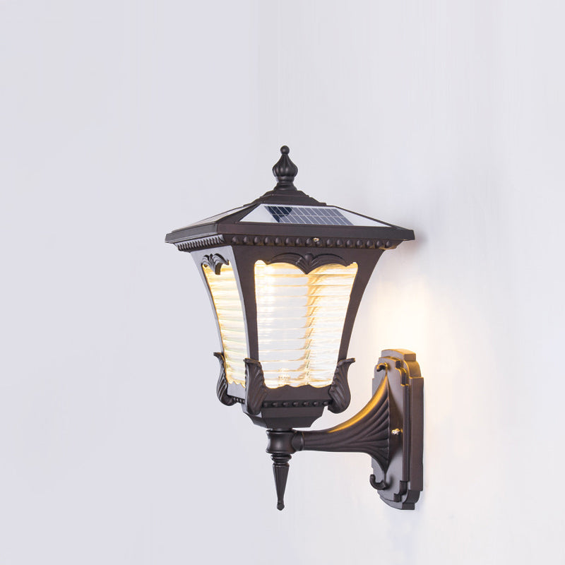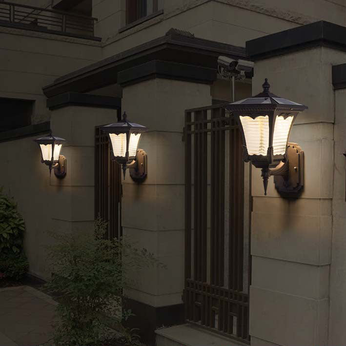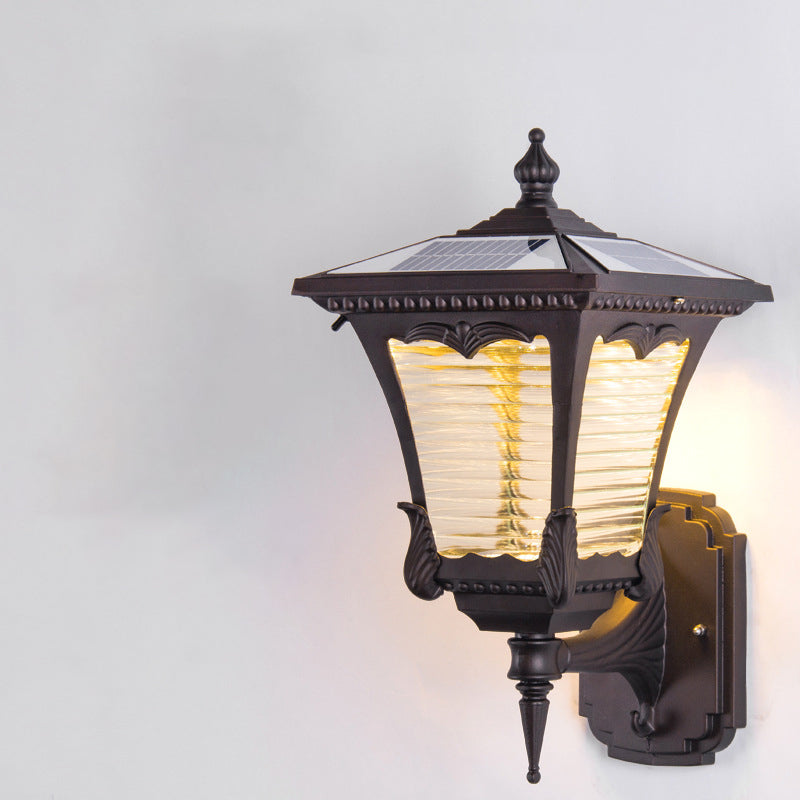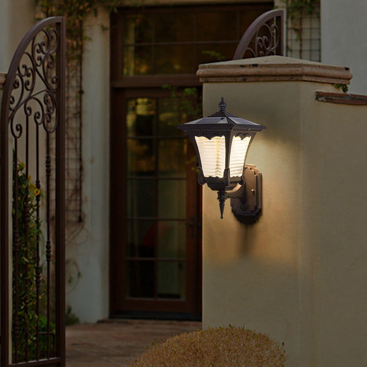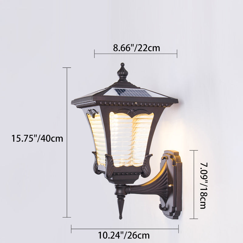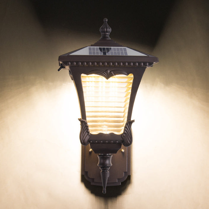 Contemporary Retro Solar Waterproof Aluminum Glass Quadrilateral Striped Lantern LED Wall Sconce Lamp For Outdoor Patio