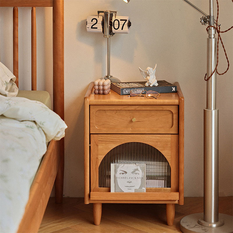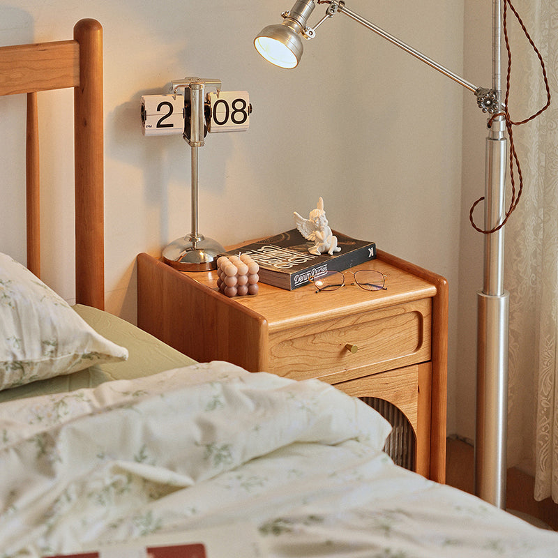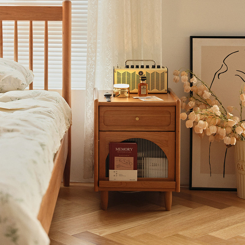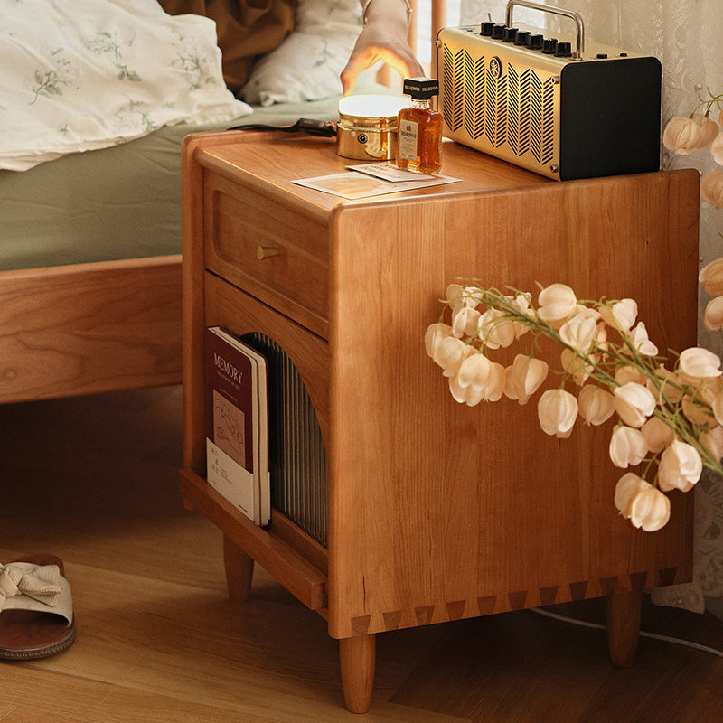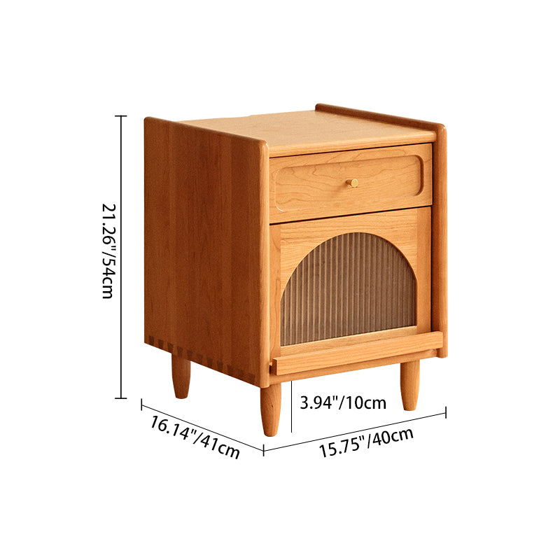 Contemporary Retro Solid Wood Cube Nightstand 1-Drawer Storage Cabinet For Bedroom