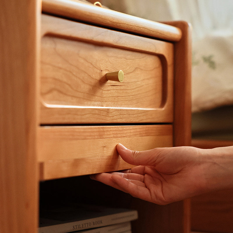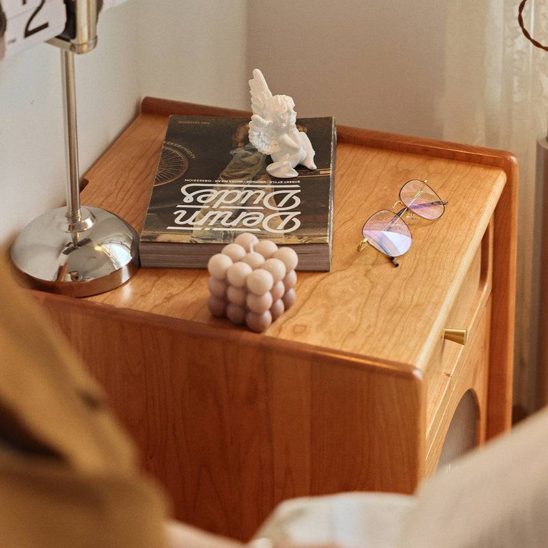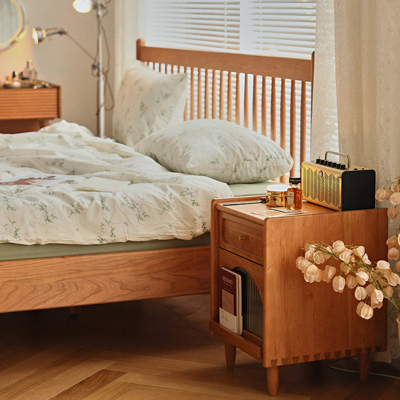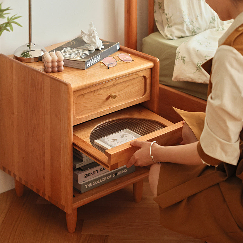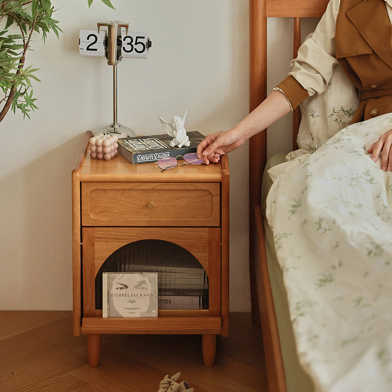 Contemporary Retro Solid Wood Cube Nightstand 1-Drawer Storage Cabinet For Bedroom