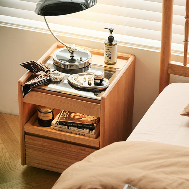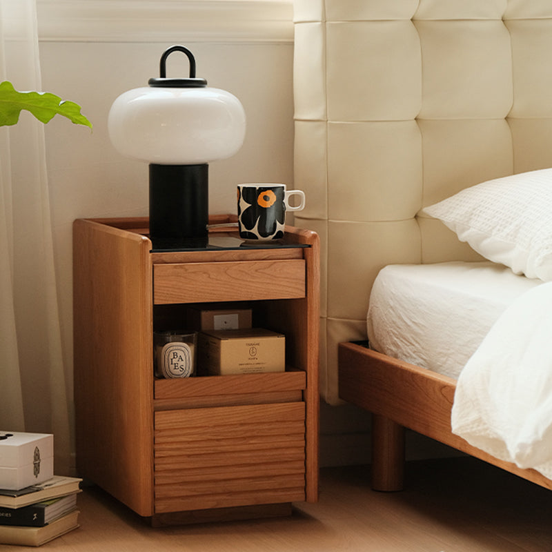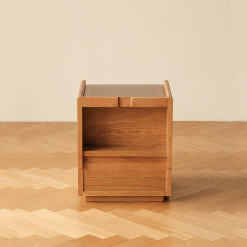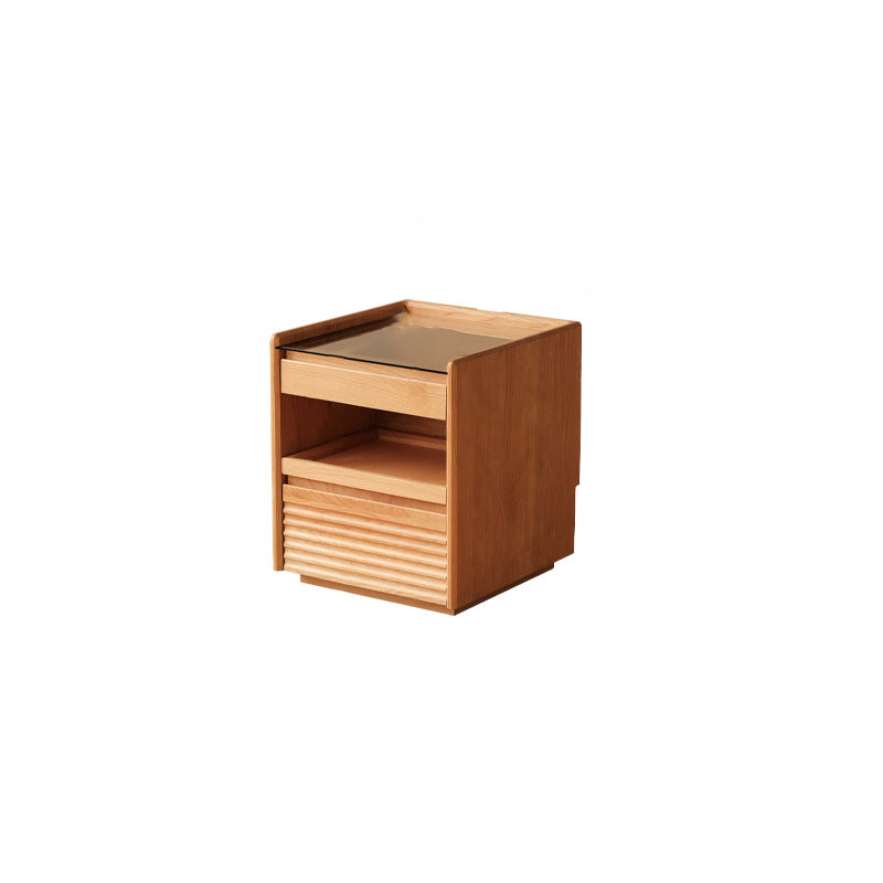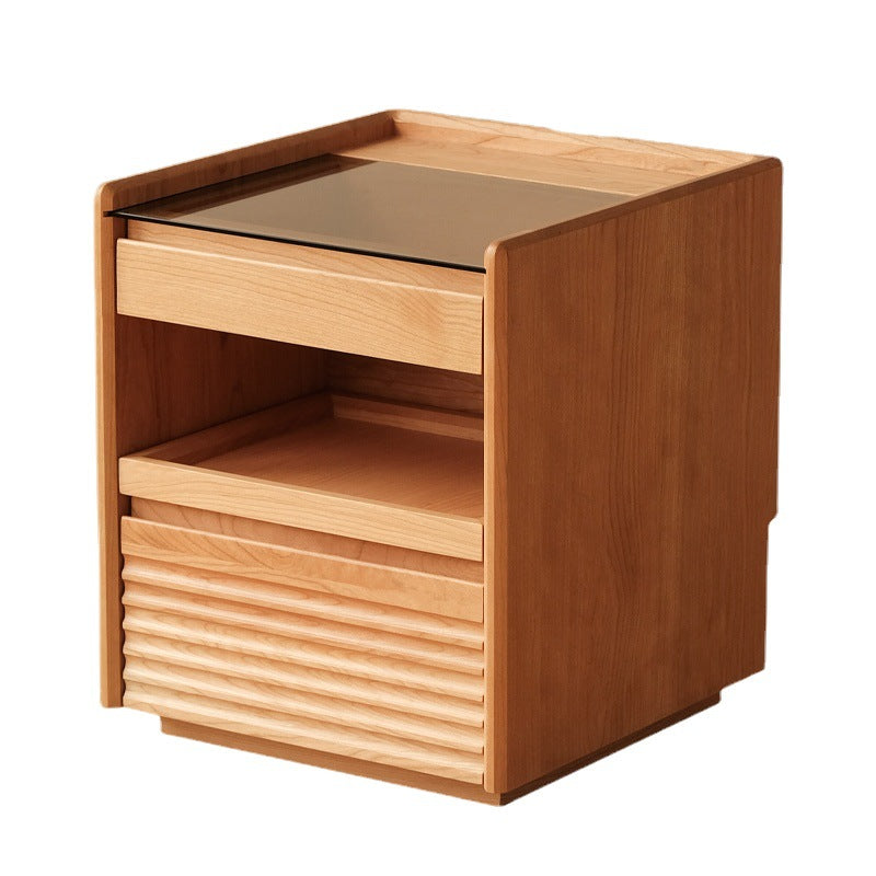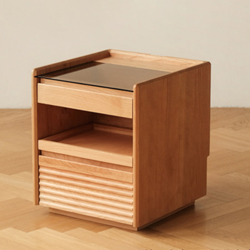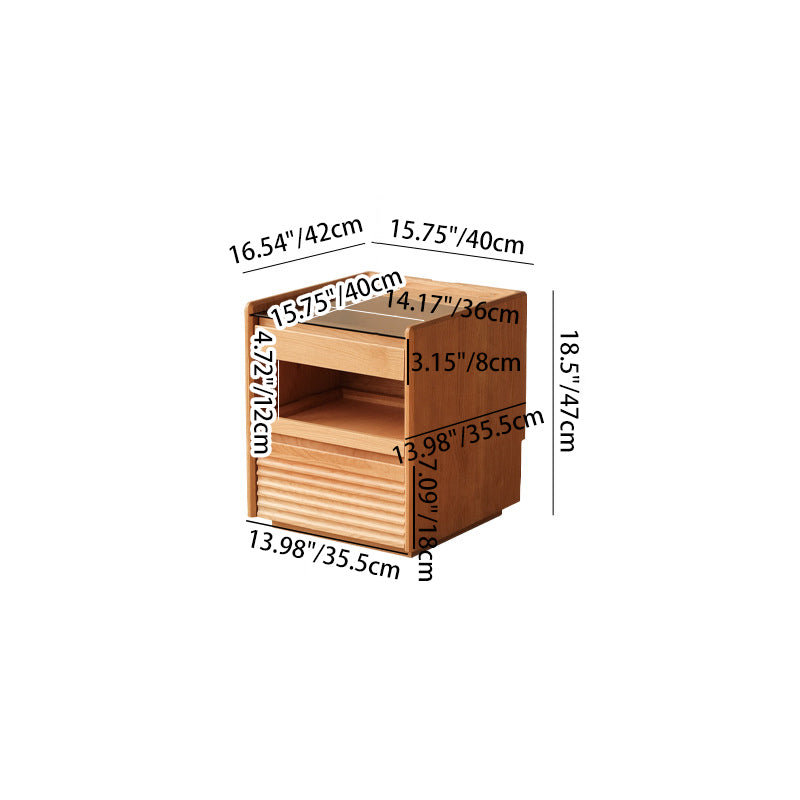 Contemporary Retro Solid Wood Cube Nightstand 3-Drawer For Bedroom