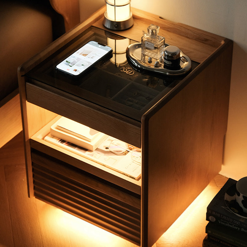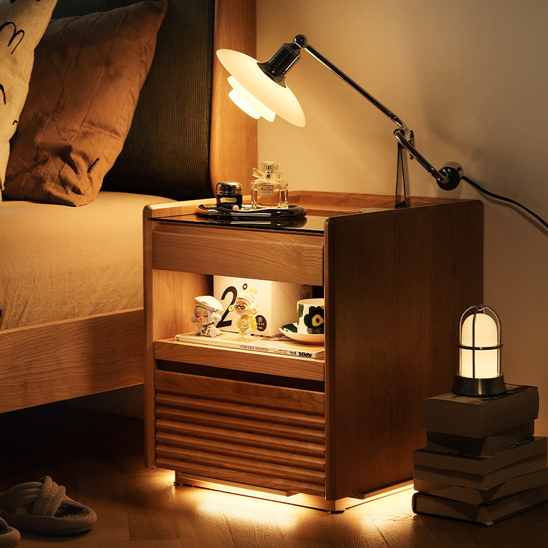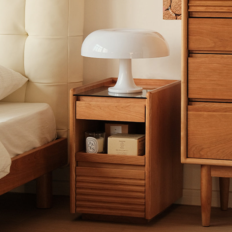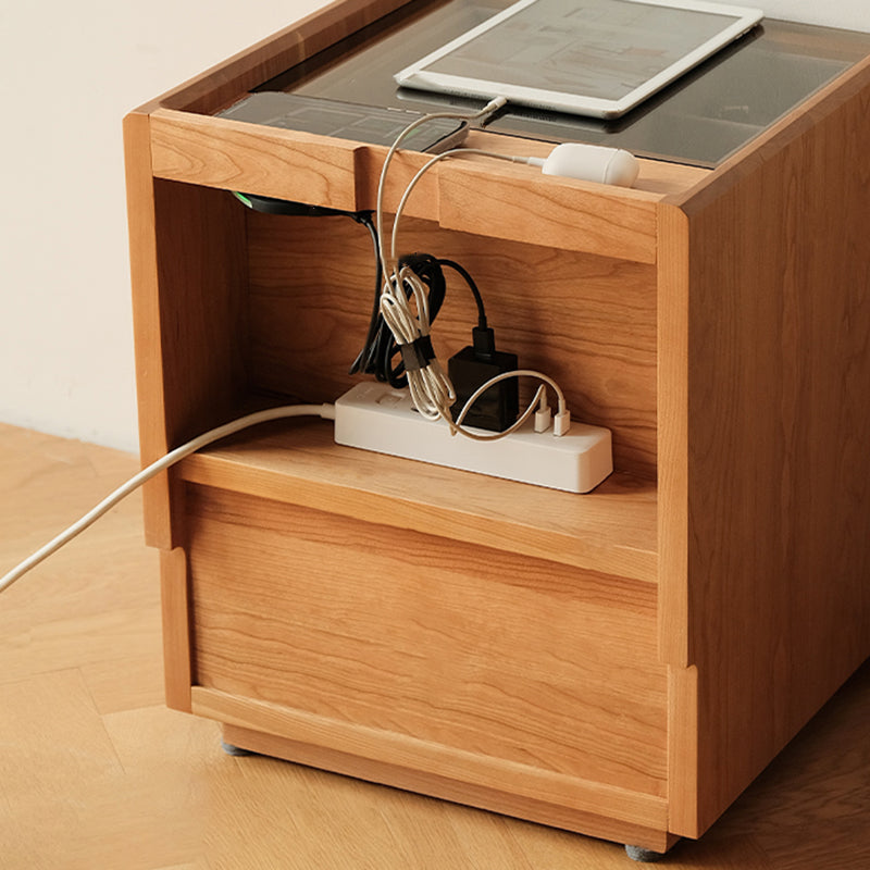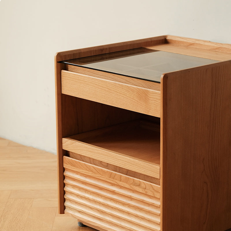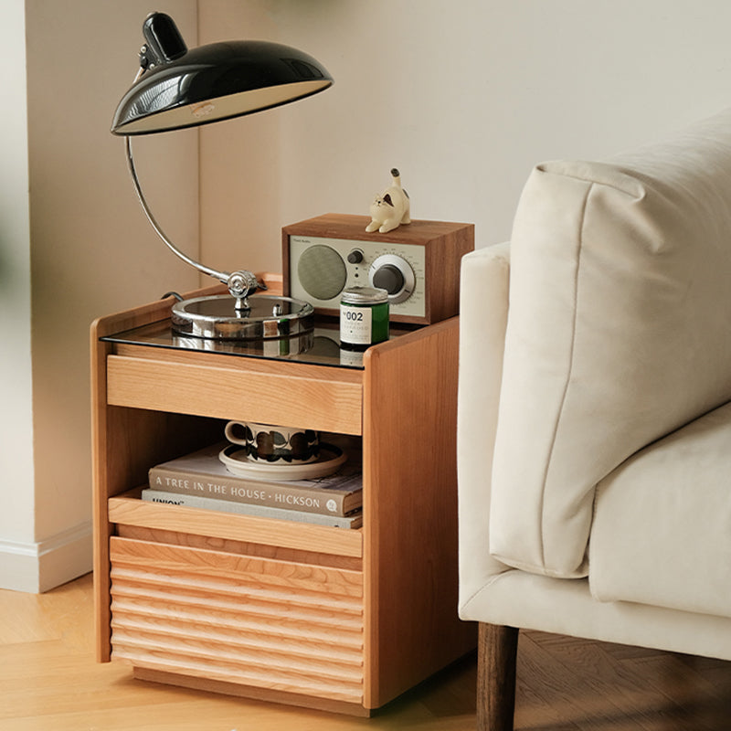 Contemporary Retro Solid Wood Cube Nightstand 3-Drawer For Bedroom