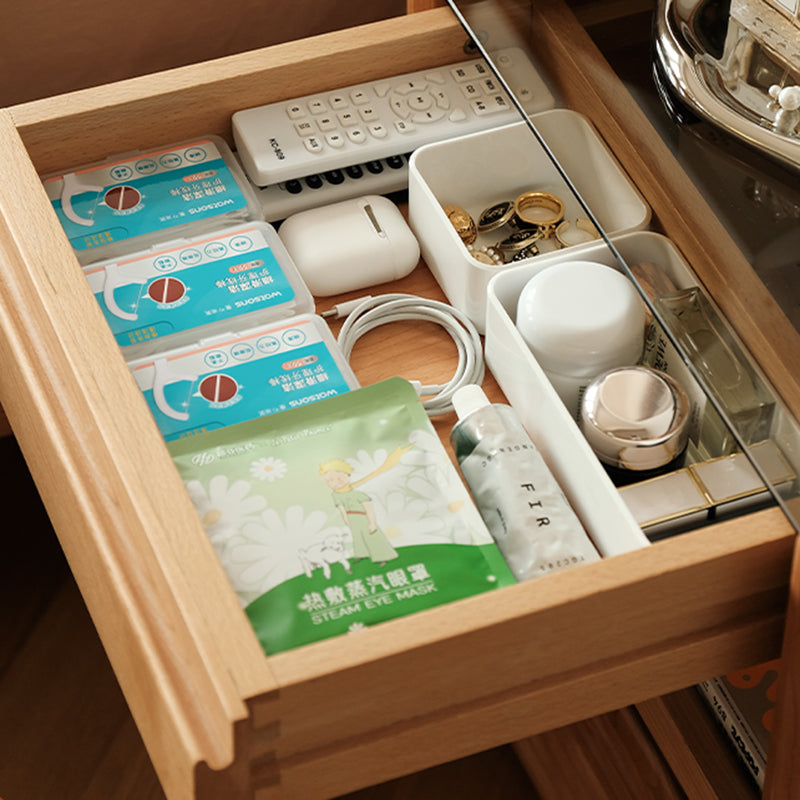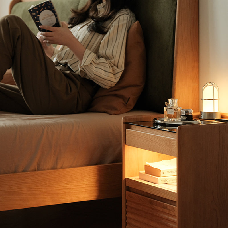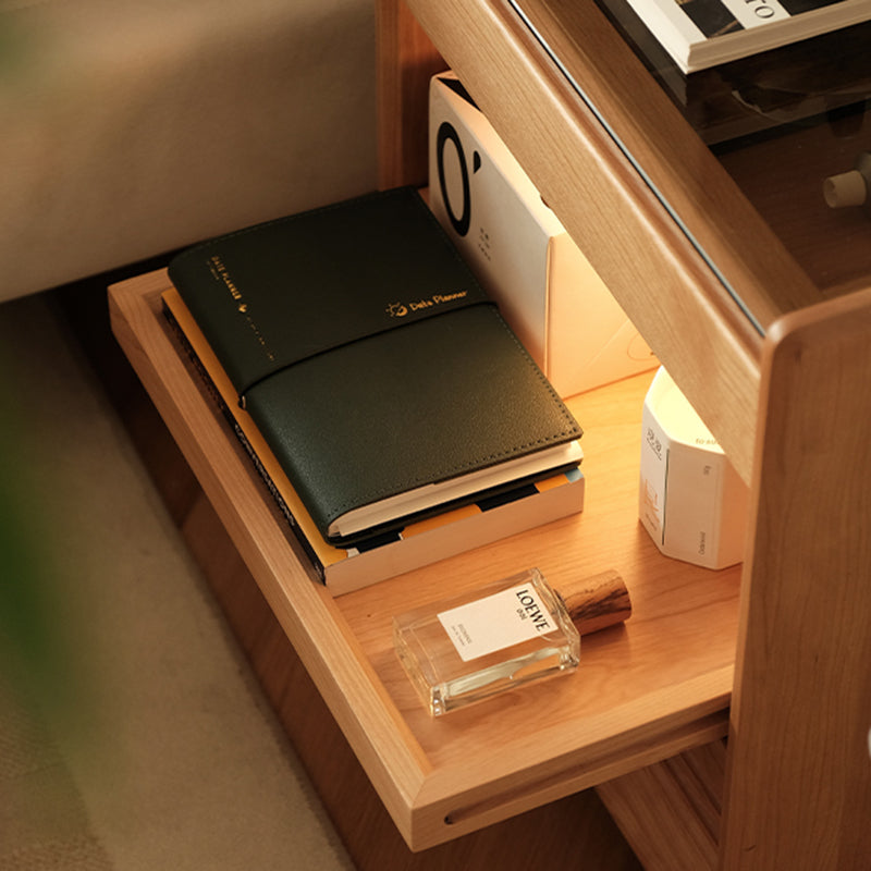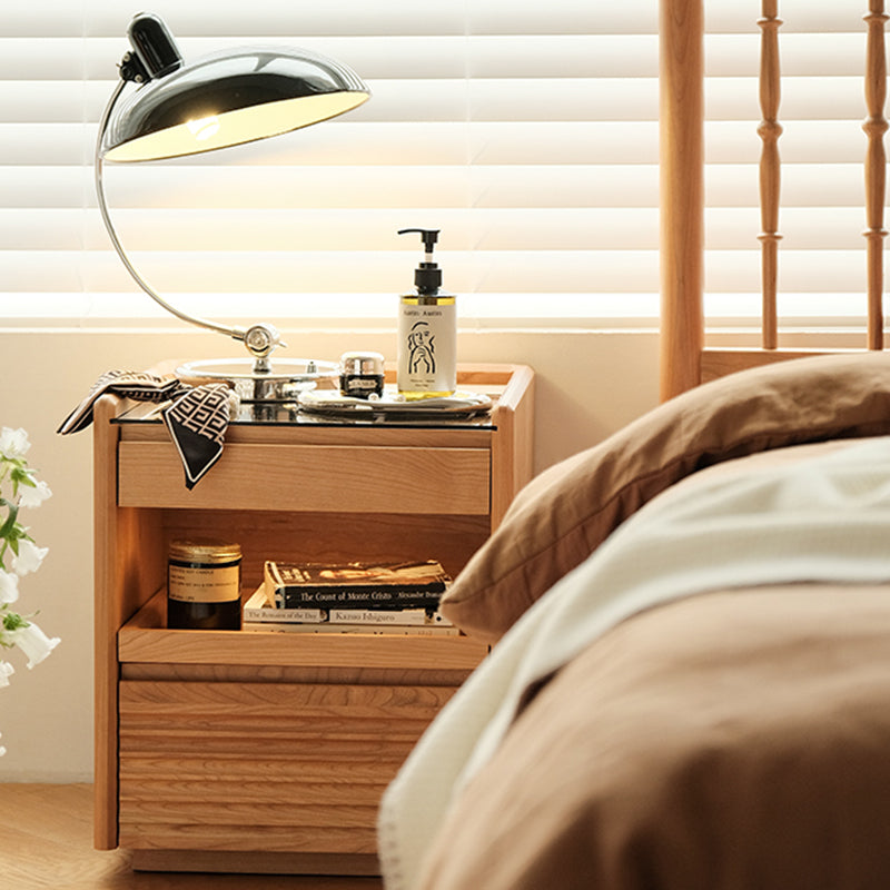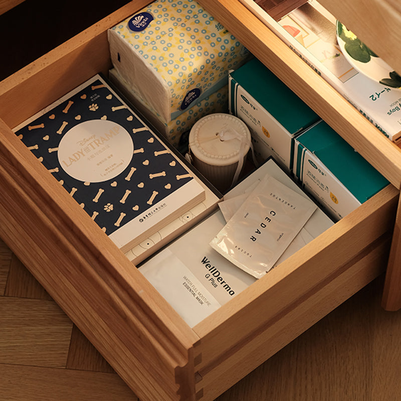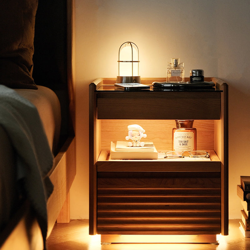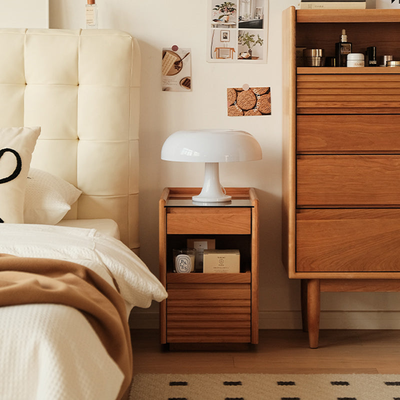 Contemporary Retro Solid Wood Cube Nightstand 3-Drawer For Bedroom