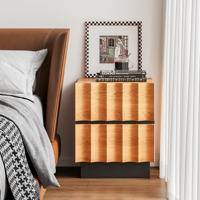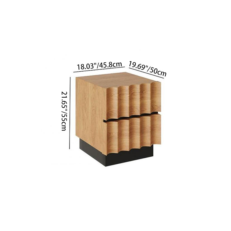 Contemporary Retro Square Water Ripples Pine Hardware Nightstand 2 - Drawer For Bedroom