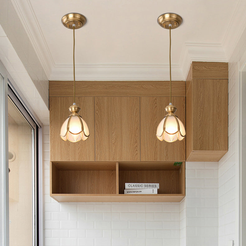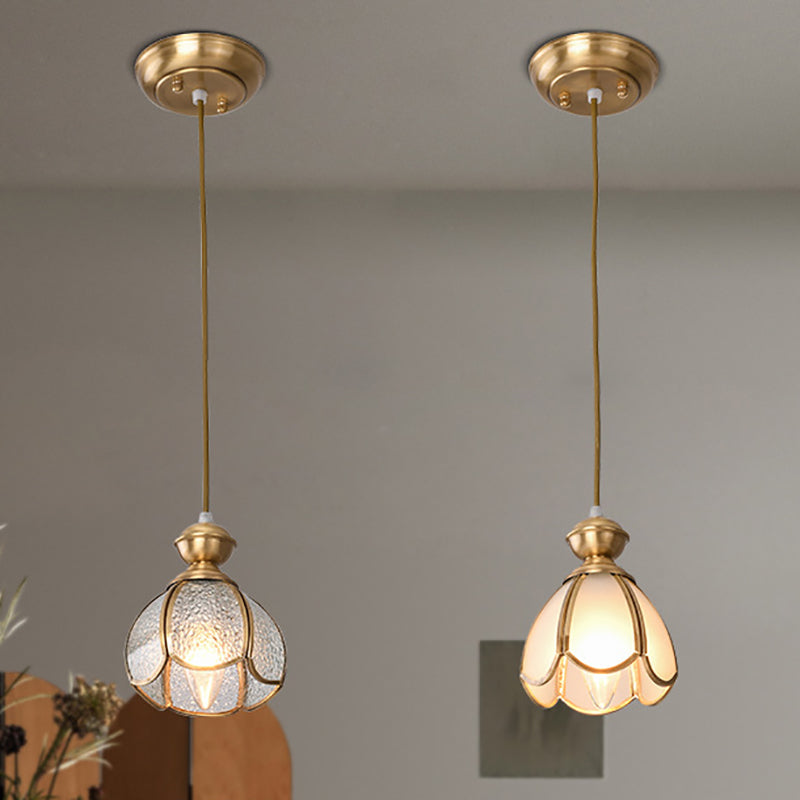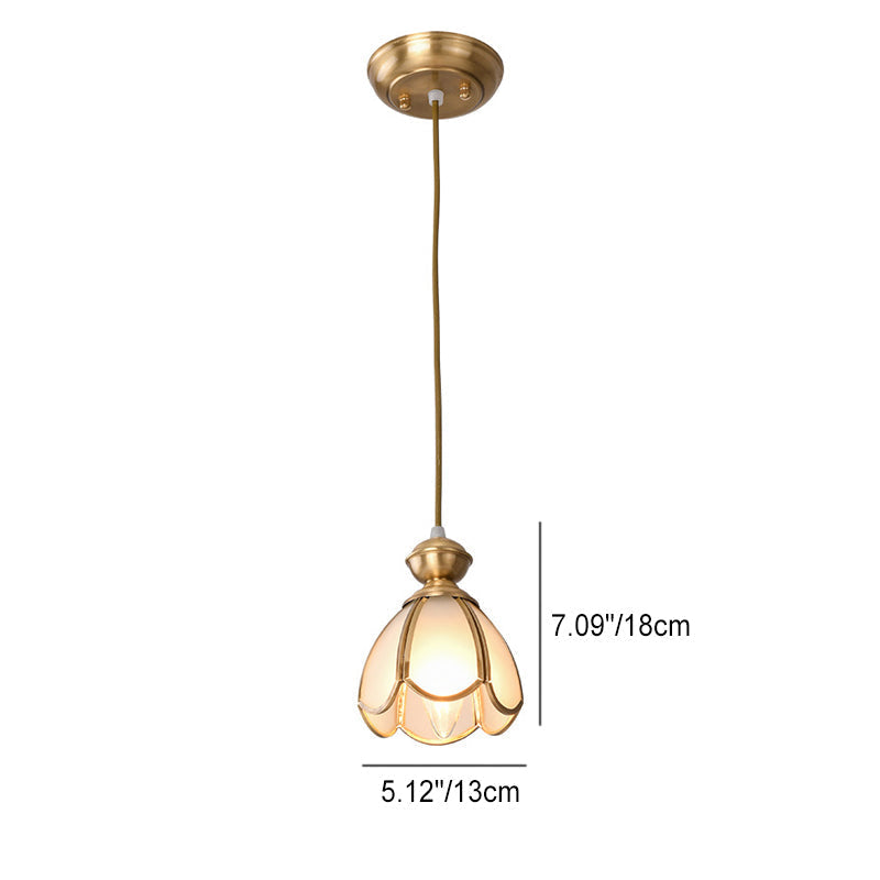 Contemporary Retro Tapered Petal Copper Glass 1-Light Pendant Light For Living Room