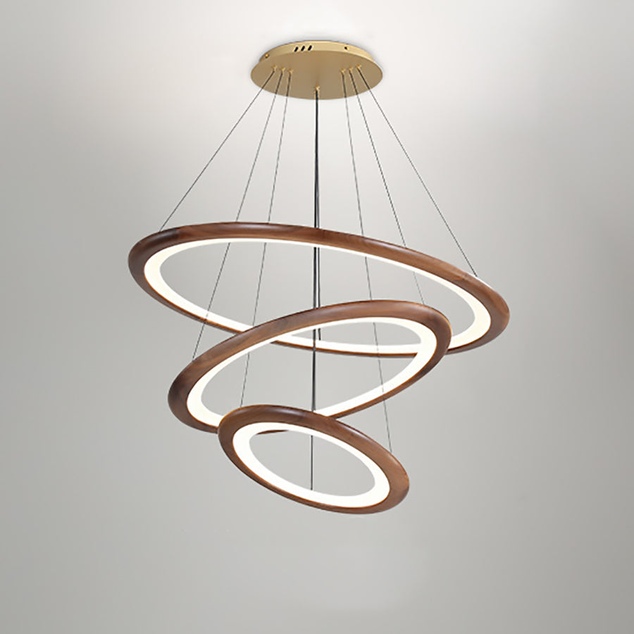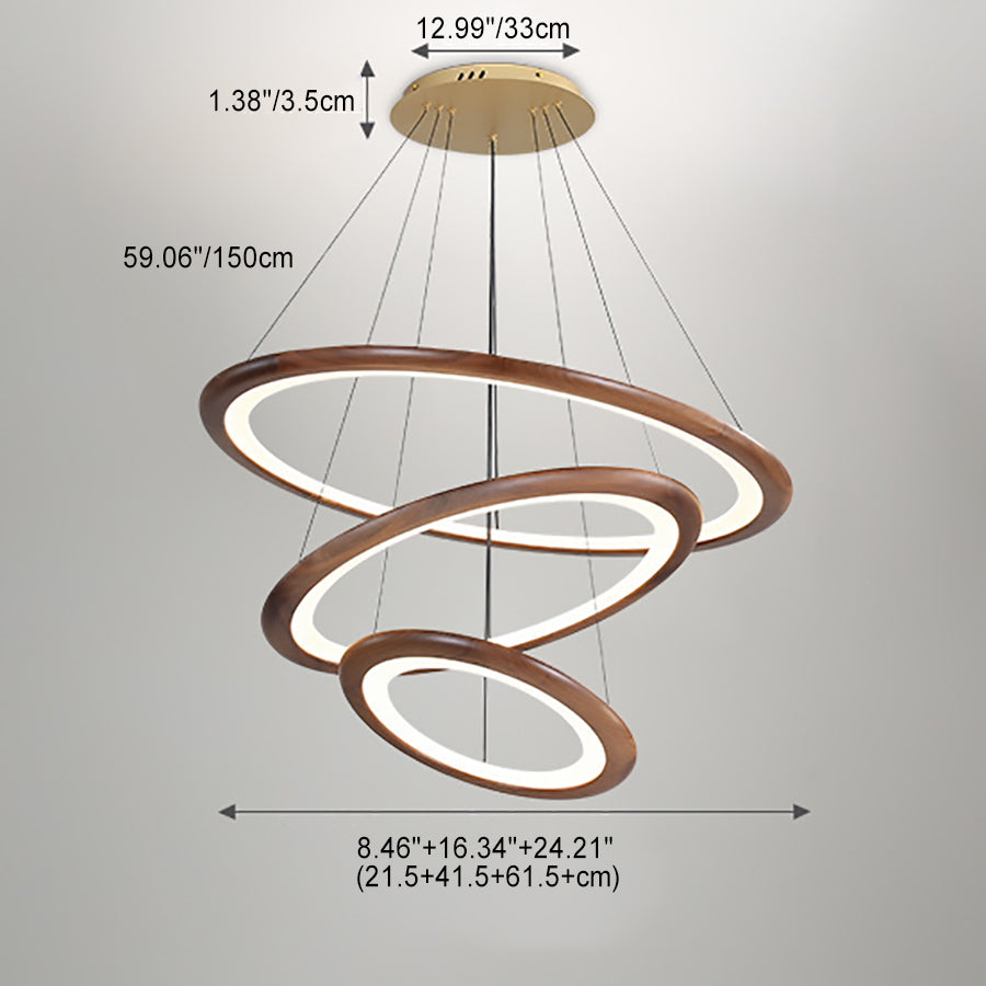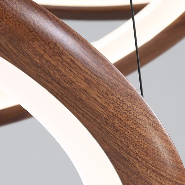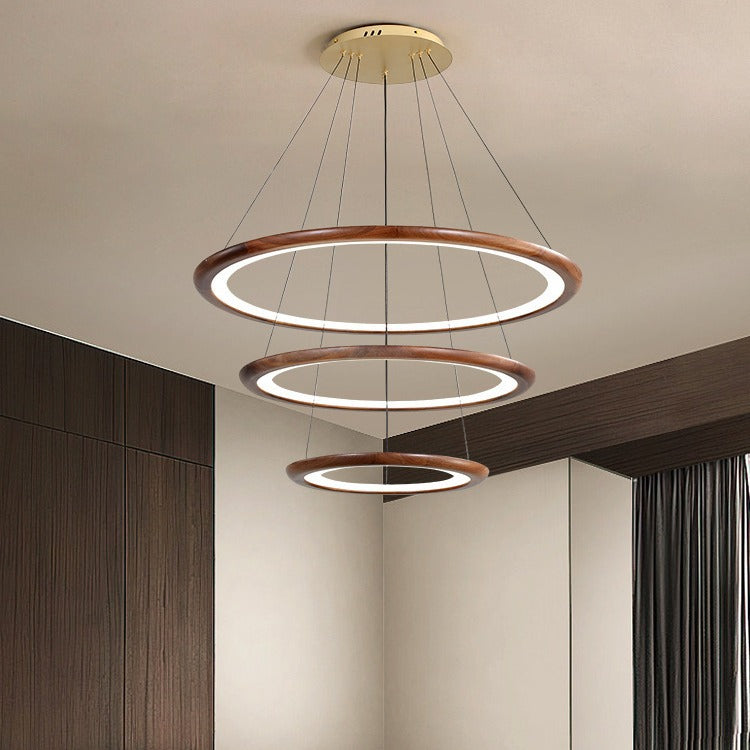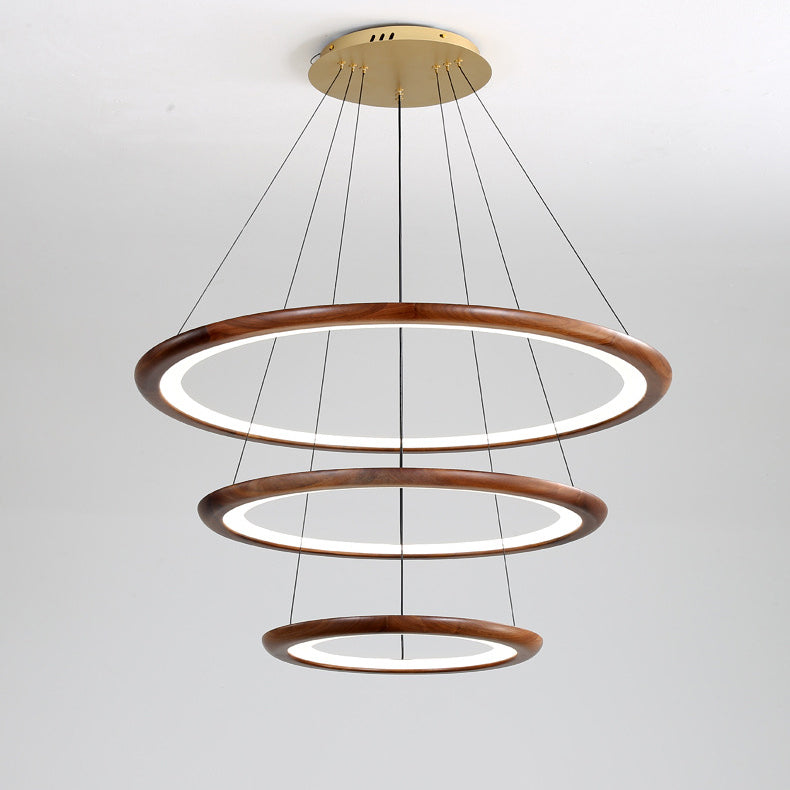 Contemporary Retro Walnut Acrylic Circles Adjustable LED Chandeliers For Living Room