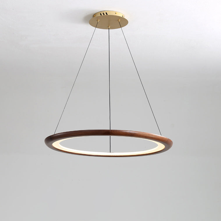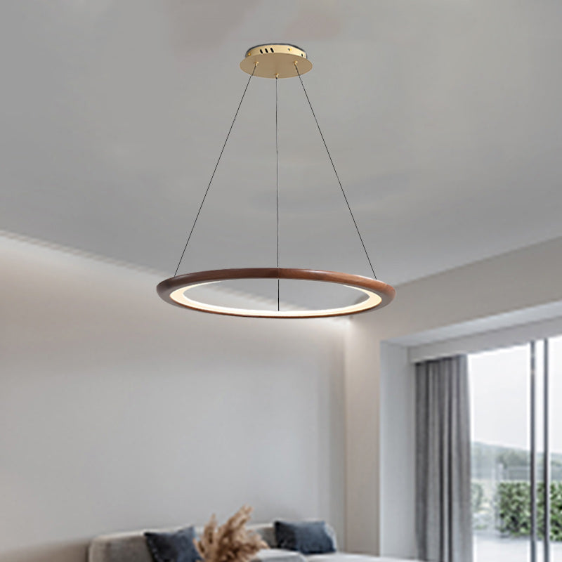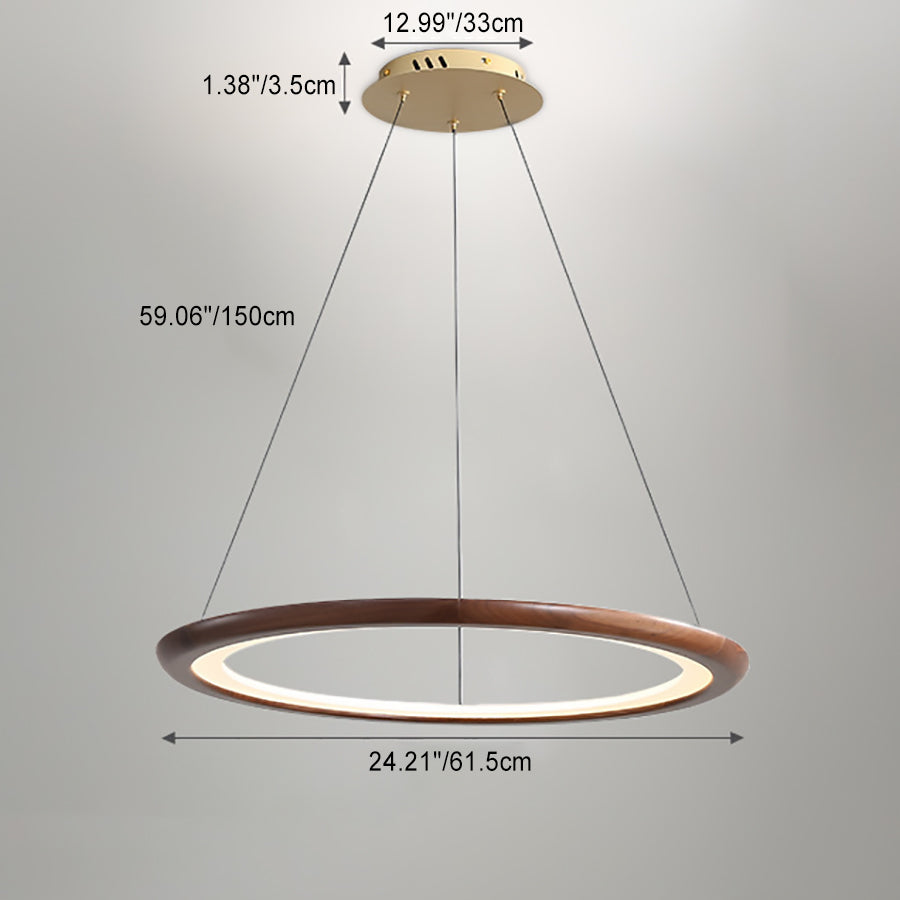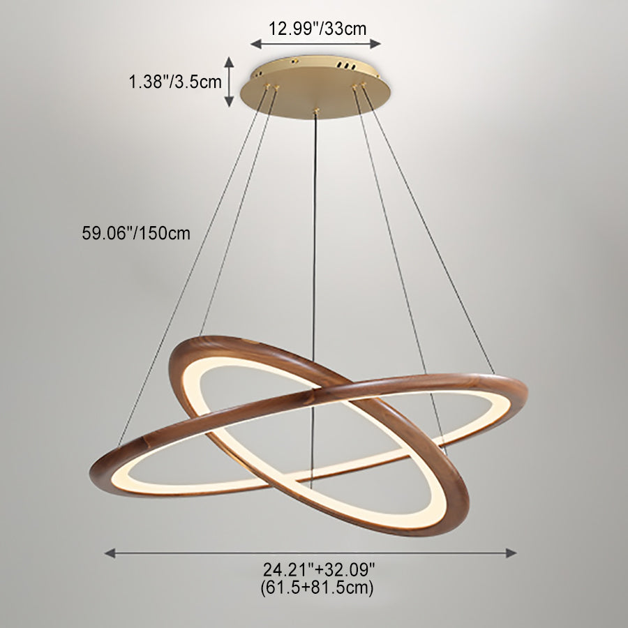 Contemporary Retro Walnut Acrylic Circles Adjustable LED Chandeliers For Living Room