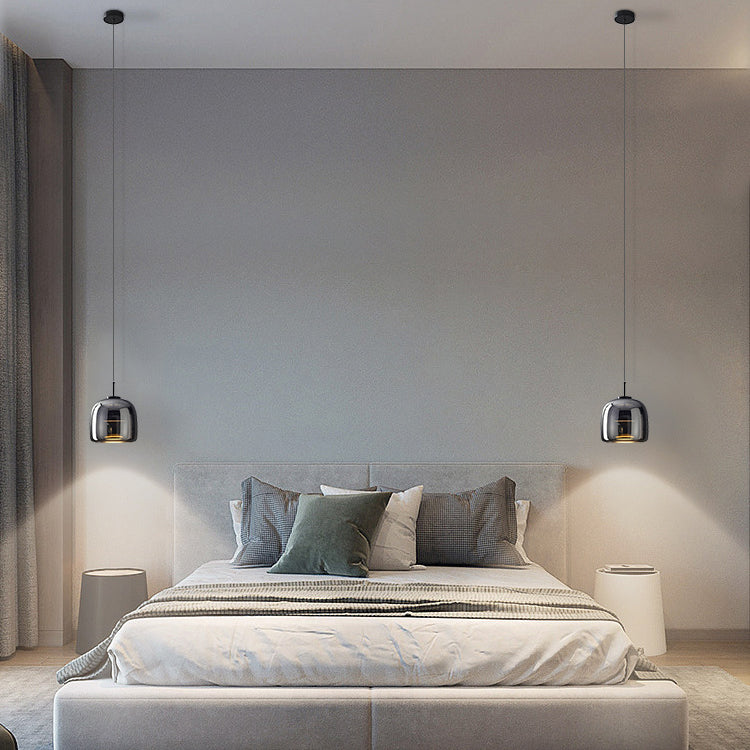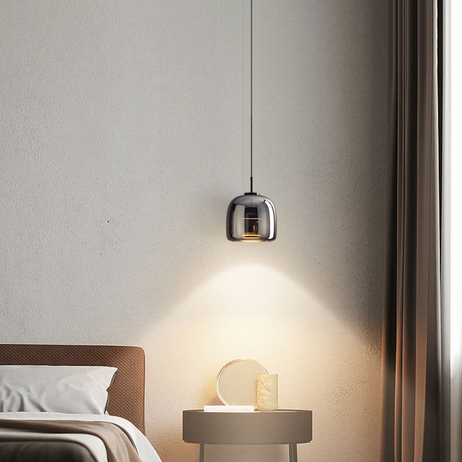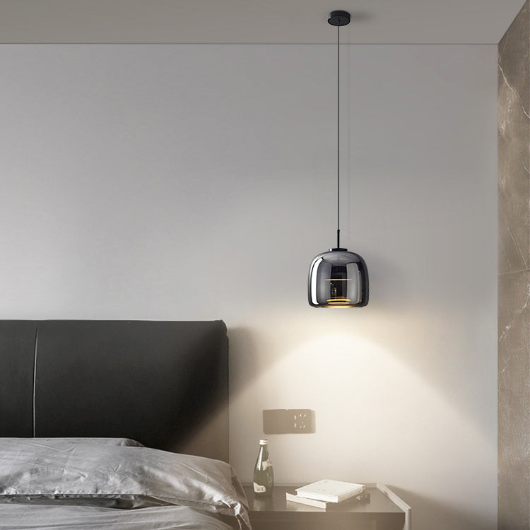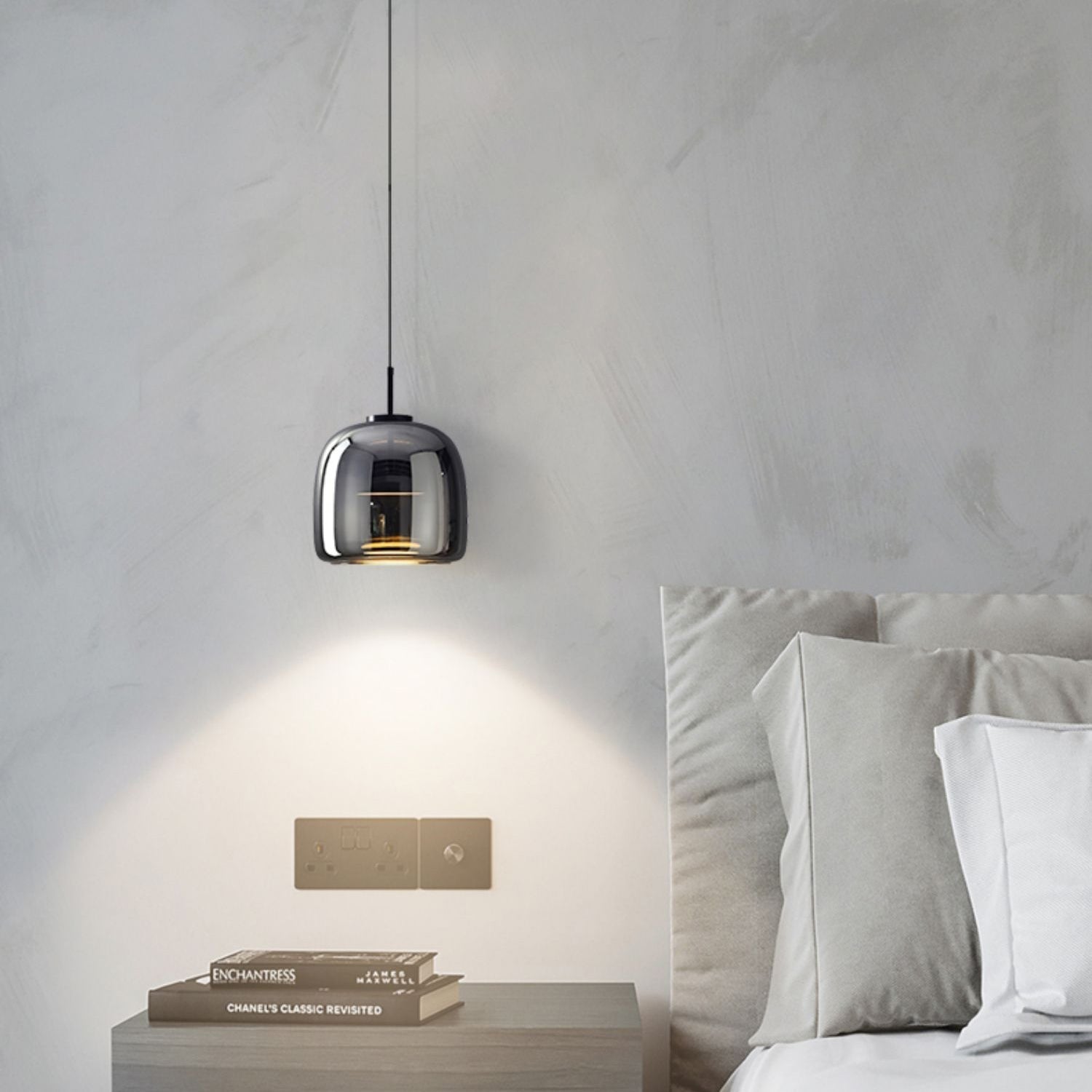 Contemporary Scandinavian Aluminum Glass Cylinder Shade LED Pendant Light For Bedroom