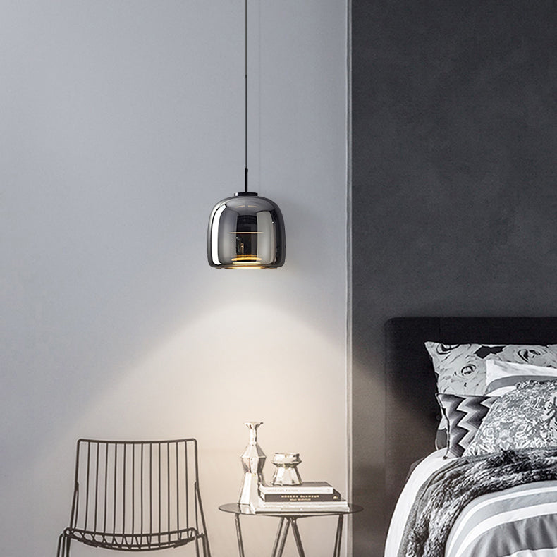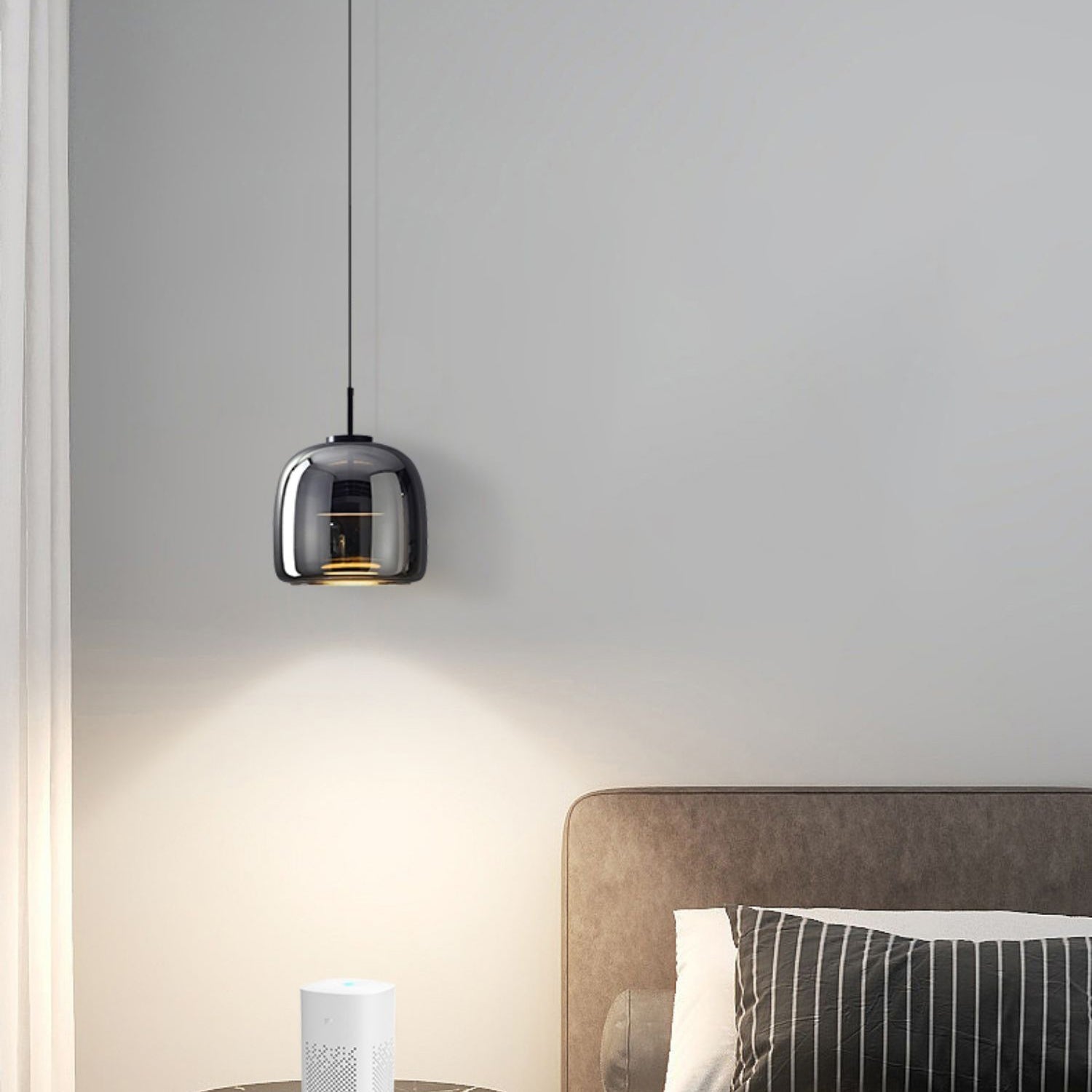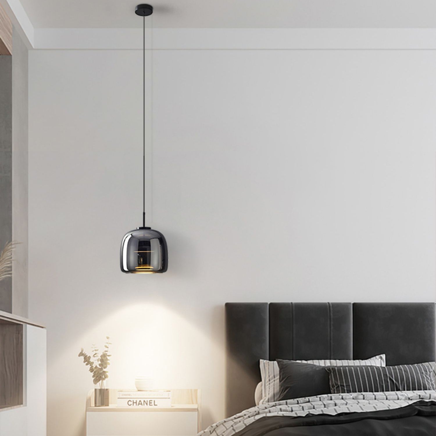 Contemporary Scandinavian Aluminum Glass Cylinder Shade LED Pendant Light For Bedroom