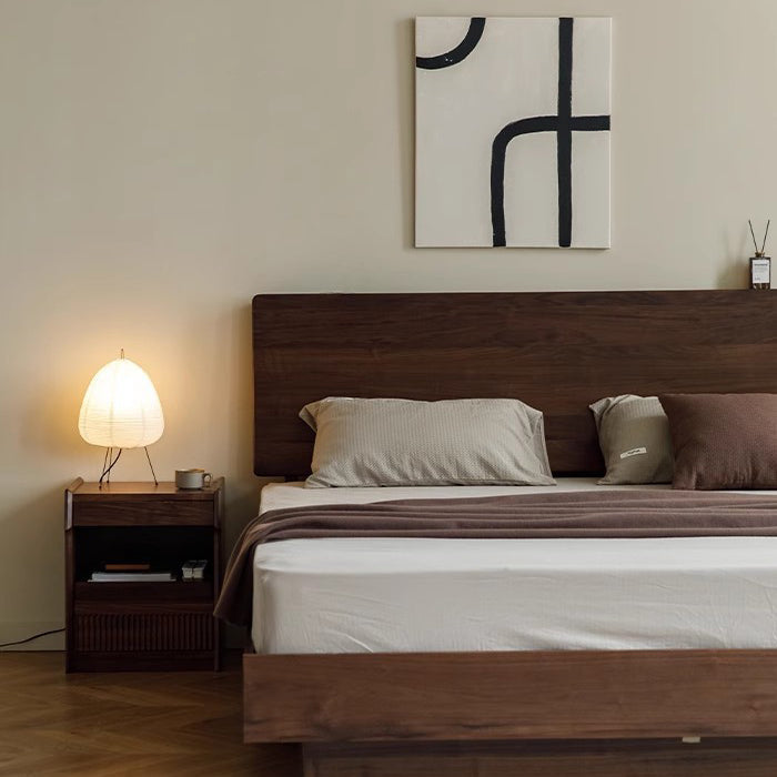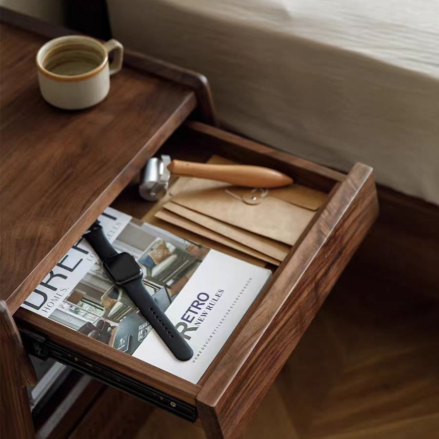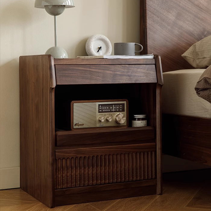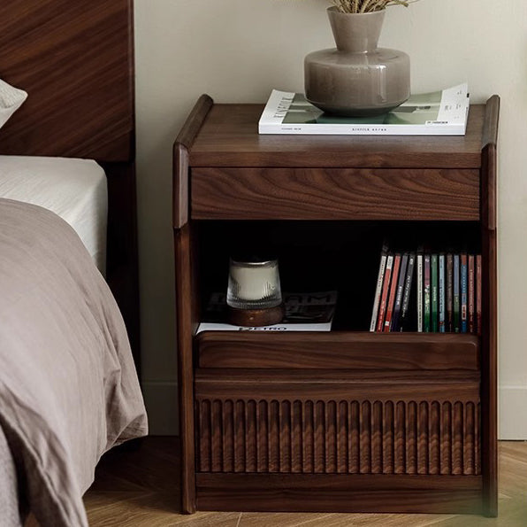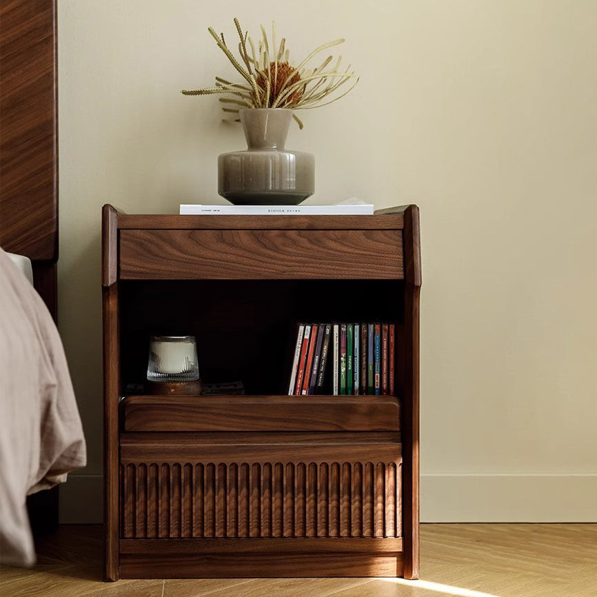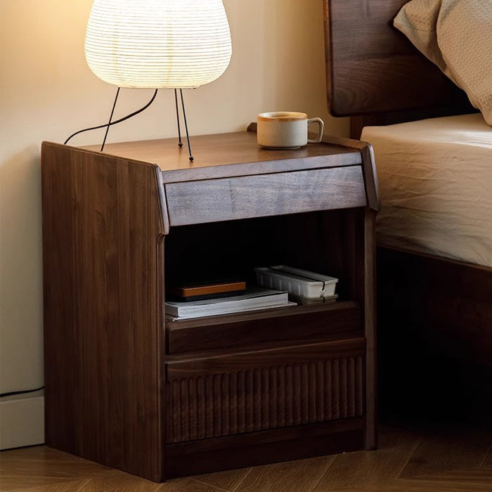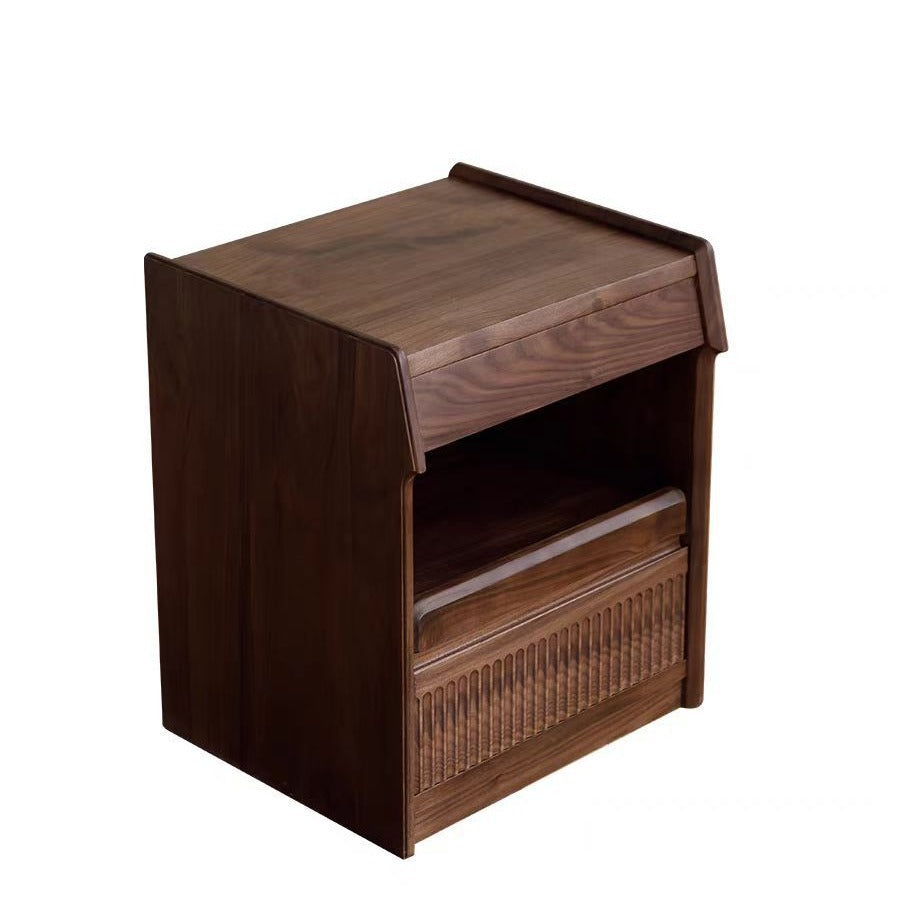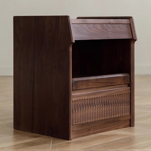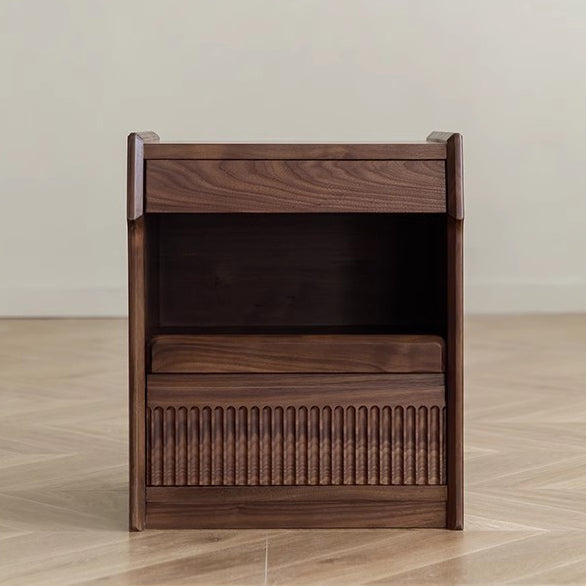 Contemporary Scandinavian Black Walnut Rectangular Textured Nightstand With 2 Tiers For Bedroom