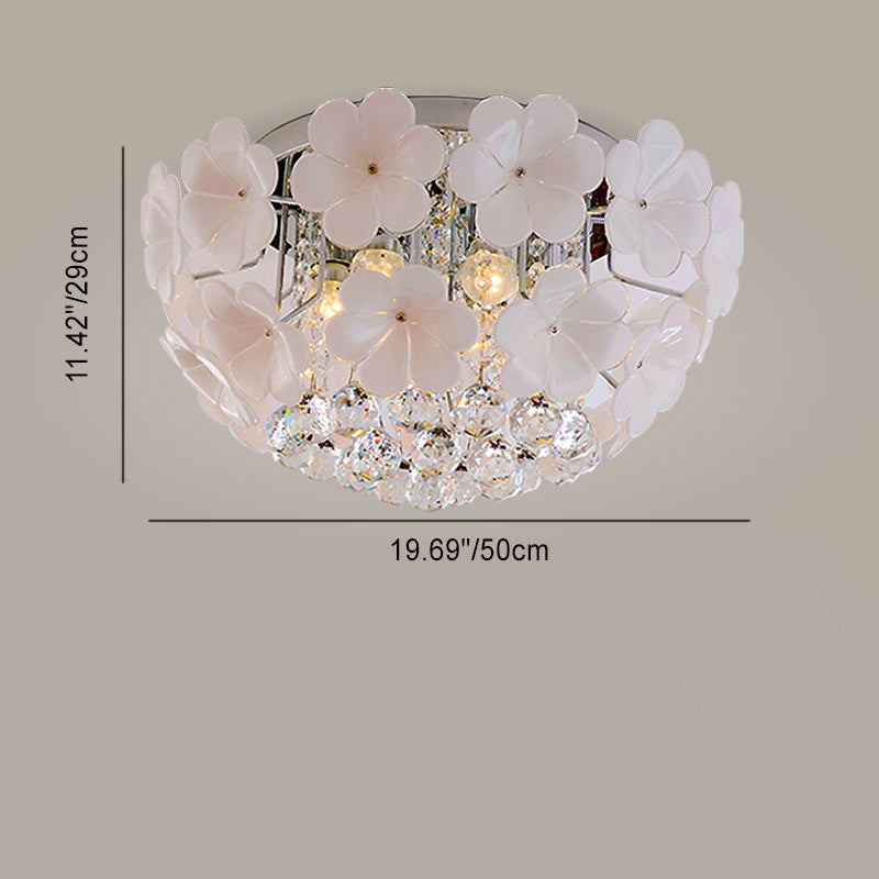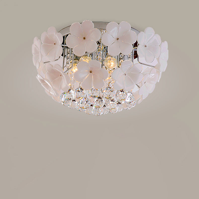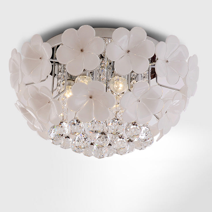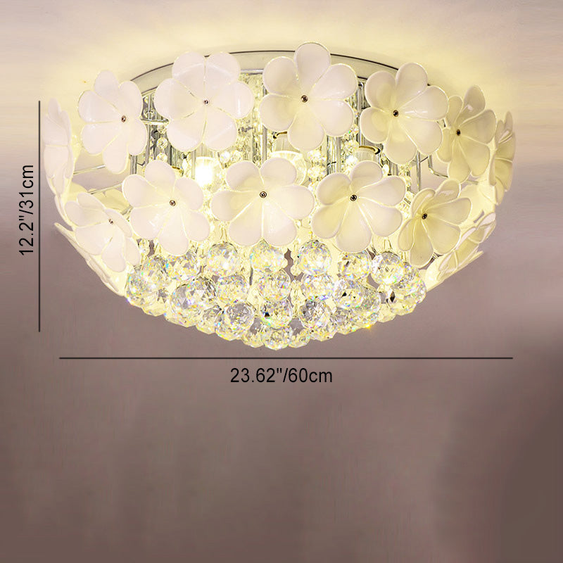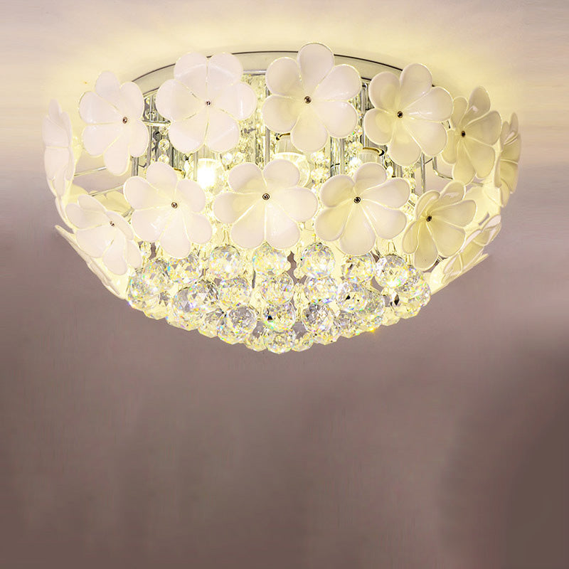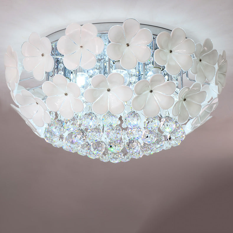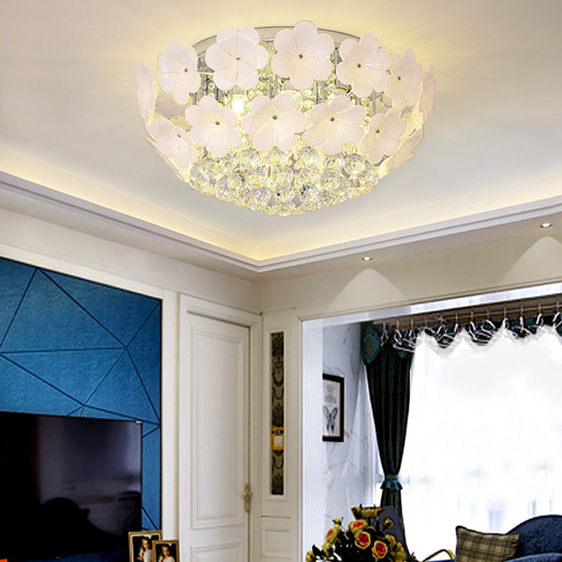 Contemporary Scandinavian Branch Floral Glass Crystal Metal 1/4/6/8/10 Light Flush Mount Ceiling Light For Living Room