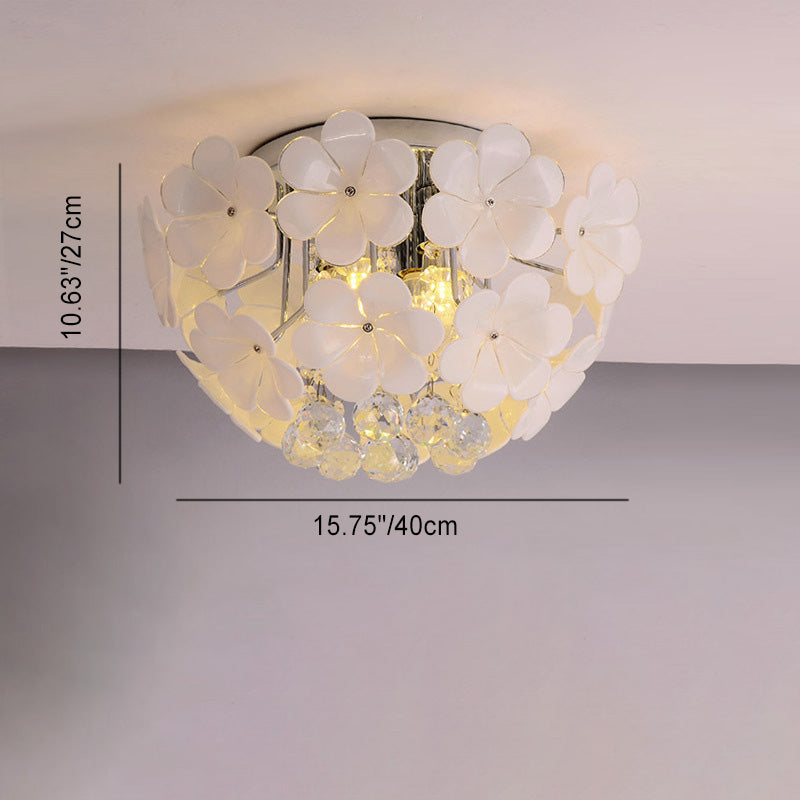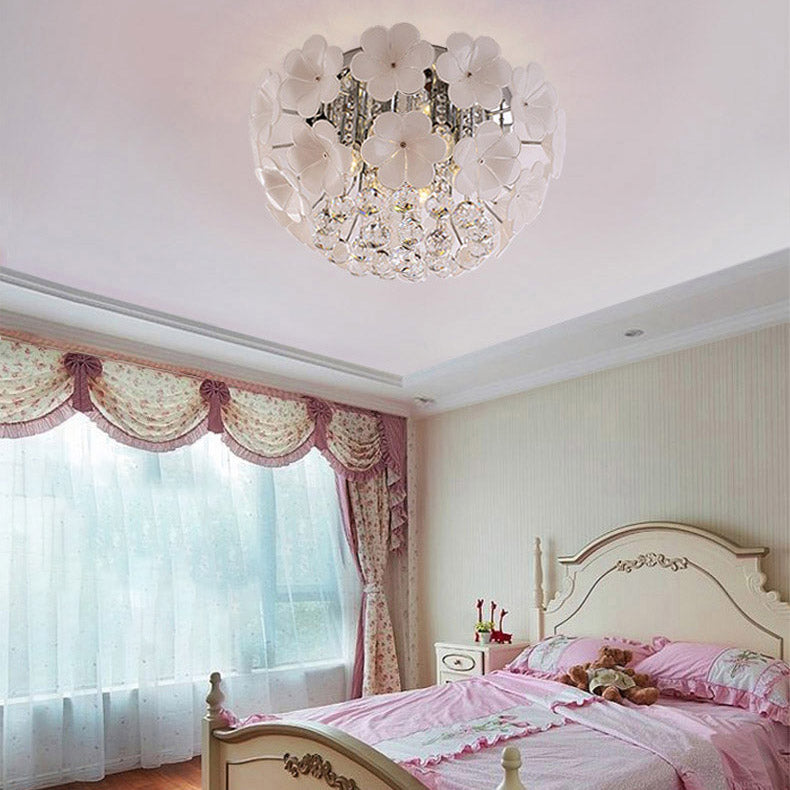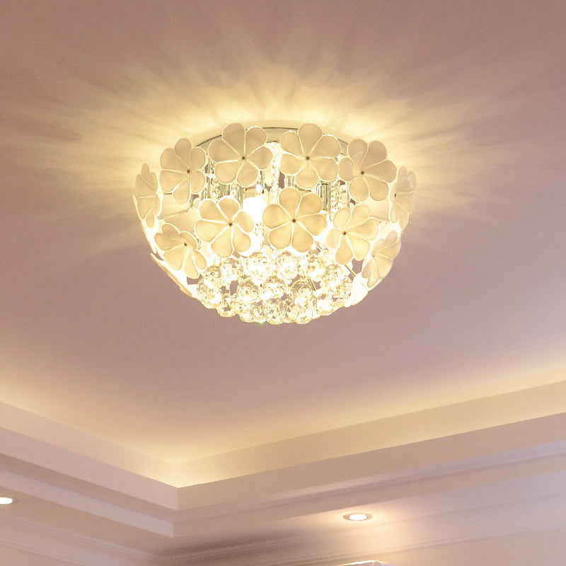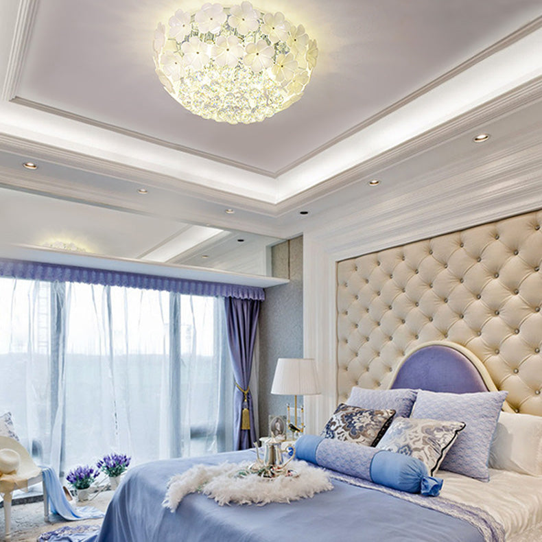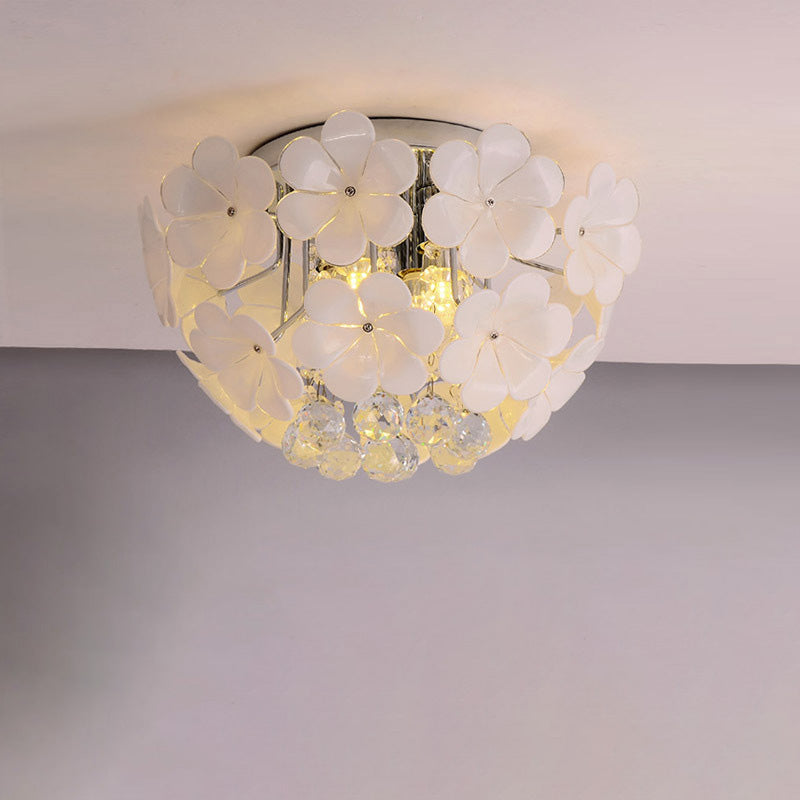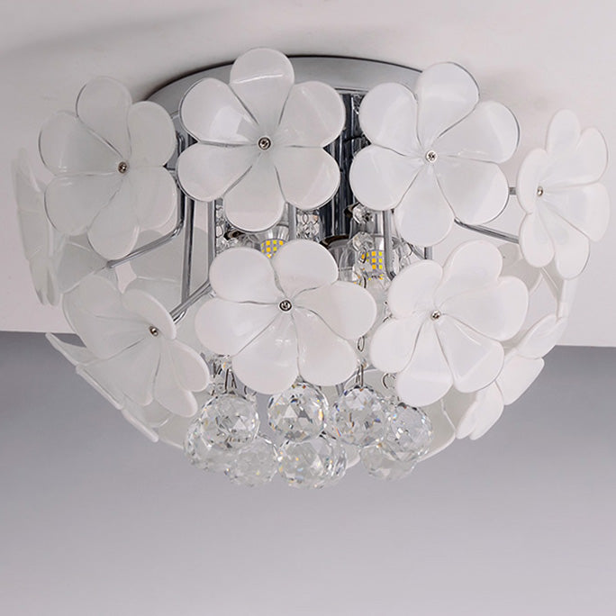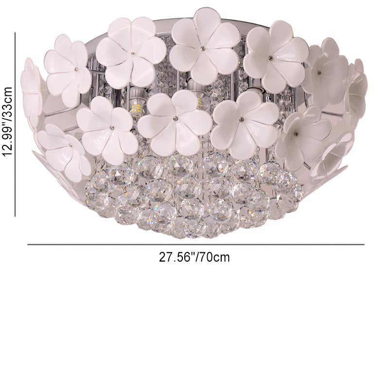 Contemporary Scandinavian Branch Floral Glass Crystal Metal 1/4/6/8/10 Light Flush Mount Ceiling Light For Living Room