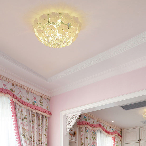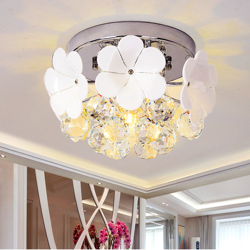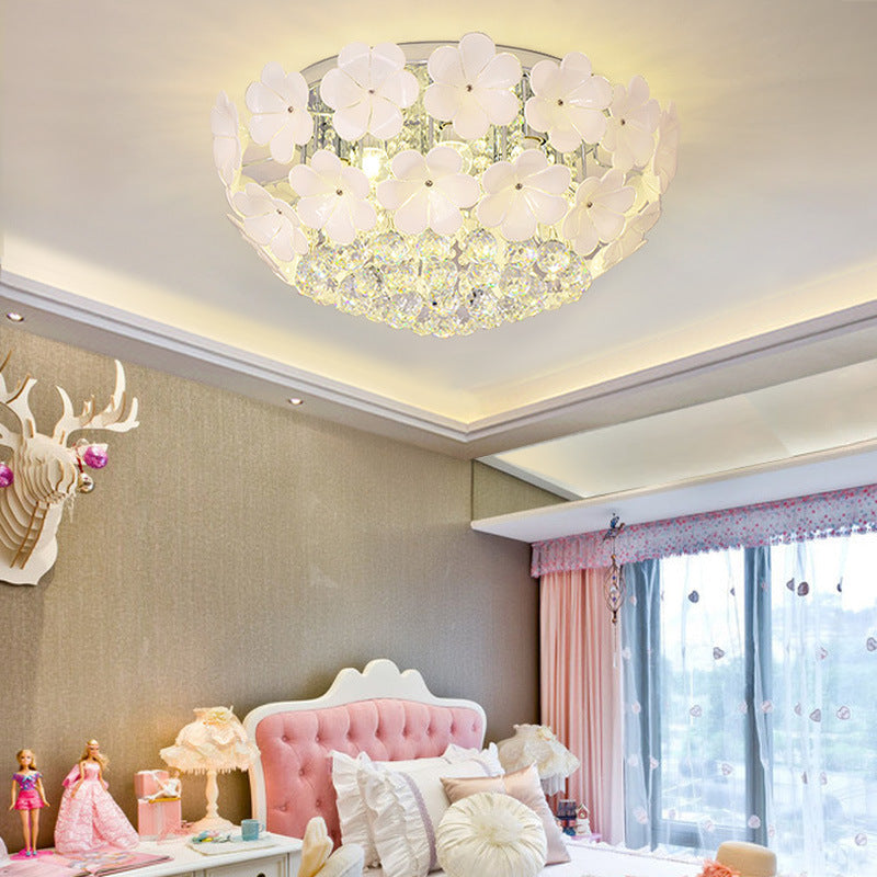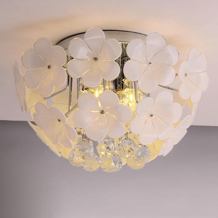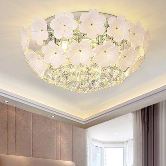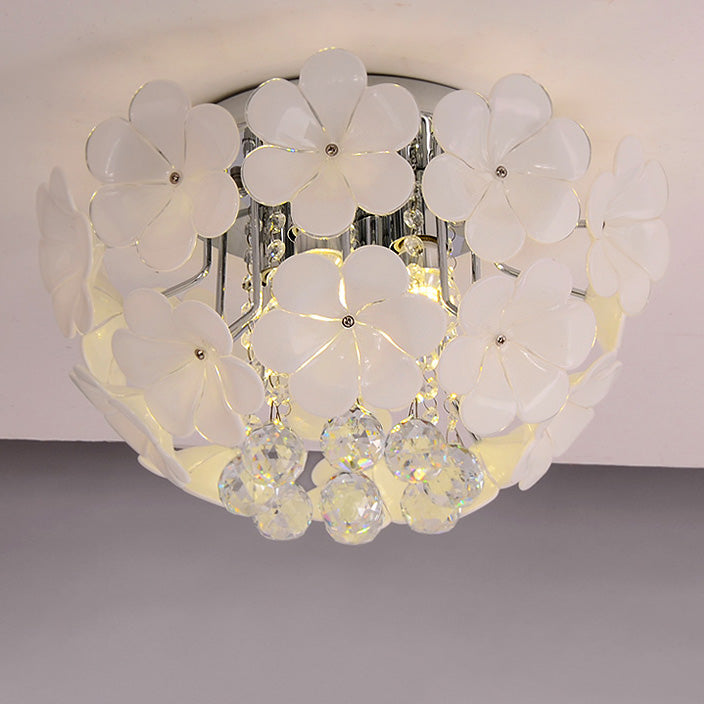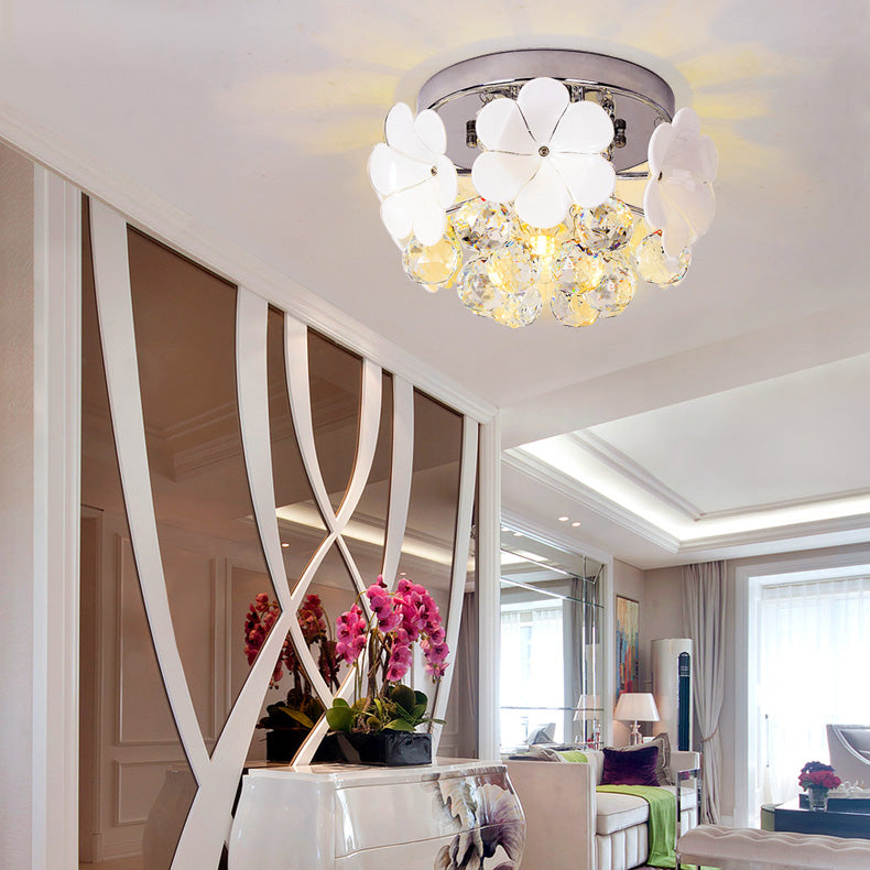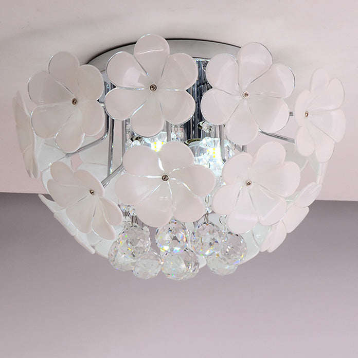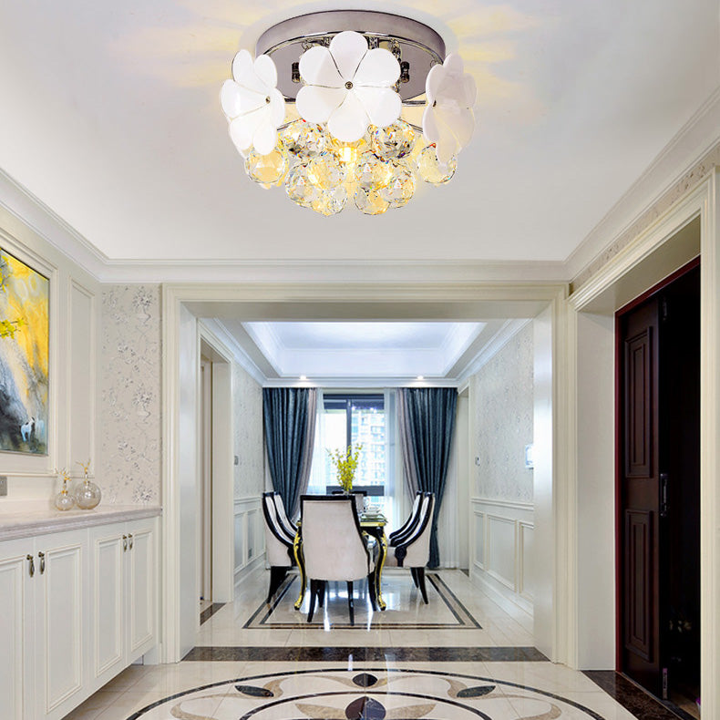 Contemporary Scandinavian Branch Floral Glass Crystal Metal 1/4/6/8/10 Light Flush Mount Ceiling Light For Living Room