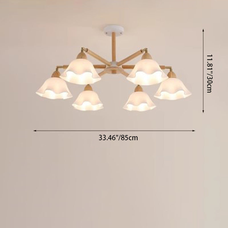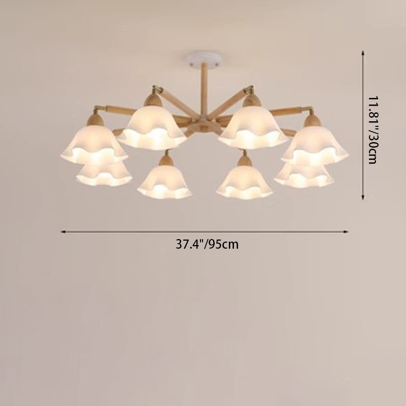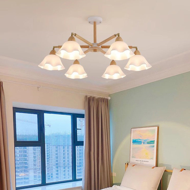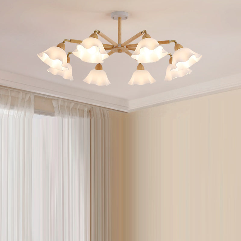 Contemporary Scandinavian Branch Flower PVC Wood Iron 3/6/8 Light Chandelier For Living Room