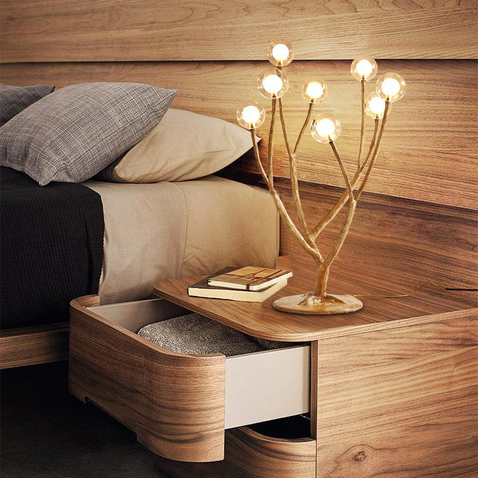 Contemporary Scandinavian Branch Polymer Metal Glass 8/12 Light Table Lamp For Bedroom