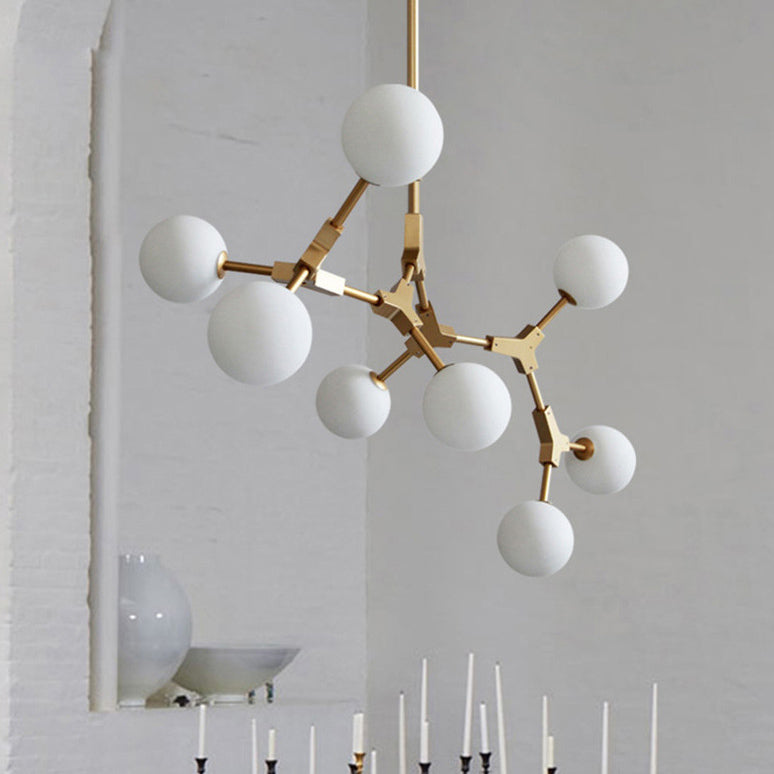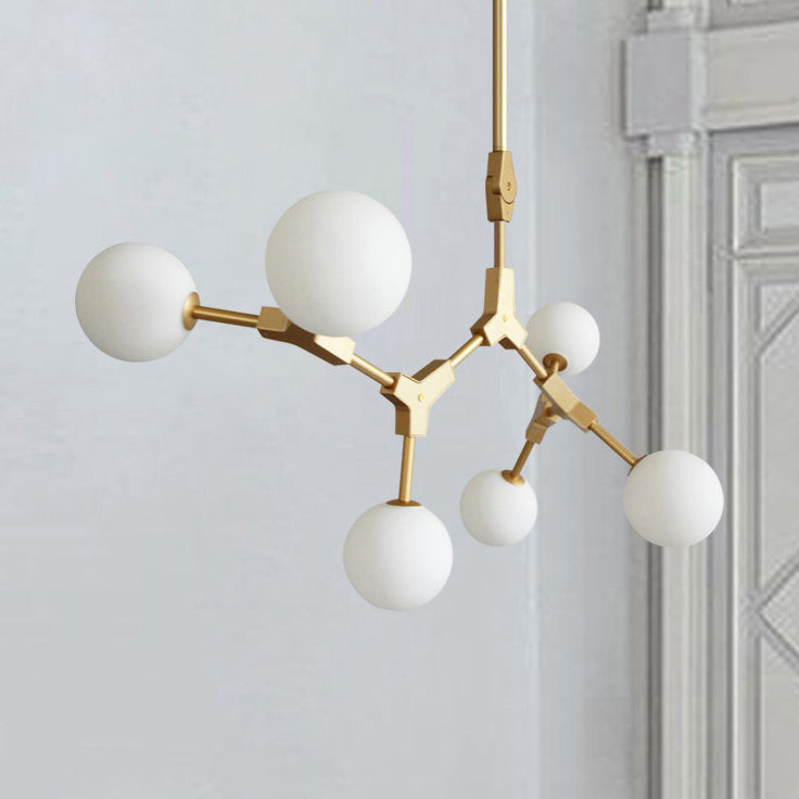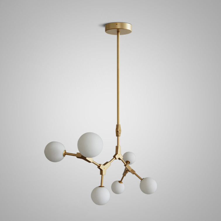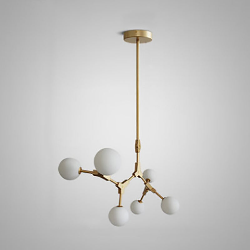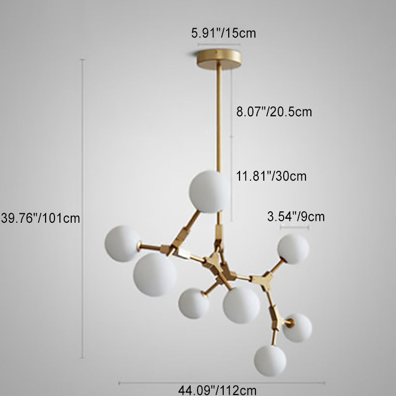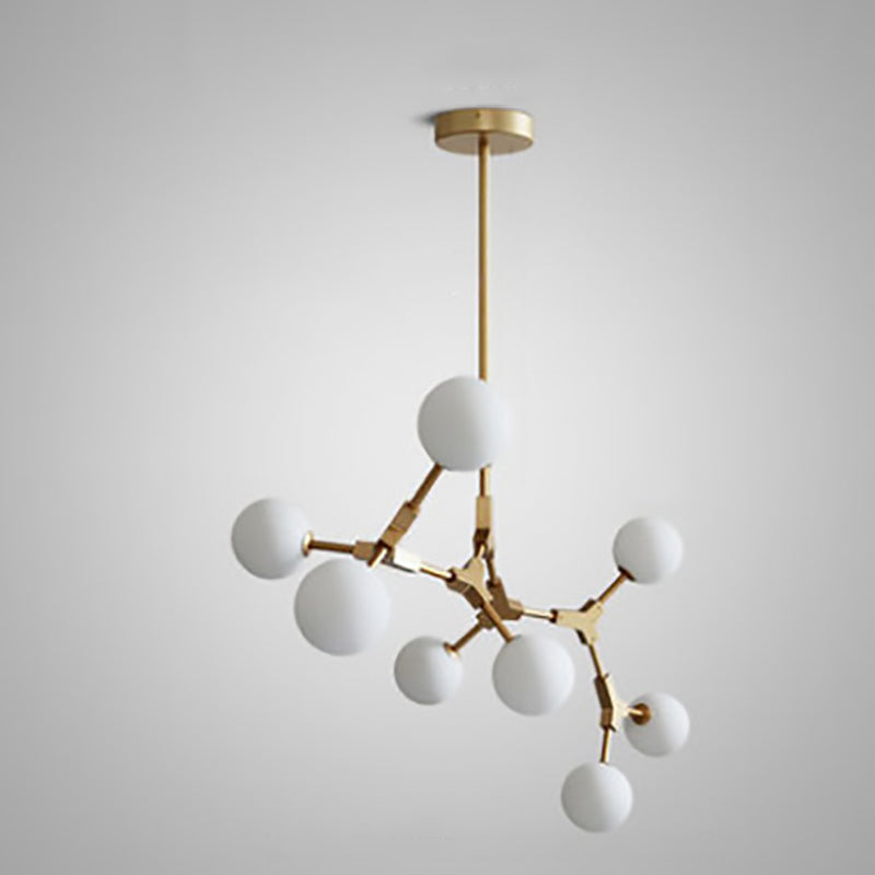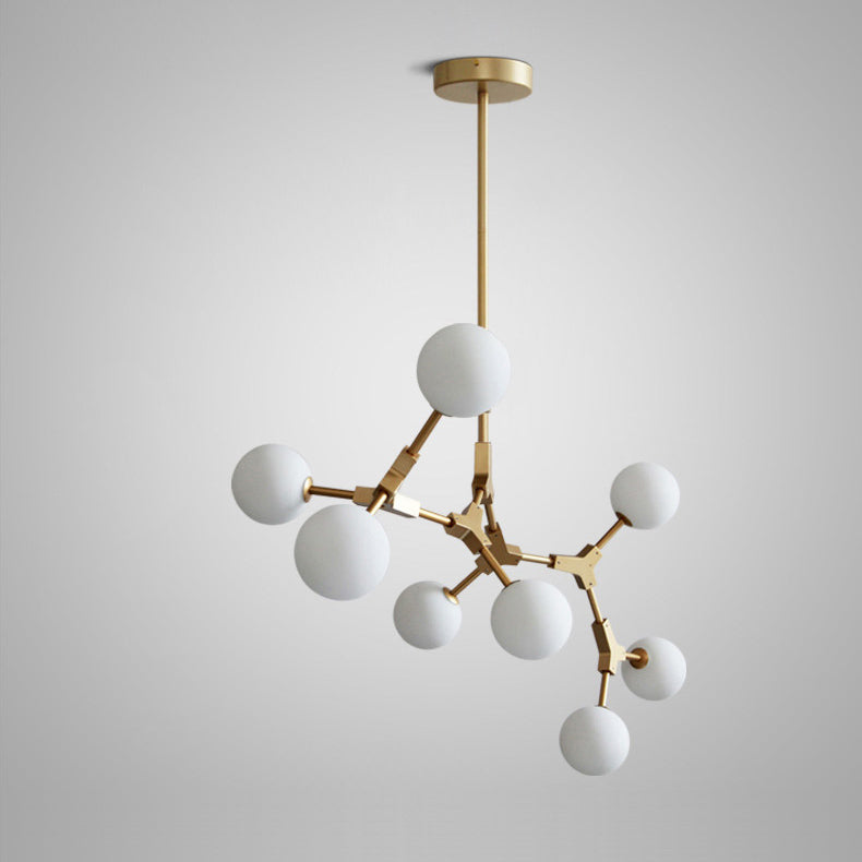 Contemporary Scandinavian Branches Magic Bean Orb Glass Iron 6/8 Light Chandelier For Bedroom