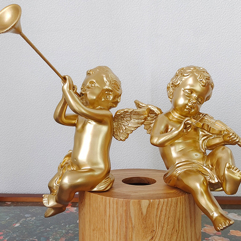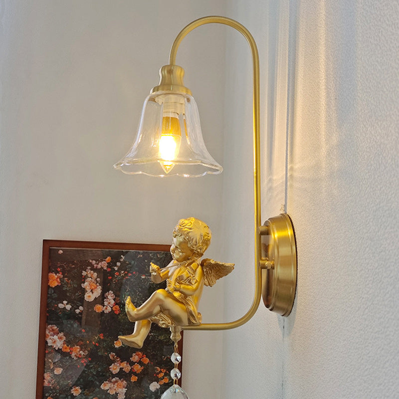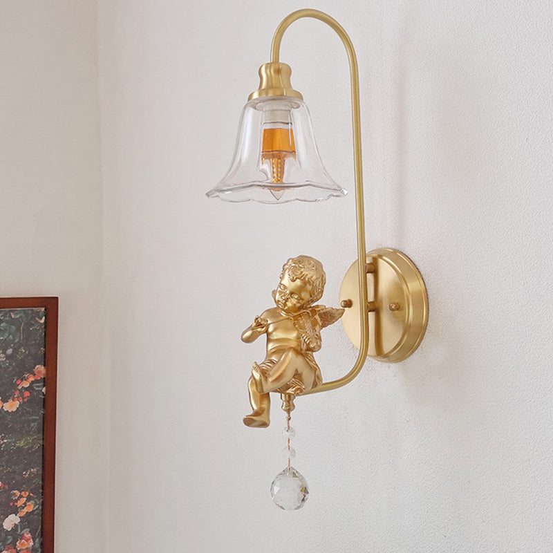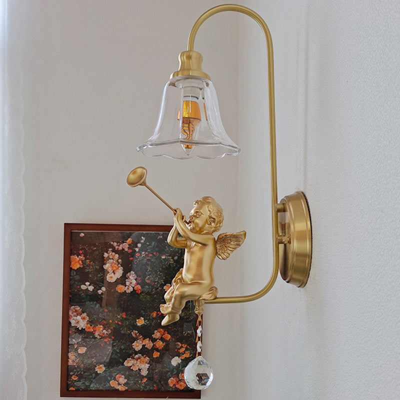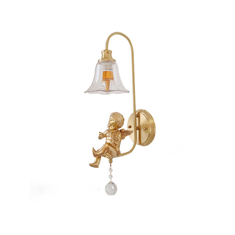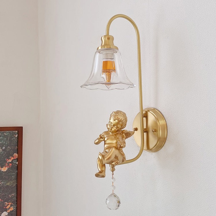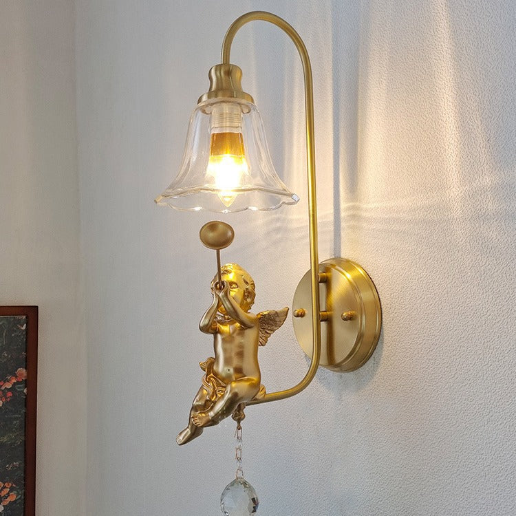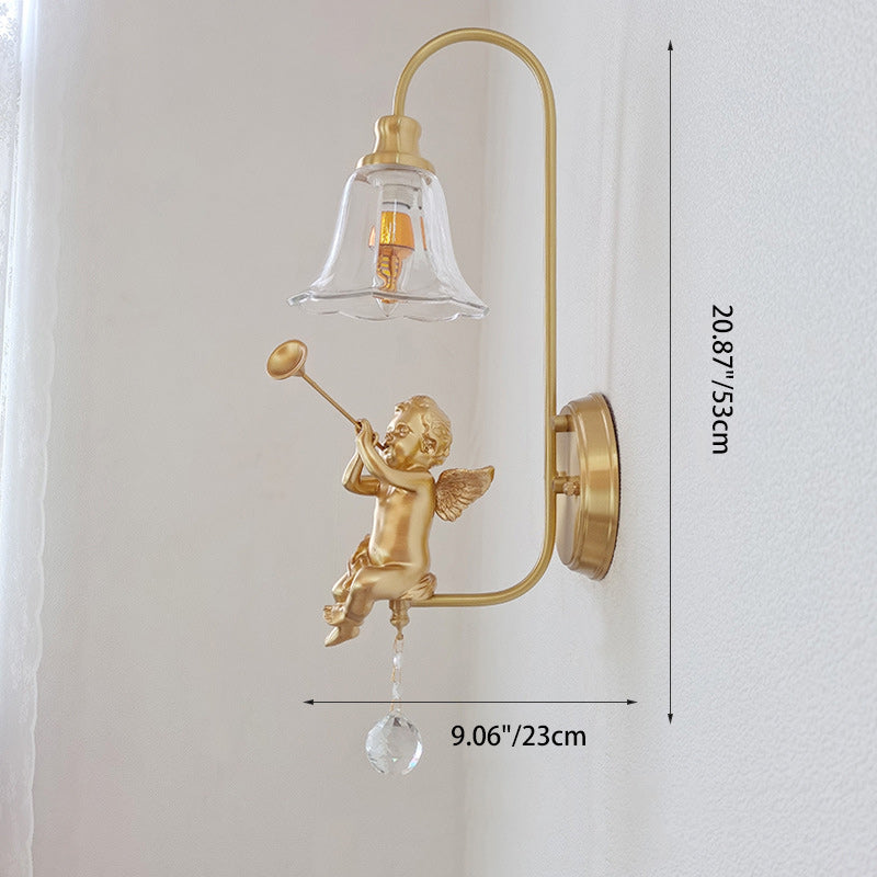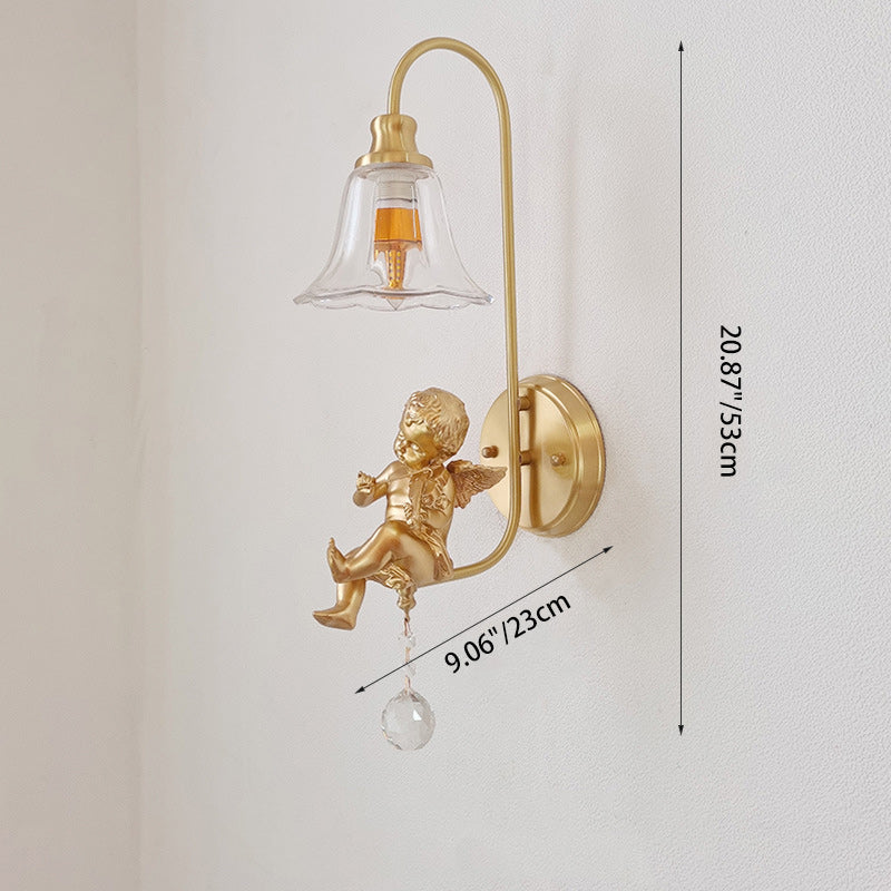 Contemporary Scandinavian Brass Glass Resin Angel Round 1-Light Wall Sconce Lamp For Bedroom And Living Room