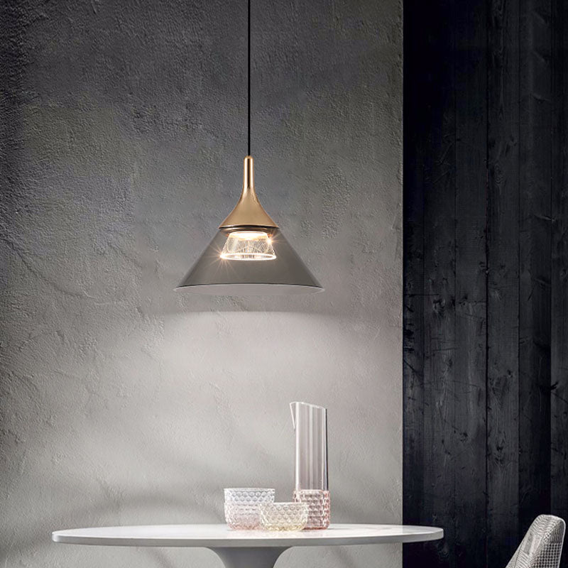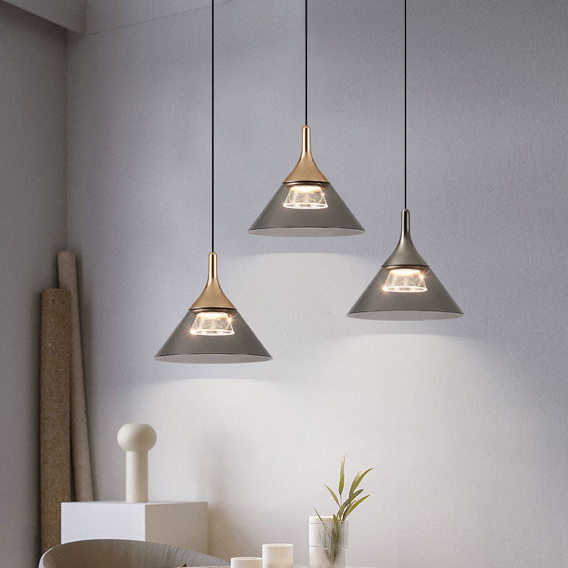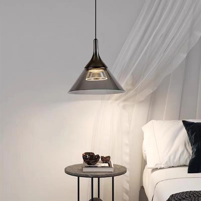 Contemporary Scandinavian Cone Aluminum Acrylic LED Pendant Light For Bedroom