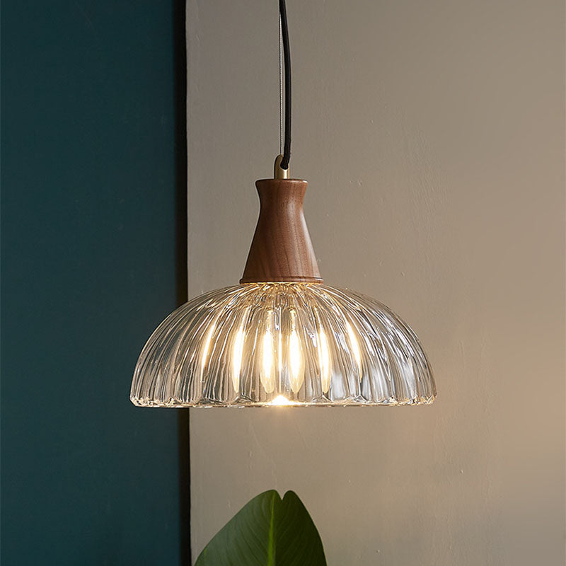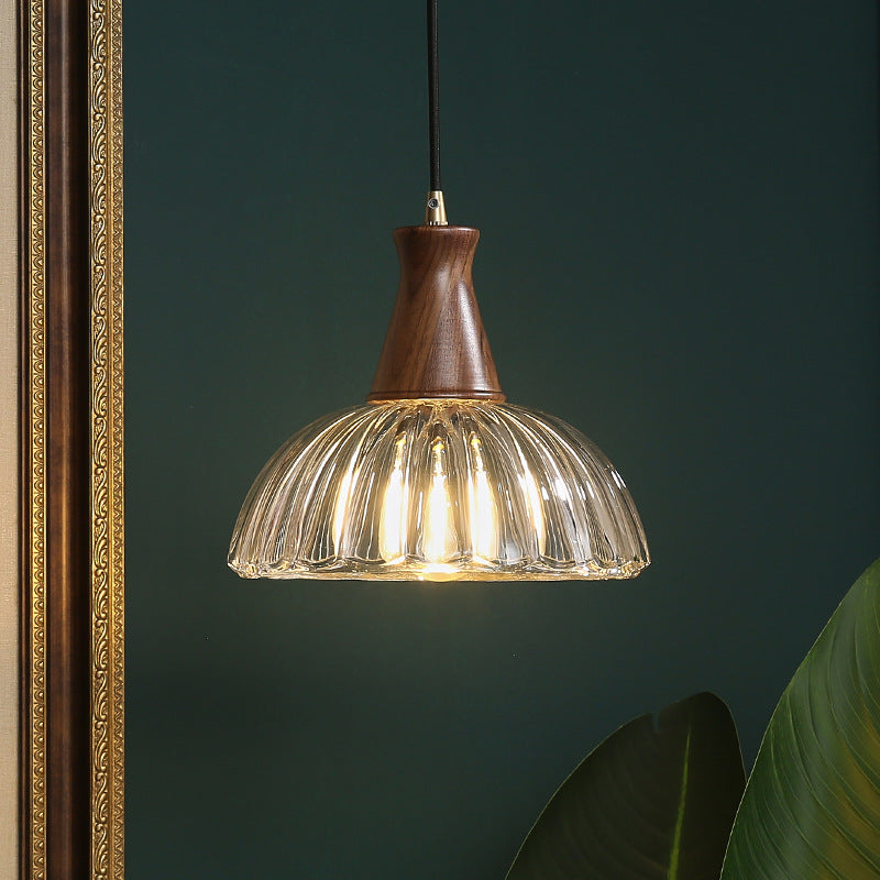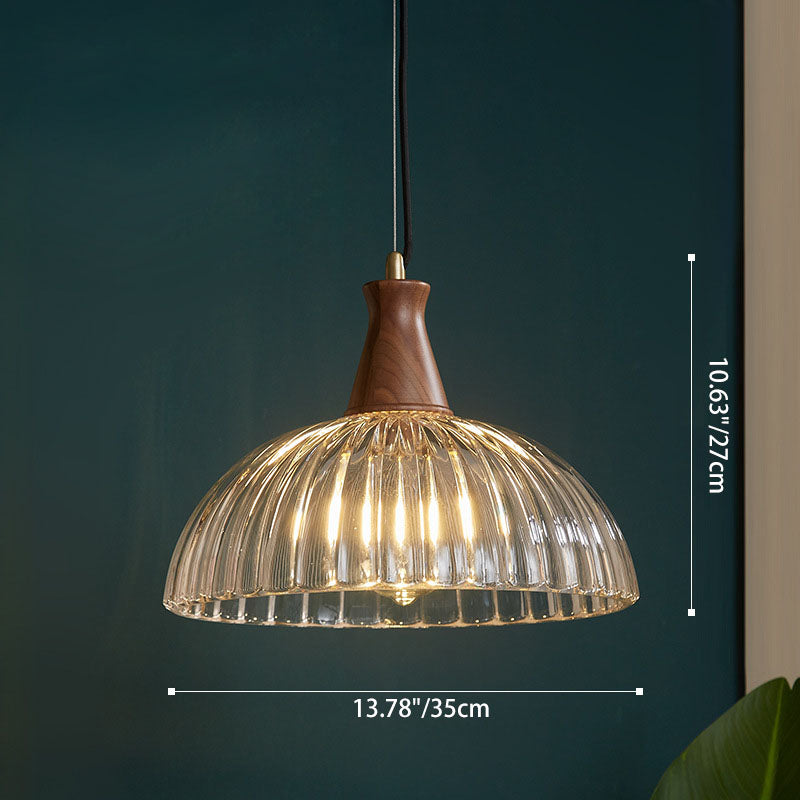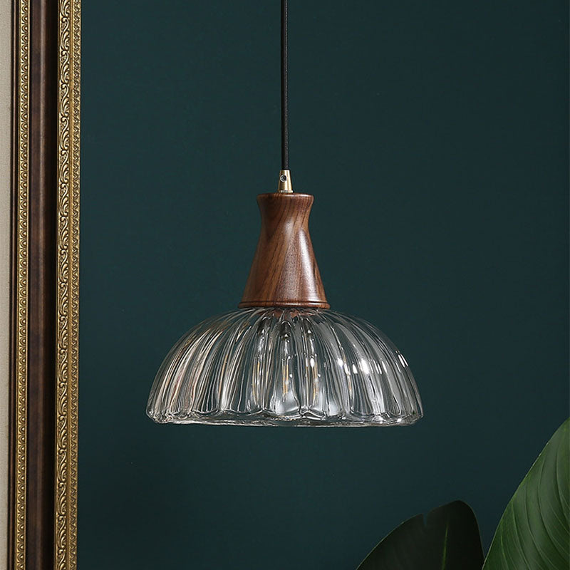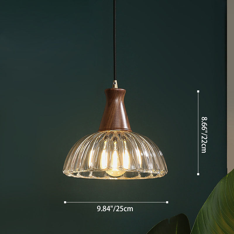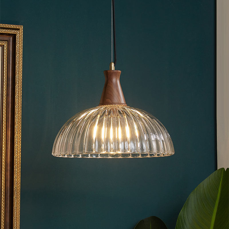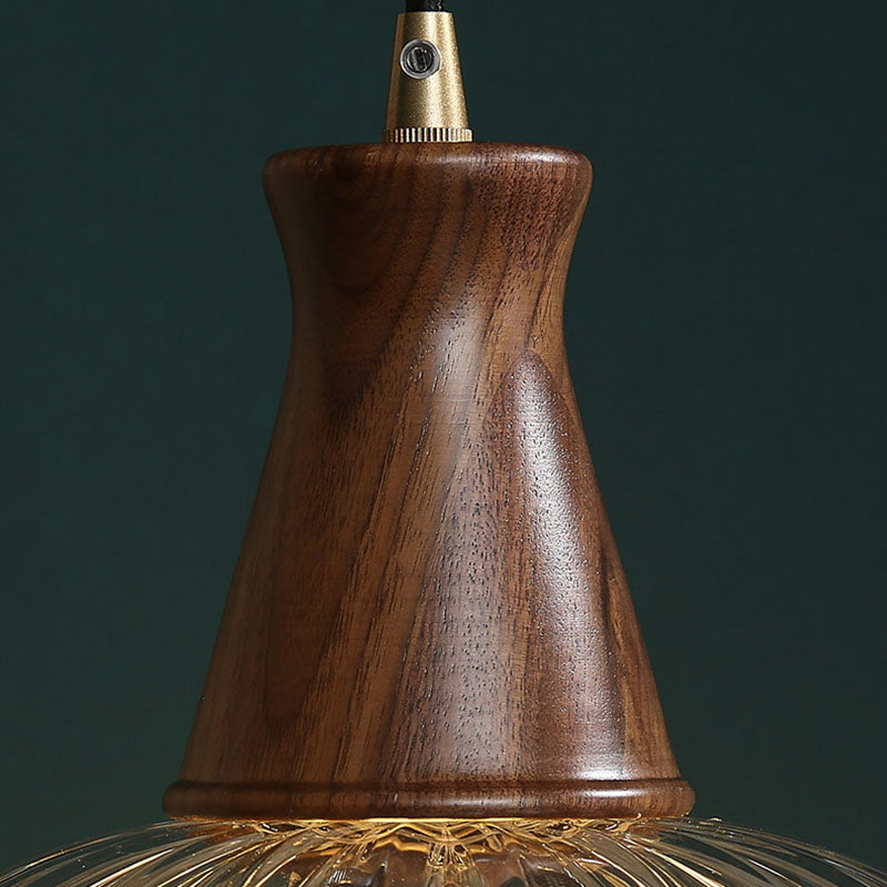 Contemporary Scandinavian Copper Glass Walnut Bowl 1-Light Pendant Light For Dining Room