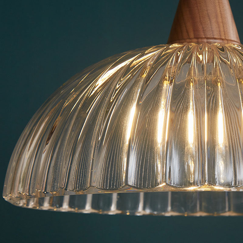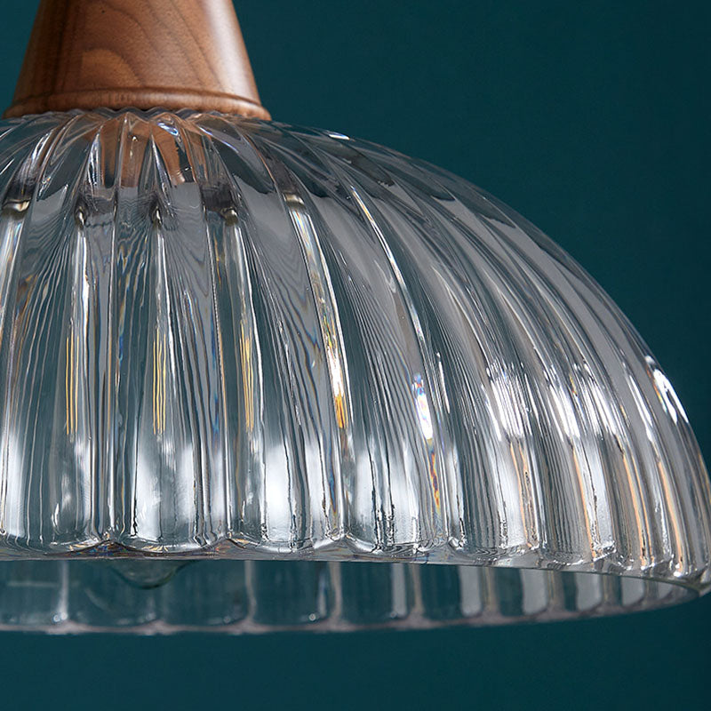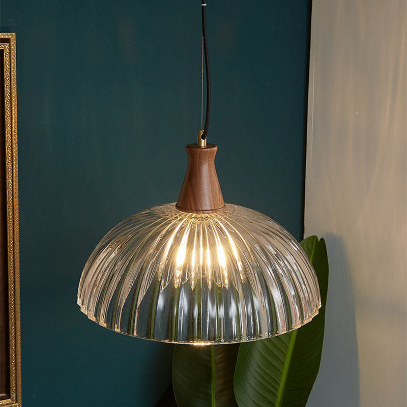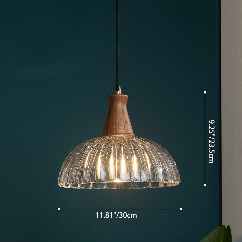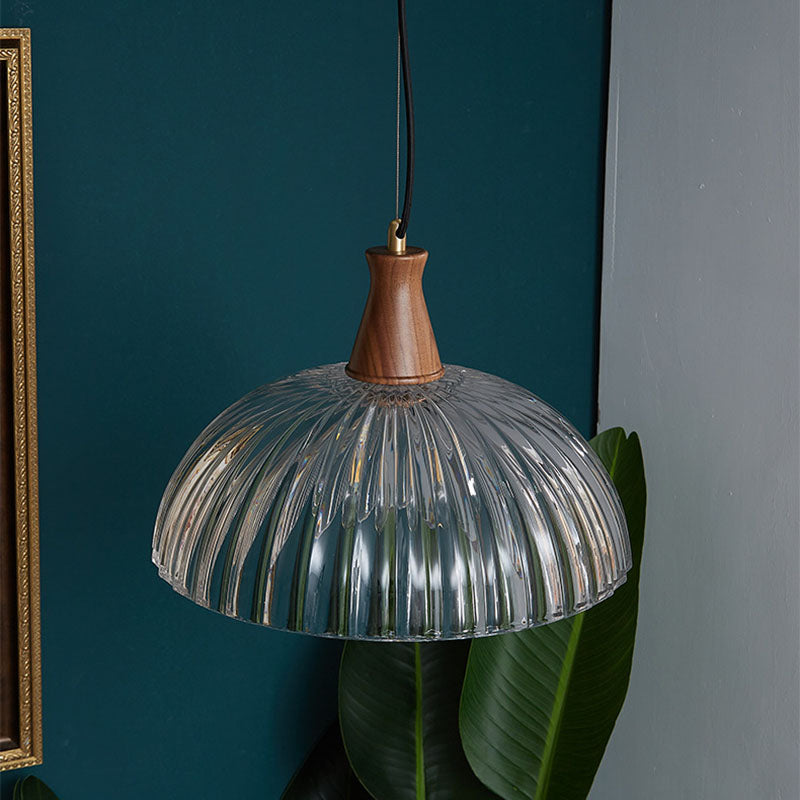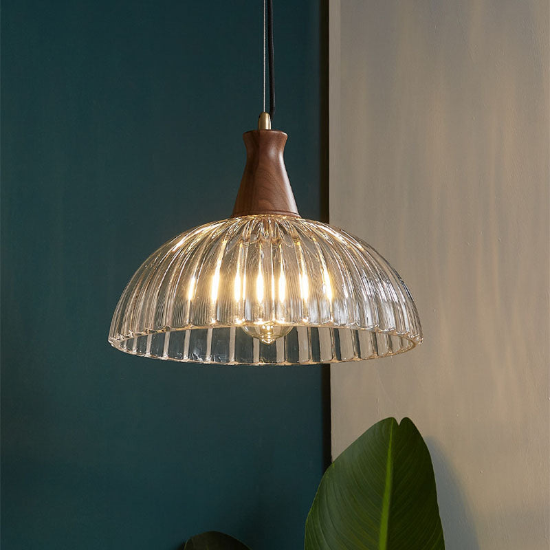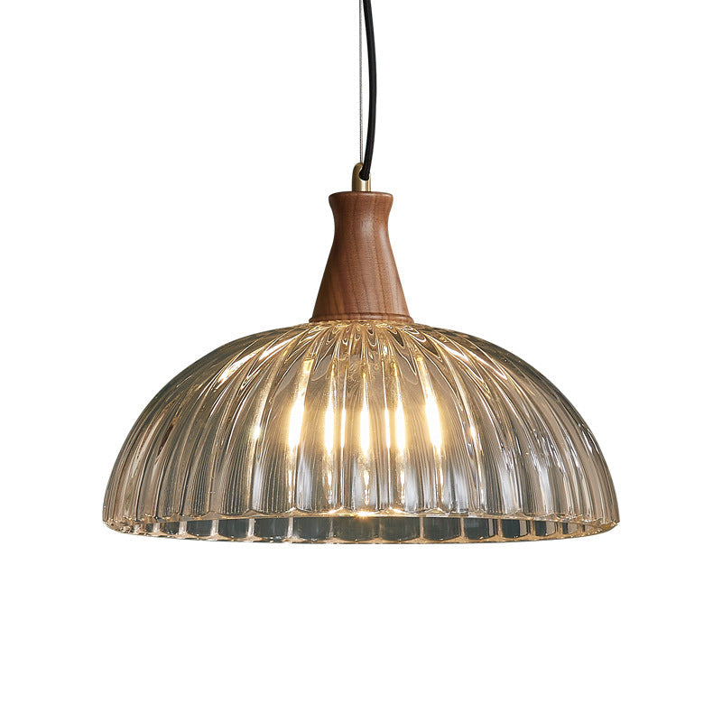 Contemporary Scandinavian Copper Glass Walnut Bowl 1-Light Pendant Light For Dining Room