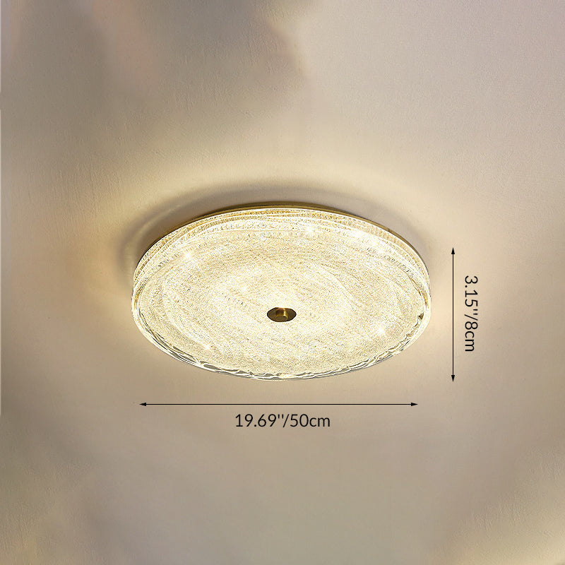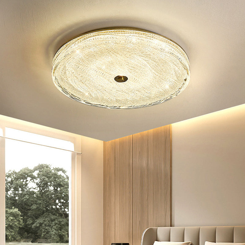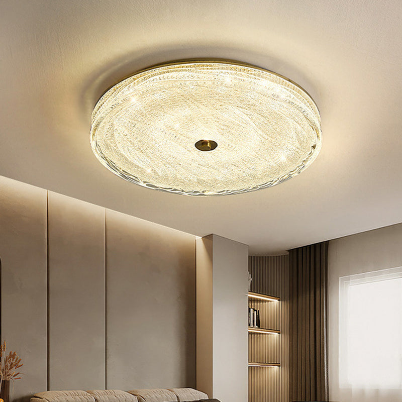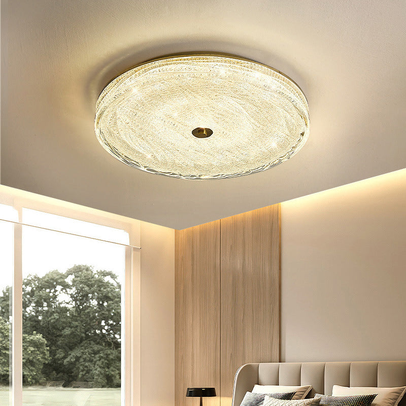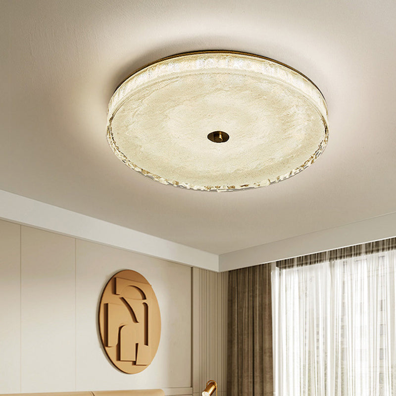 Contemporary Scandinavian Copper Stainless Steel Crystal Sand Round Cylinder LED Flush Mount Ceiling Light For Bedroom