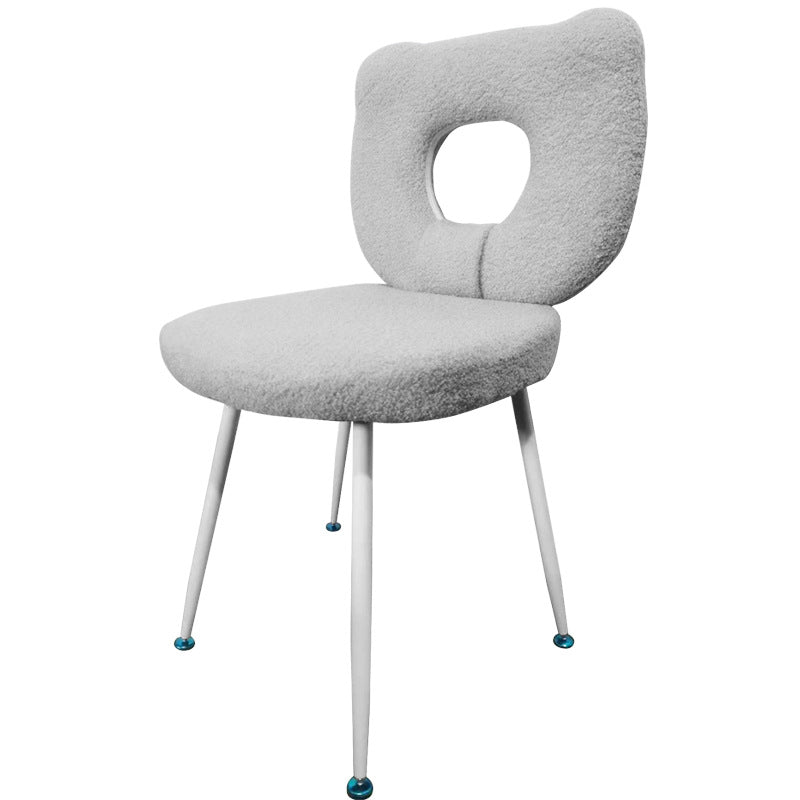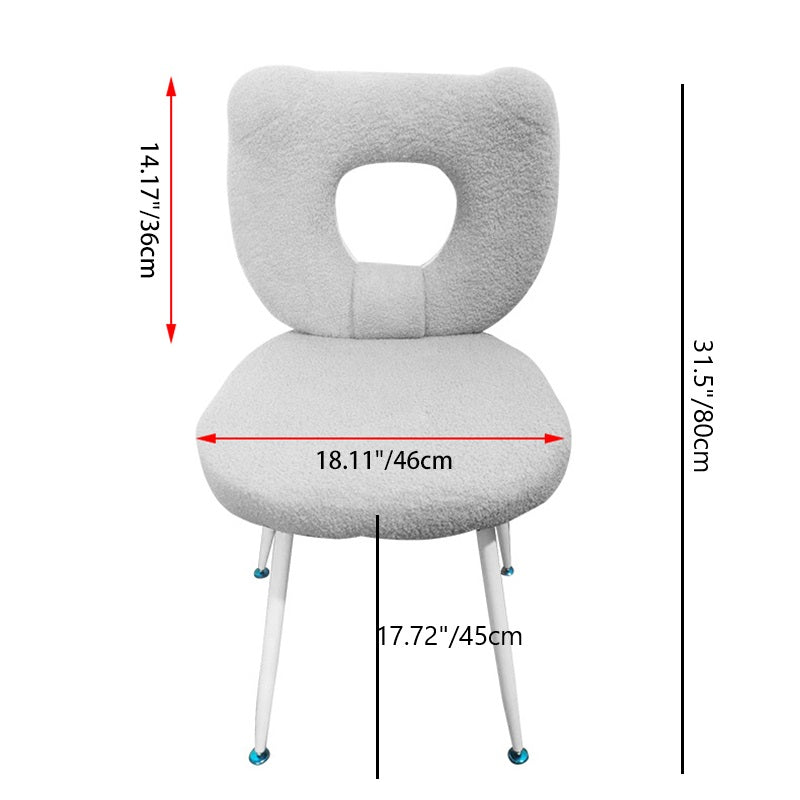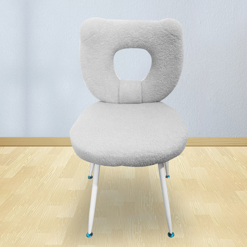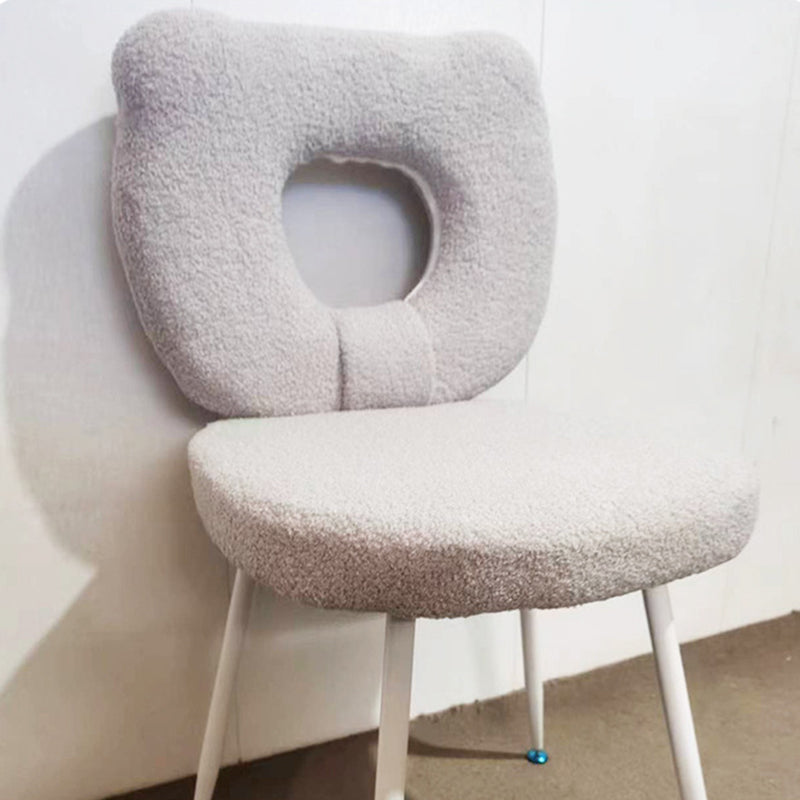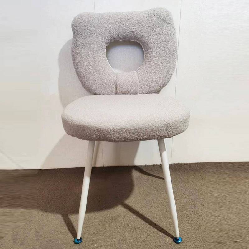 Contemporary Scandinavian Cream Bear Round Lambswool Metal Vanity Stool Backrest For Bedroom