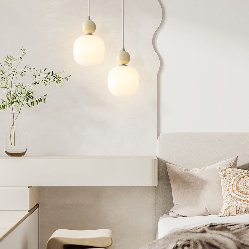 Contemporary Scandinavian Cream Round Cylinder Resin PE 1-Light Pendant Light For Bedroom