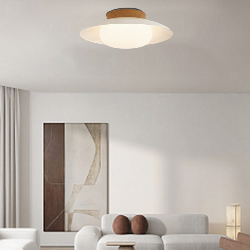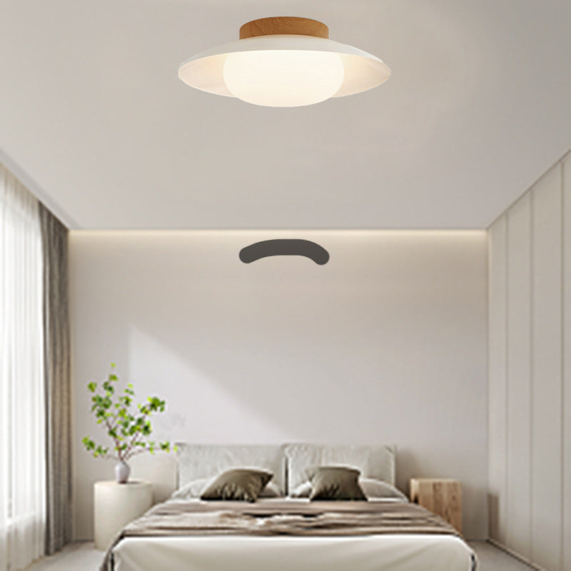 Contemporary Scandinavian Cream Round Dome Metal Acrylic LED Flush Mount Ceiling Light For Bedroom