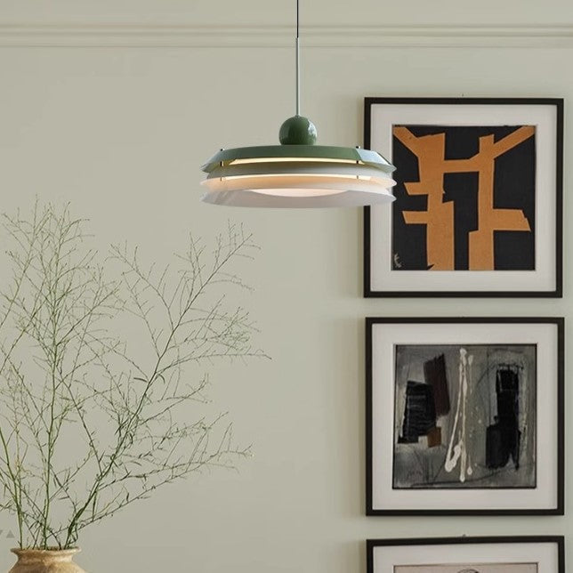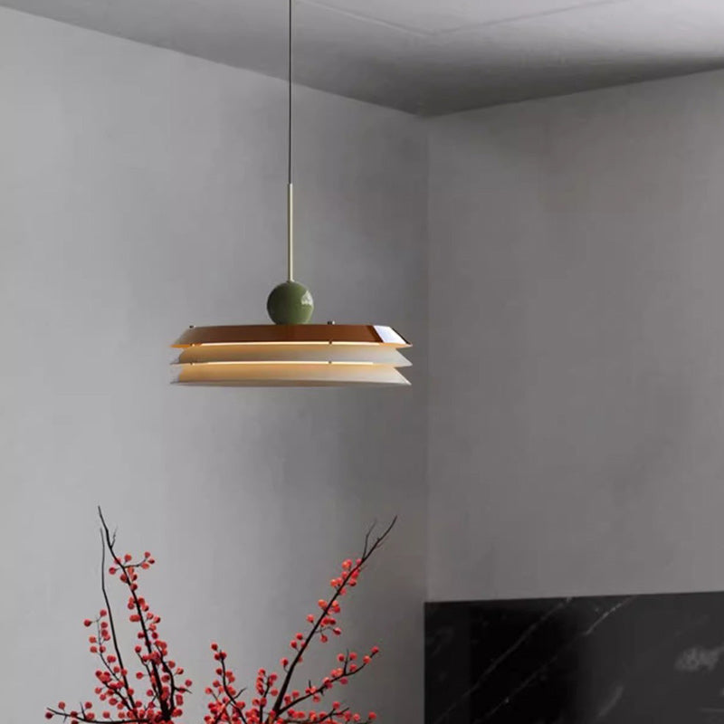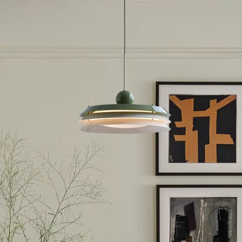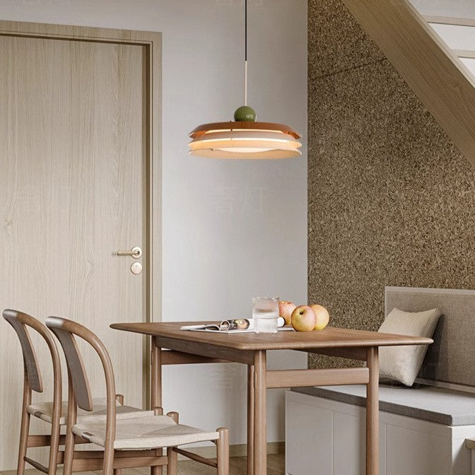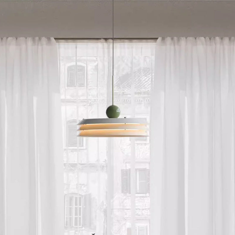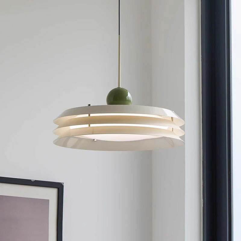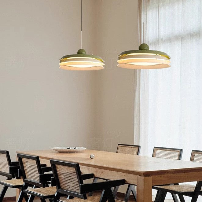 Contemporary Scandinavian Cream Round Iron Acrylic LED Pendant Light For Dining Room