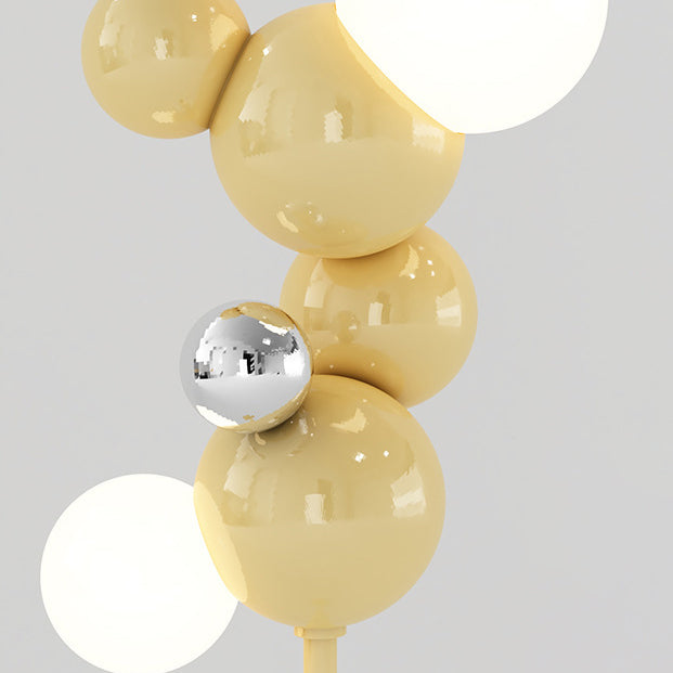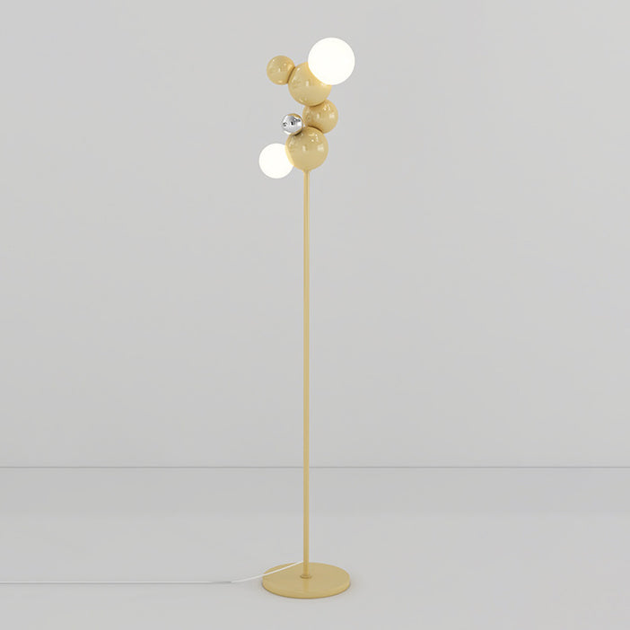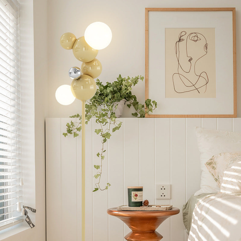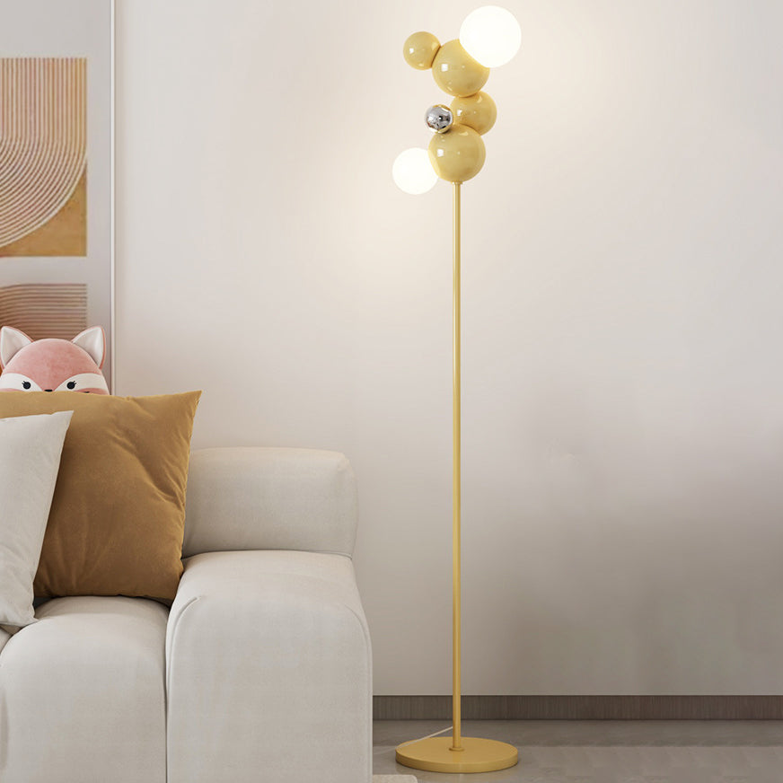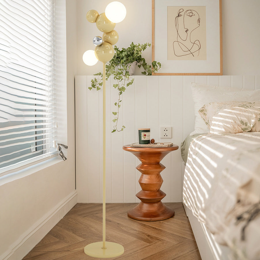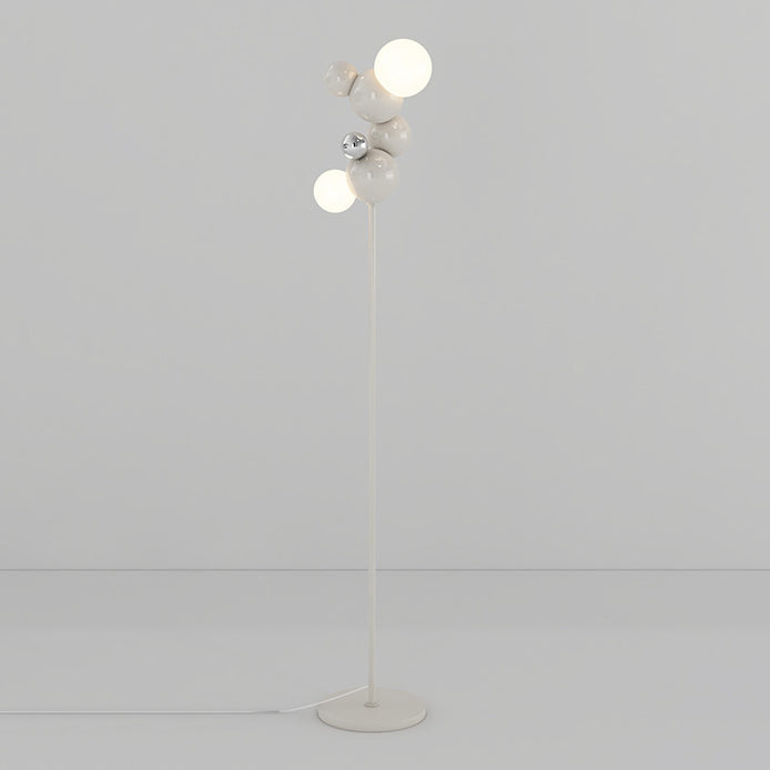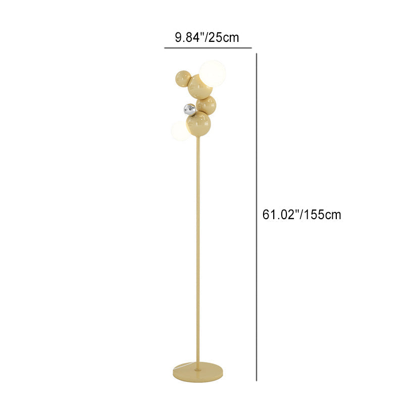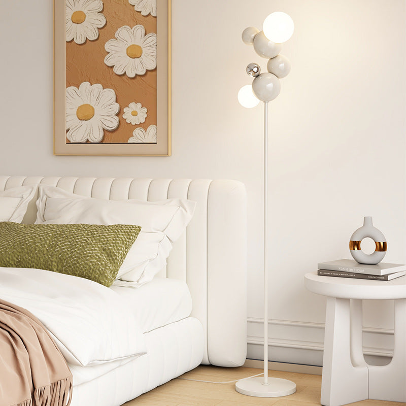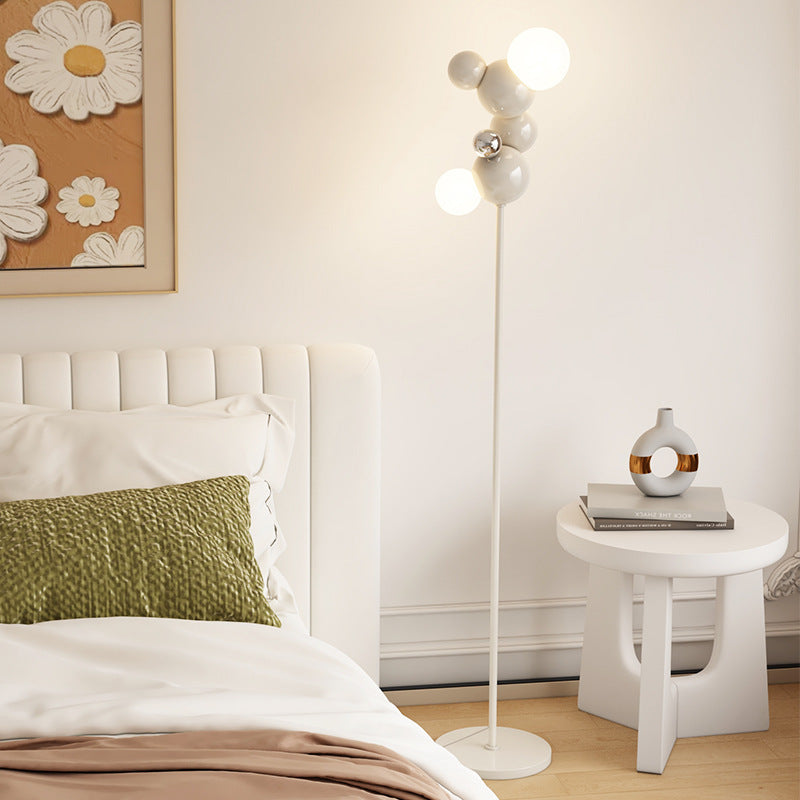 Contemporary Scandinavian Cream Round Orb Iron Glass 2-Light Standing Floor Lamp For Living Room