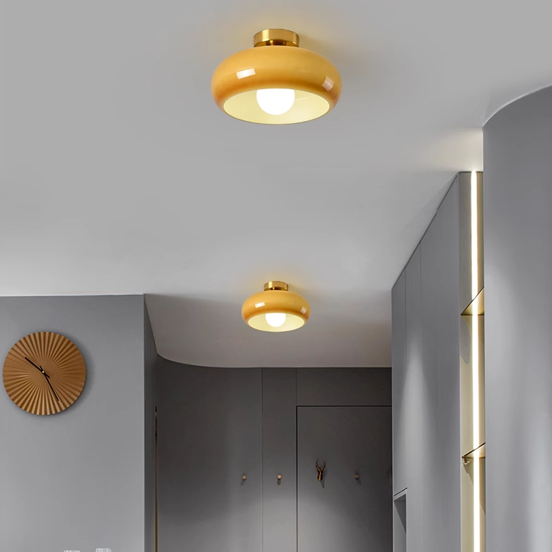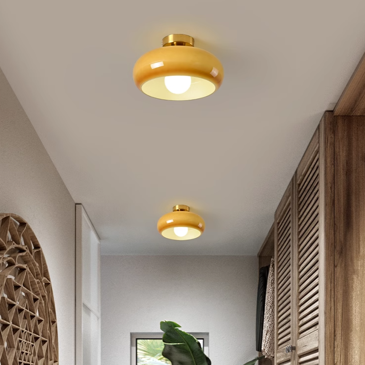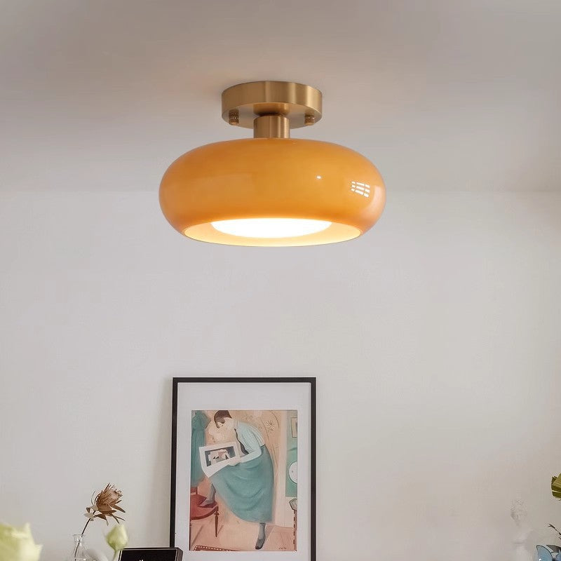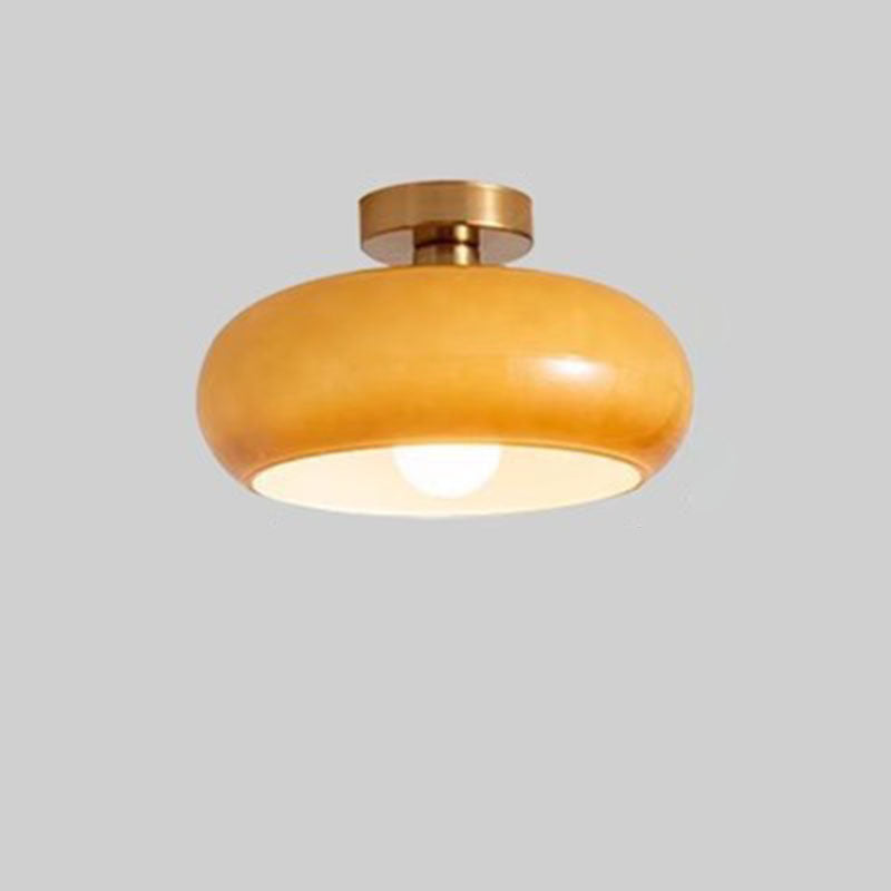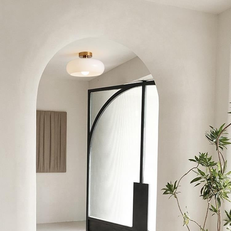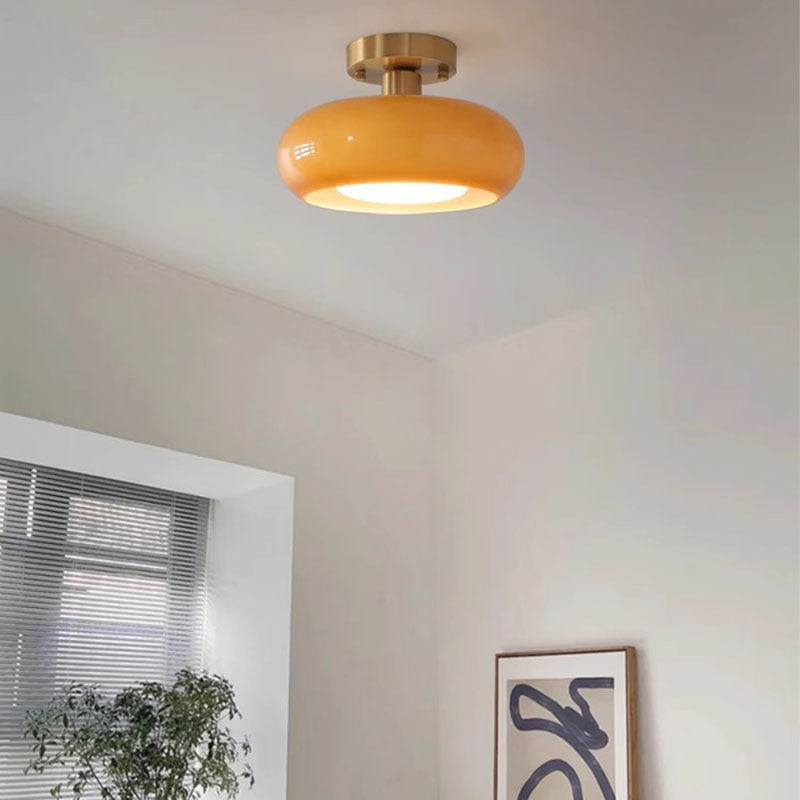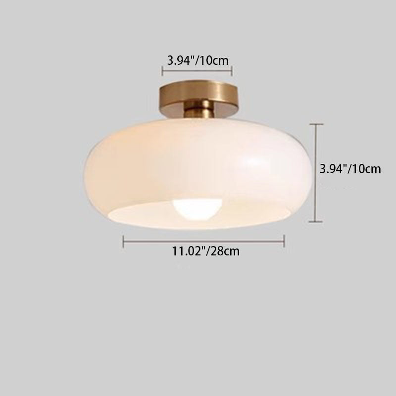 Contemporary Scandinavian Cream Round Oval Iron Glass 1-Light Semi-Flush Mount Ceiling Light For Bedroom