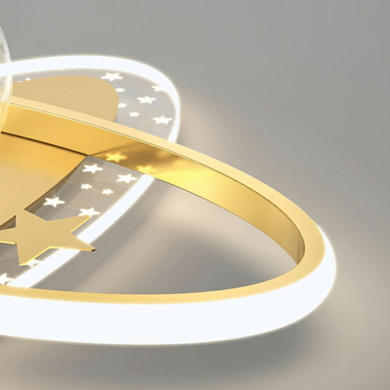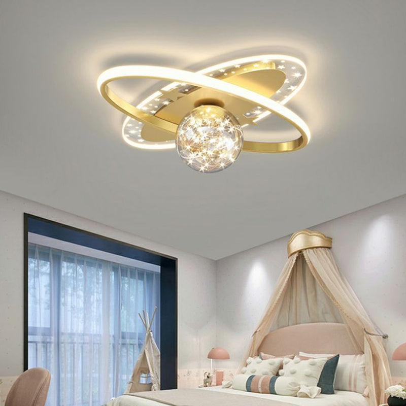 Contemporary Scandinavian Crescent Star Oval Orb Glass Aluminum Iron LED Flush Mount Ceiling Light For Bedroom