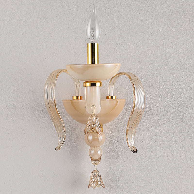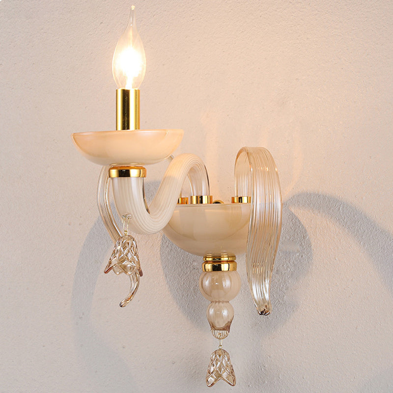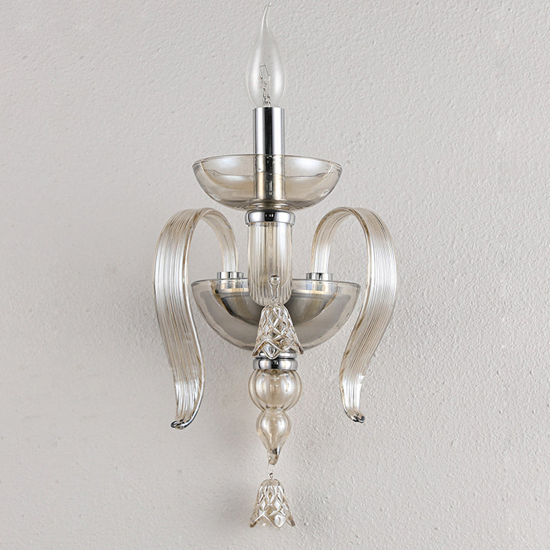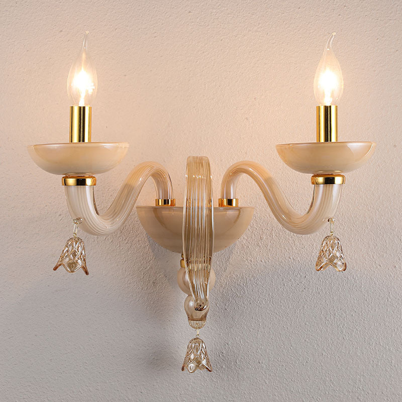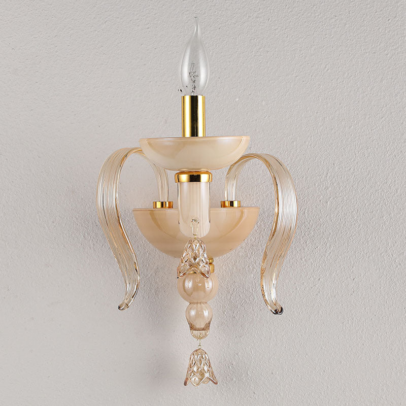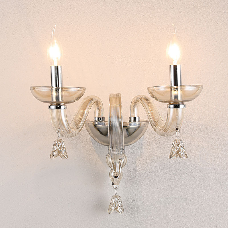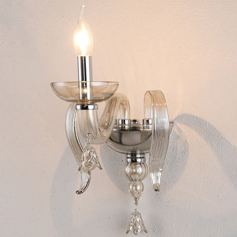 Contemporary Scandinavian Curved Leaf Round Glass Crystal Hardware 1/2 Light Wall Sconce Lamp For Bedroom