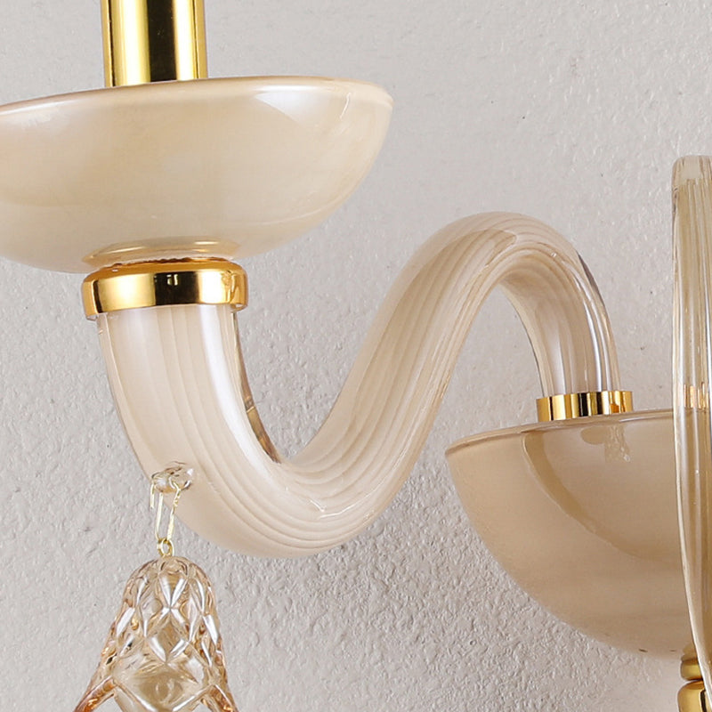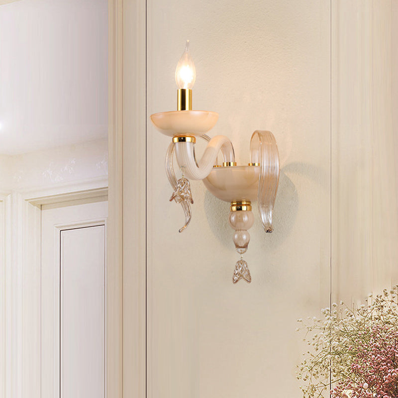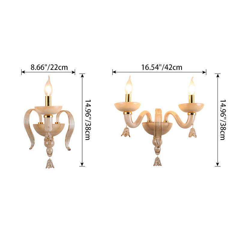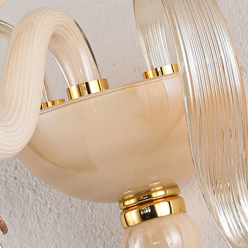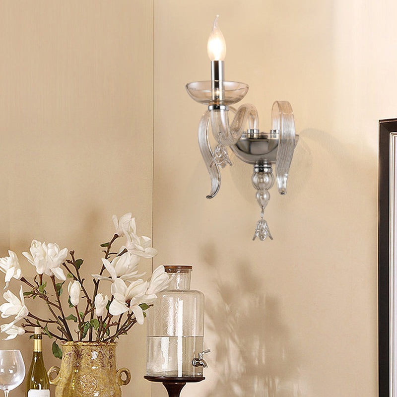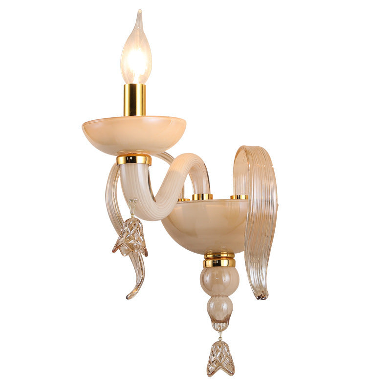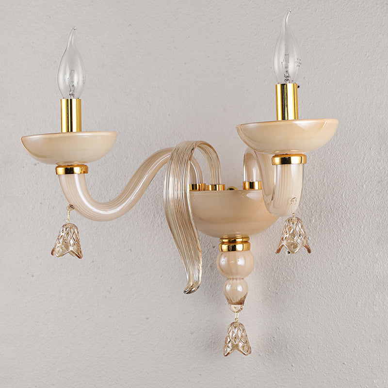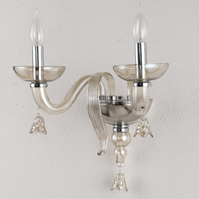 Contemporary Scandinavian Curved Leaf Round Glass Crystal Hardware 1/2 Light Wall Sconce Lamp For Bedroom