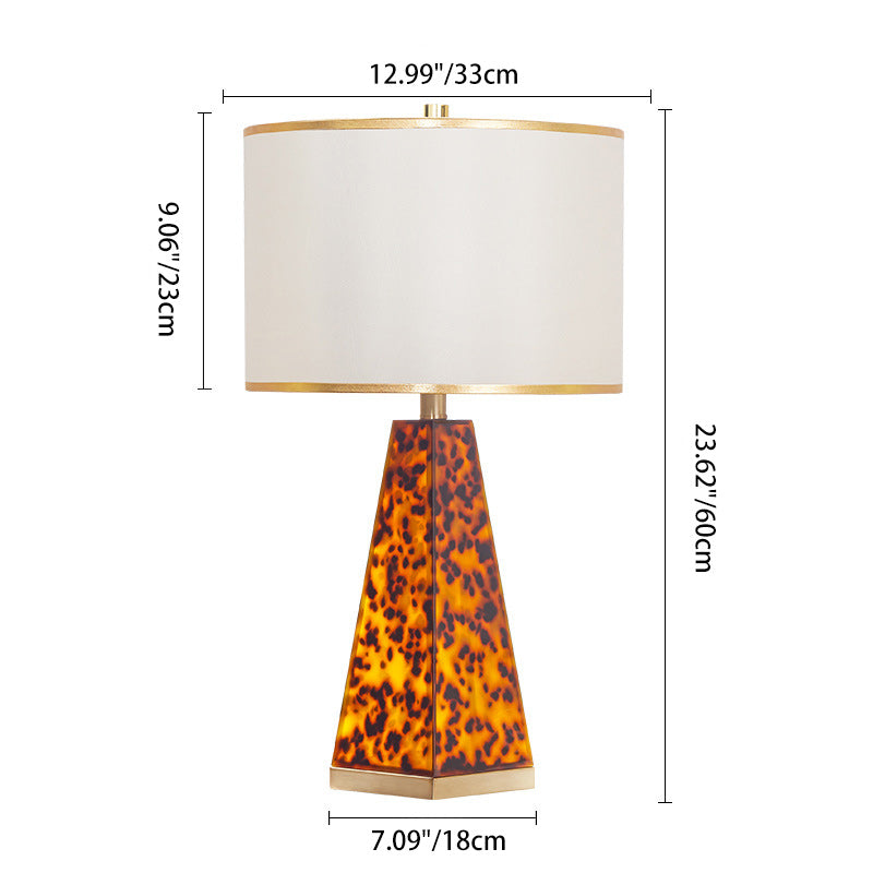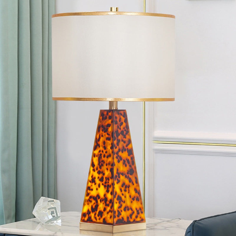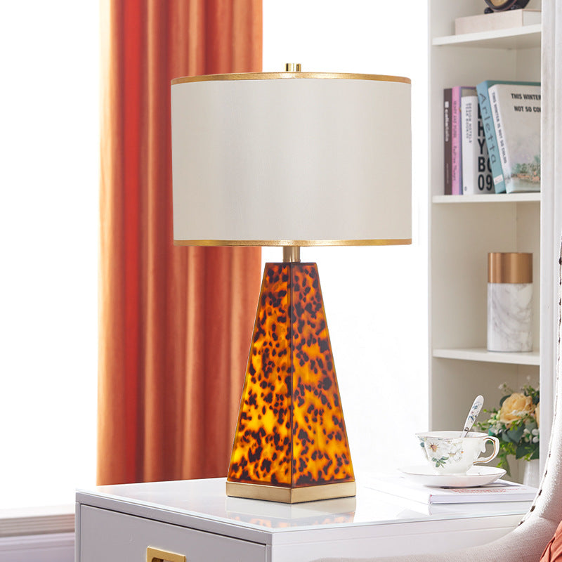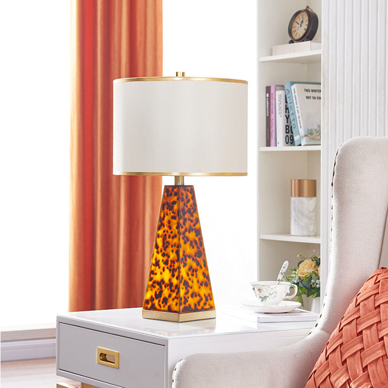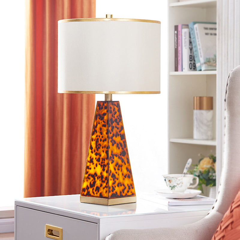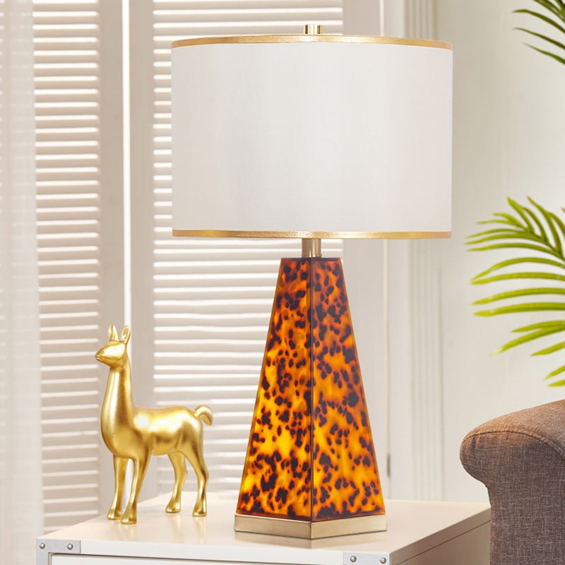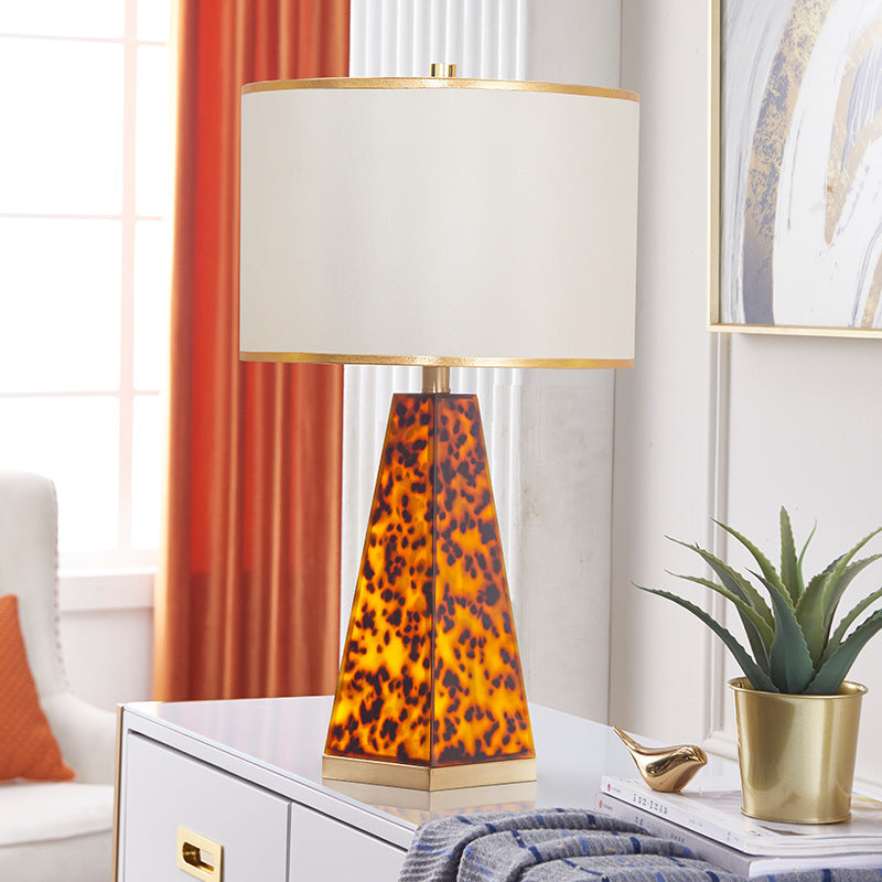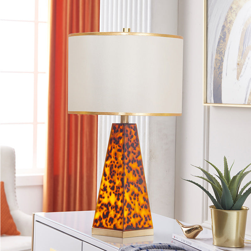 Contemporary Scandinavian Cylinder Fabric Shade Leopard Brass Base 1-Light Table Lamp For Living Room