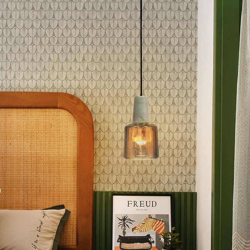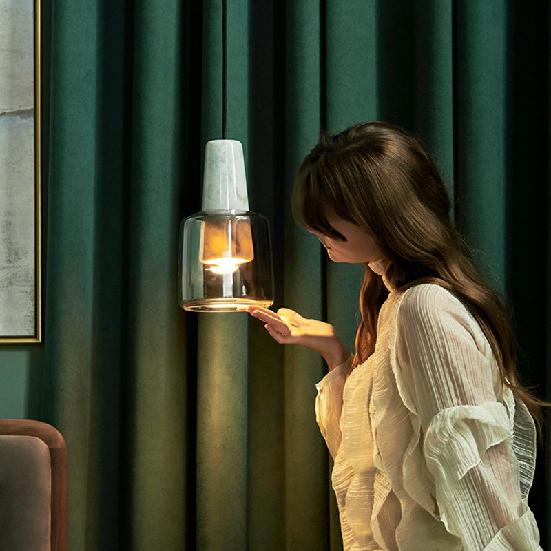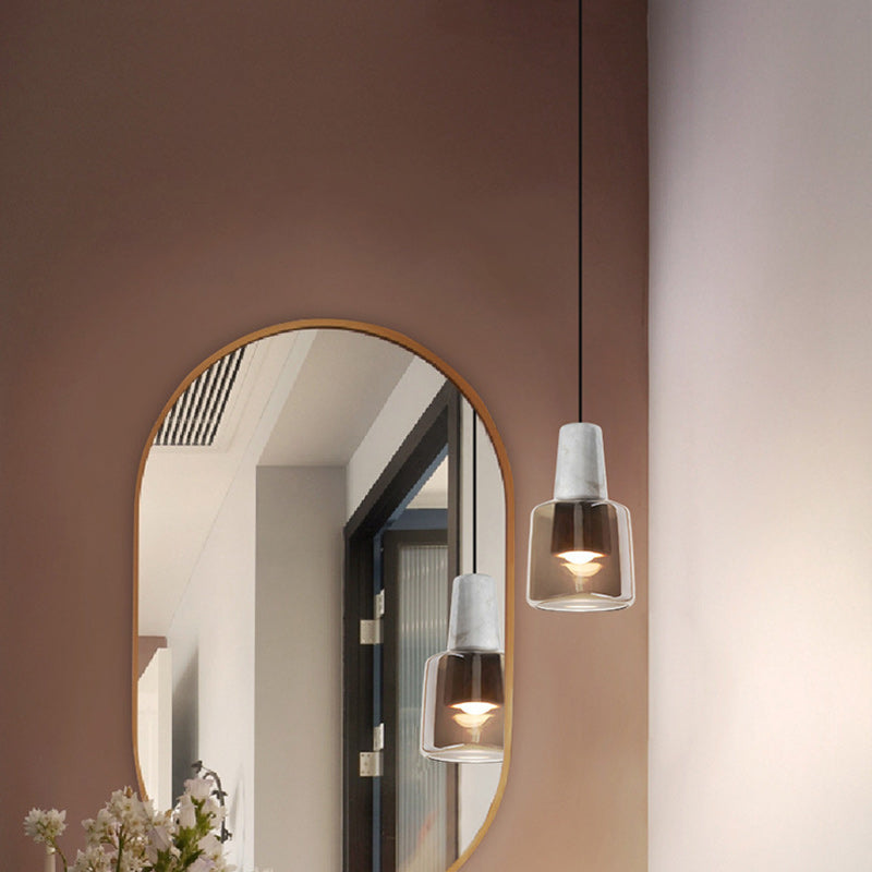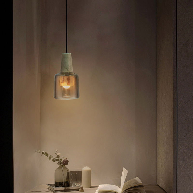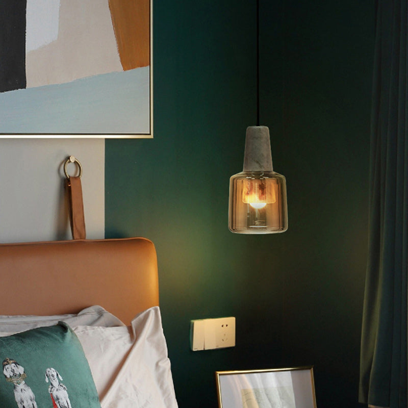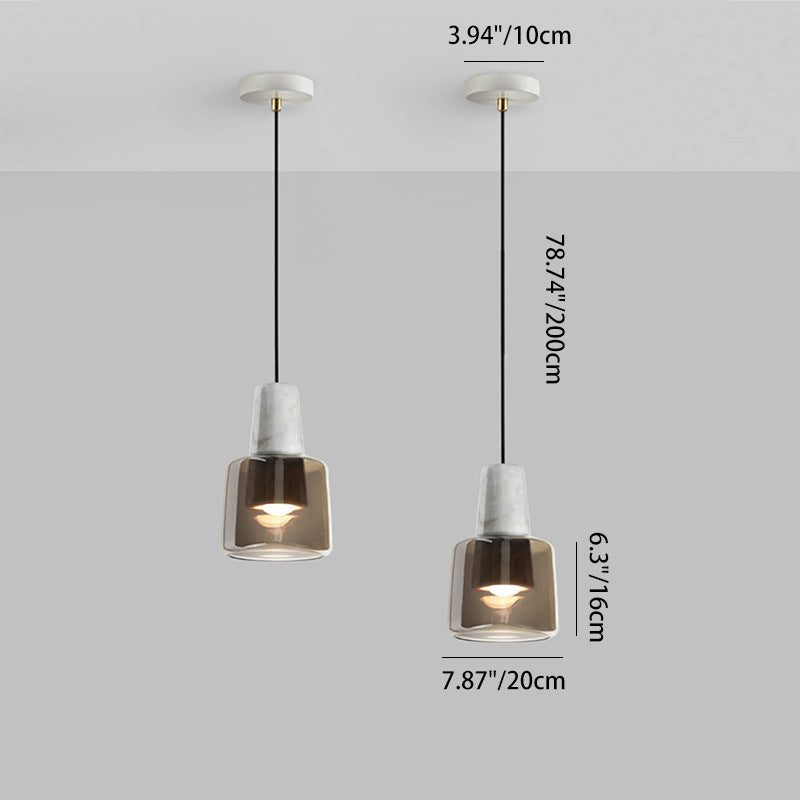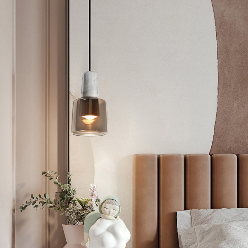 Contemporary Scandinavian Cylinder Marble Glass 1-Light Pendant Light For Bedroom