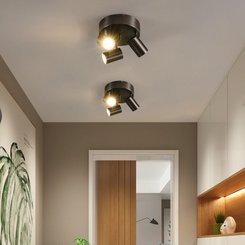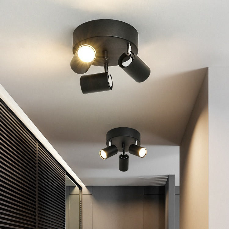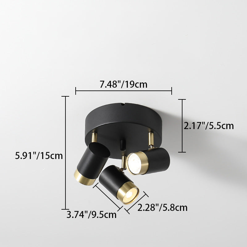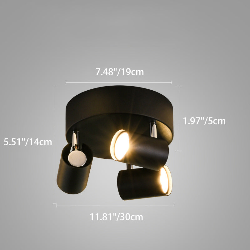 Contemporary Scandinavian Cylindrical Round Iron 3-Light Semi-Flush Mount Ceiling Light For Living Room