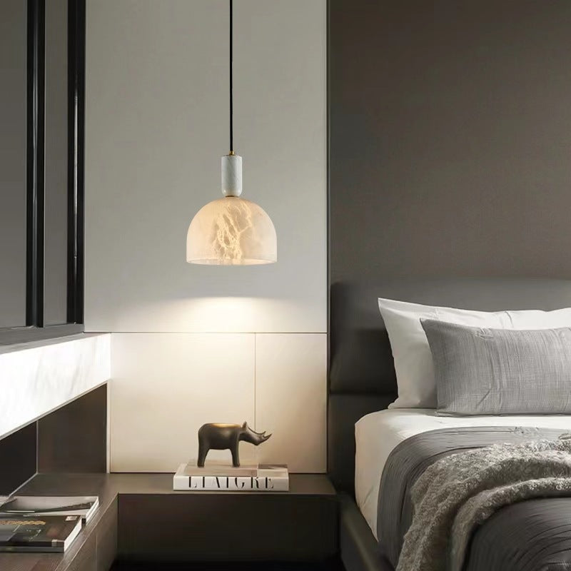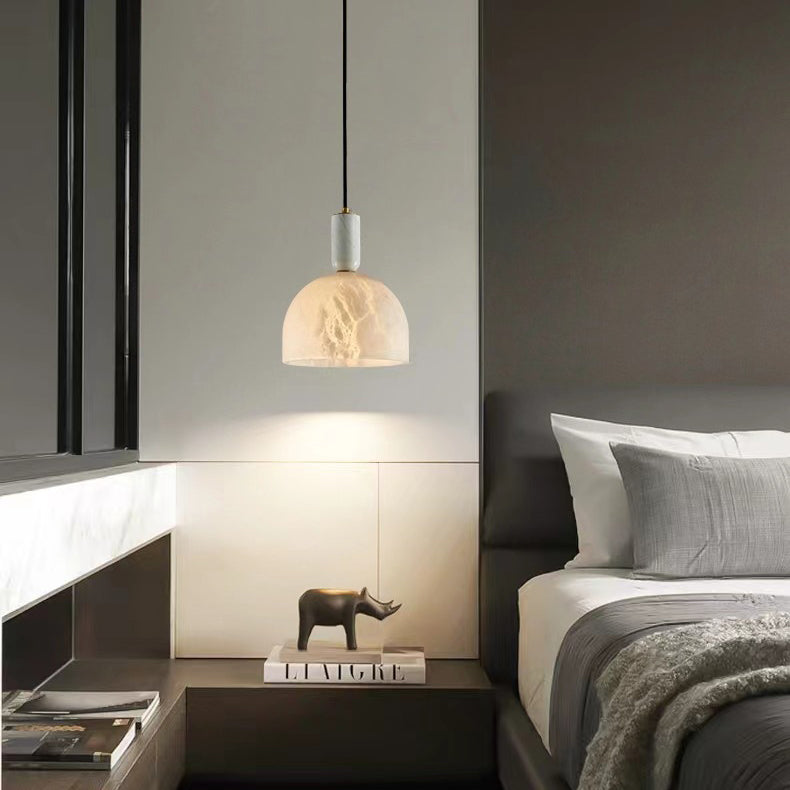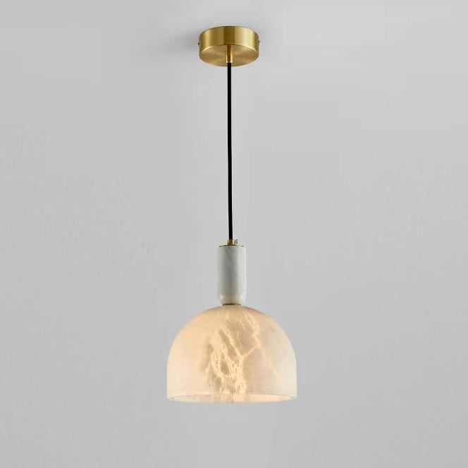 Contemporary Scandinavian Dome Copper Marble 1-Light Pendant Light For Bedroom