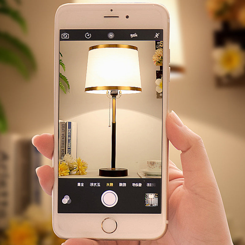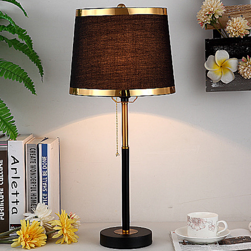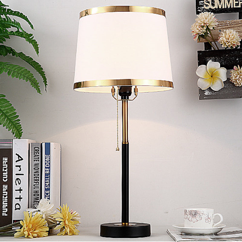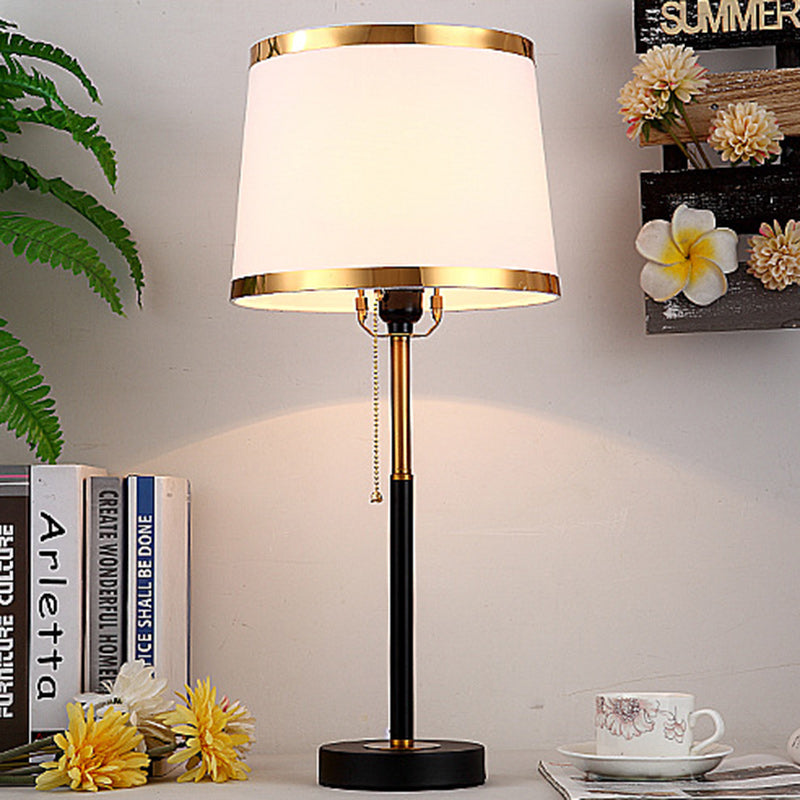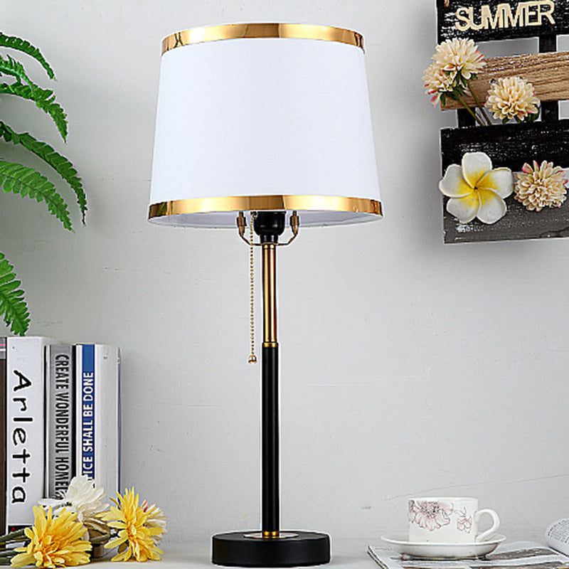 Contemporary Scandinavian Drum Iron Fabric 1-Light Table Lamp For Living Room
