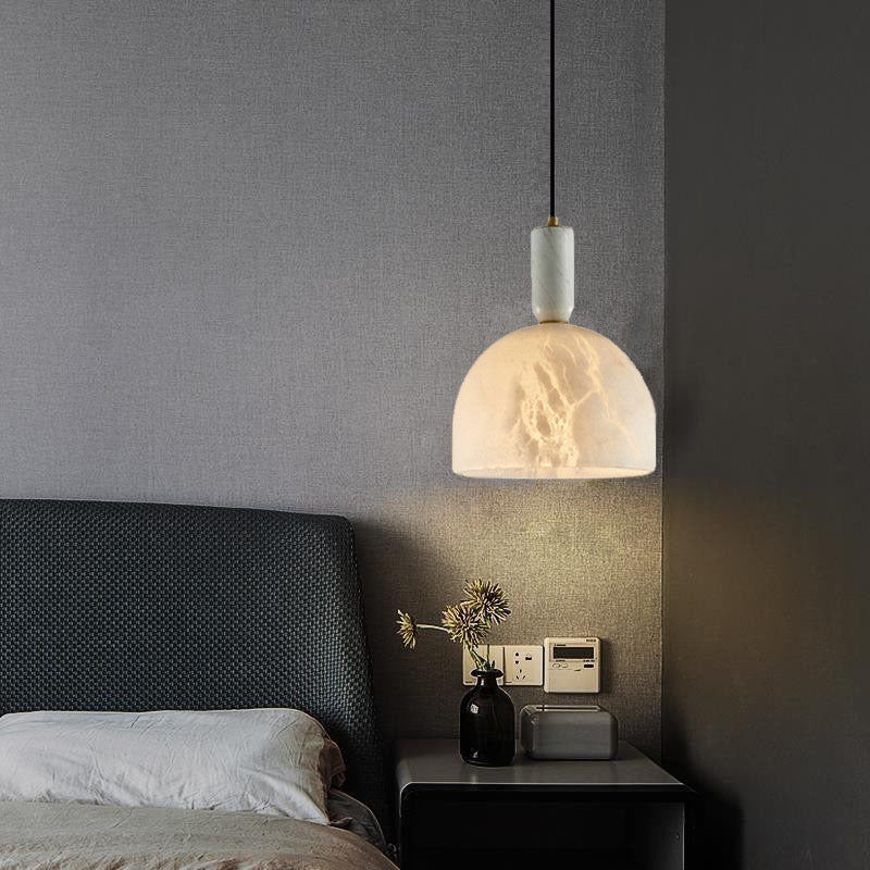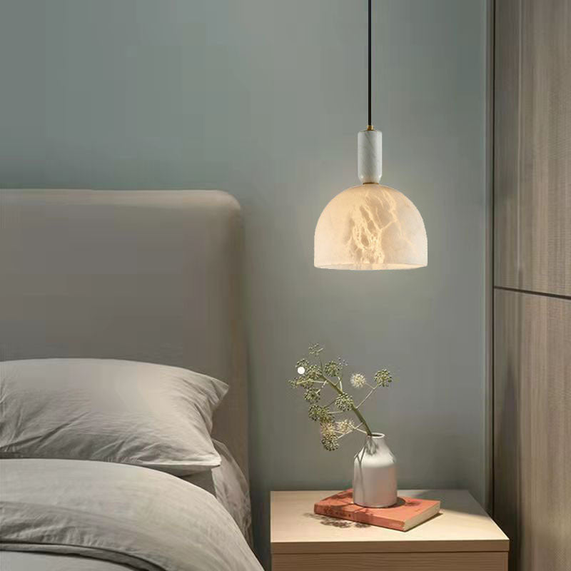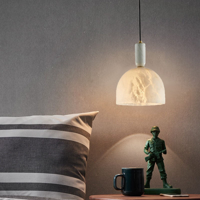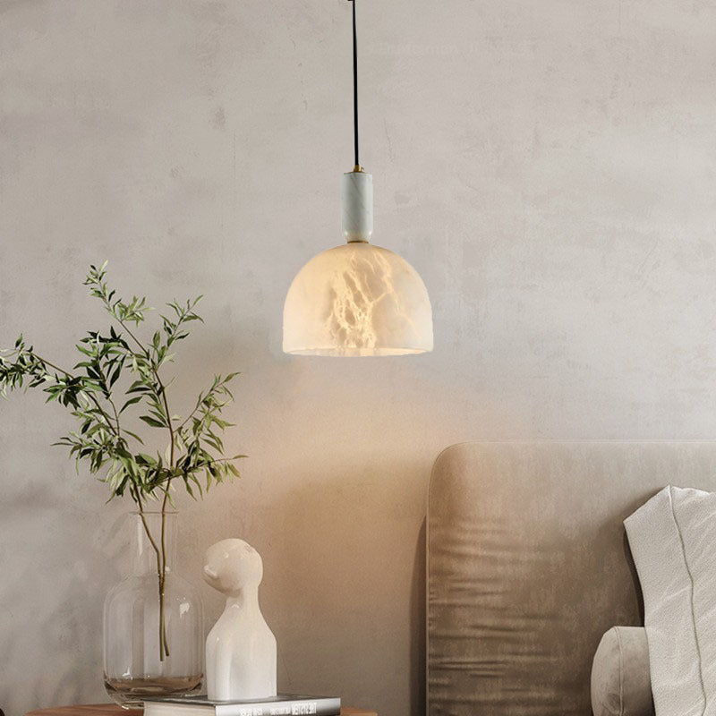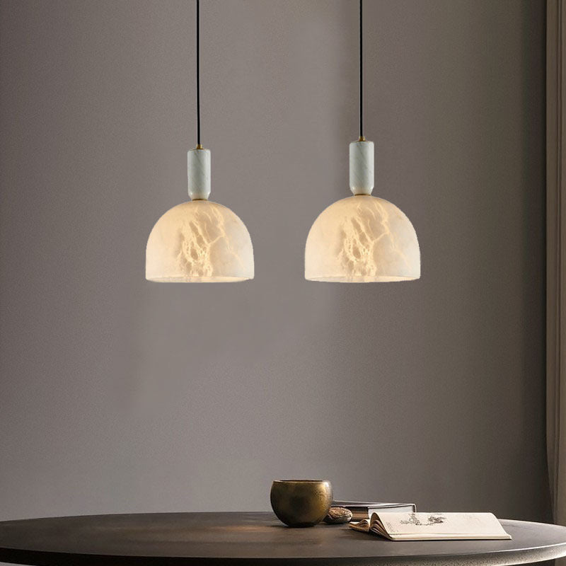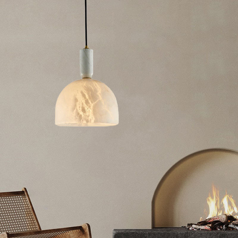 Contemporary Scandinavian Elegance Dome Marble Iron 1-Light Pendant Light For Living Room