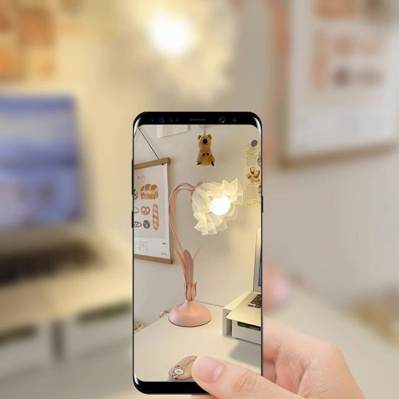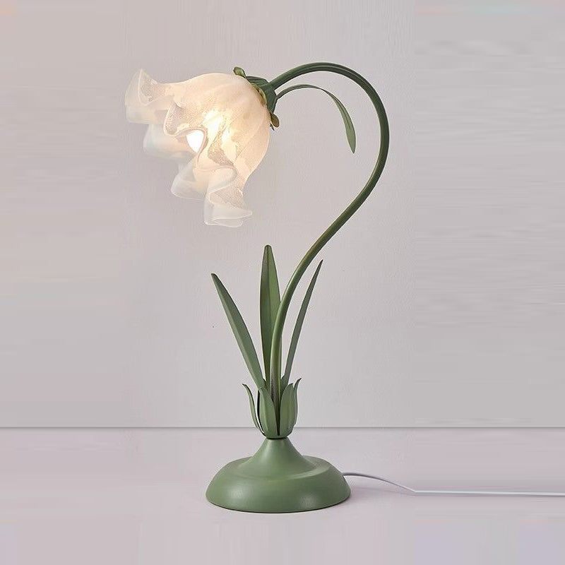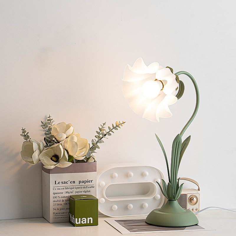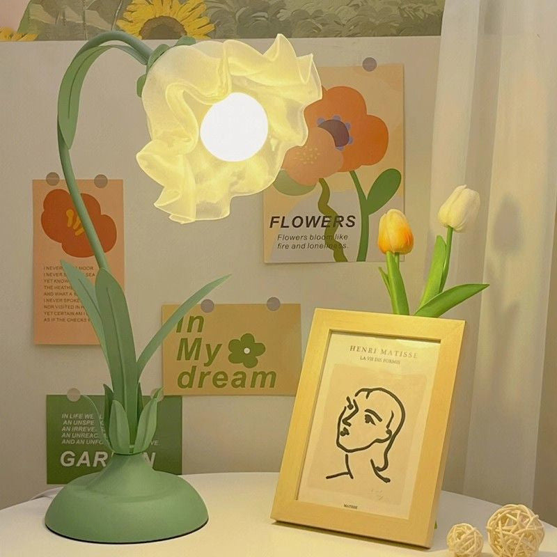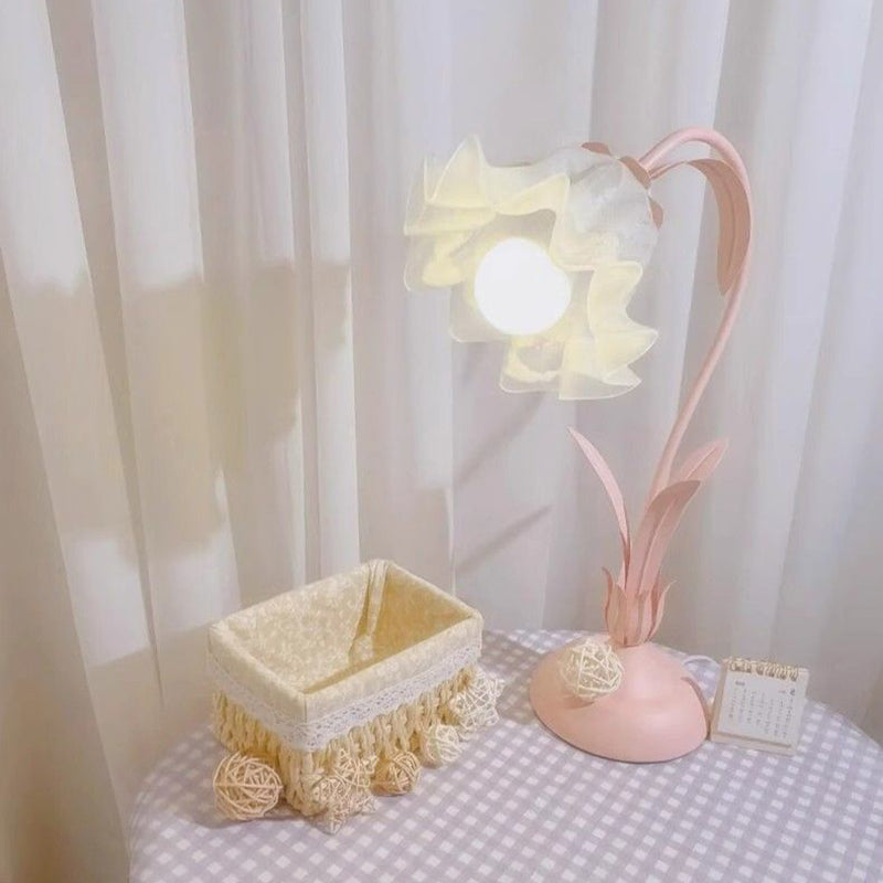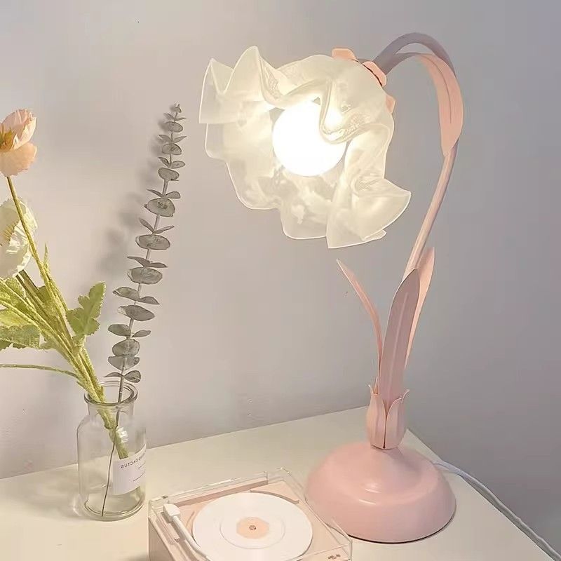 Contemporary Scandinavian Floral Disc Base Iron Acrylic 1-Light Table Lamp For Bedroom