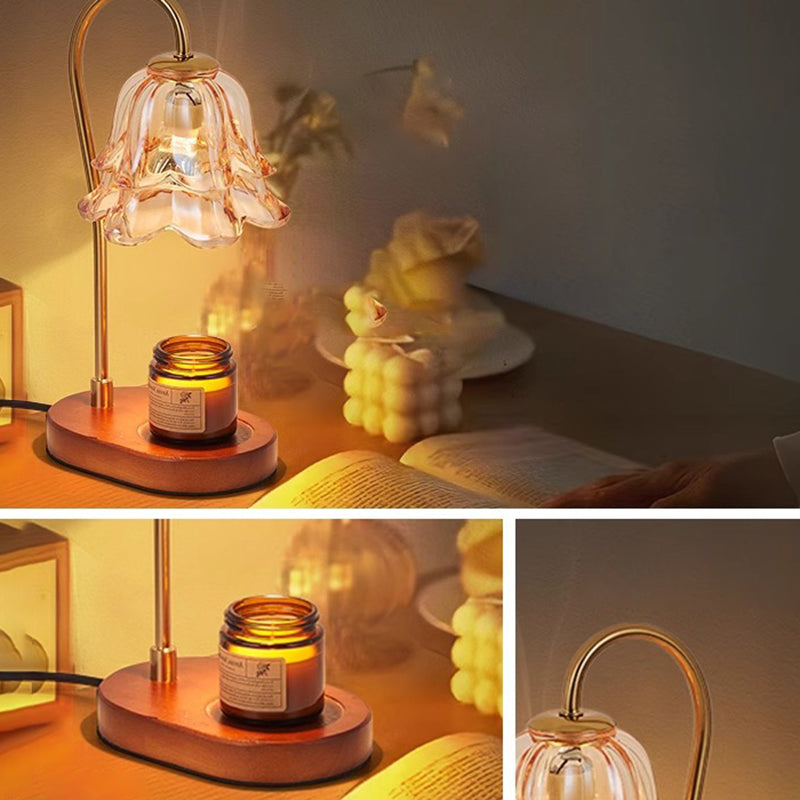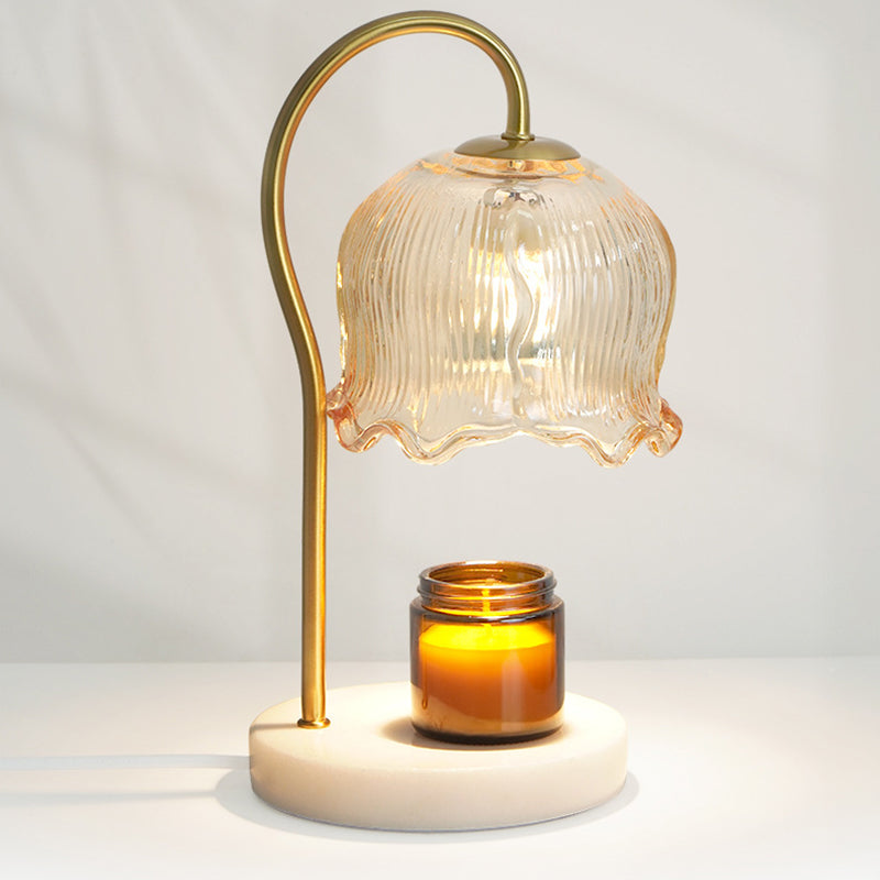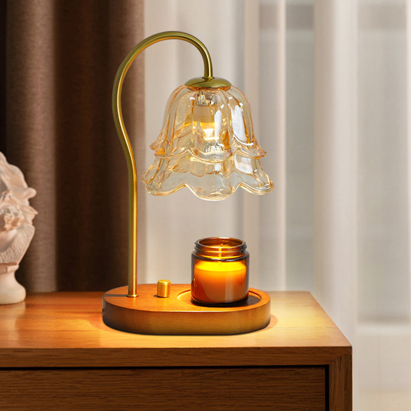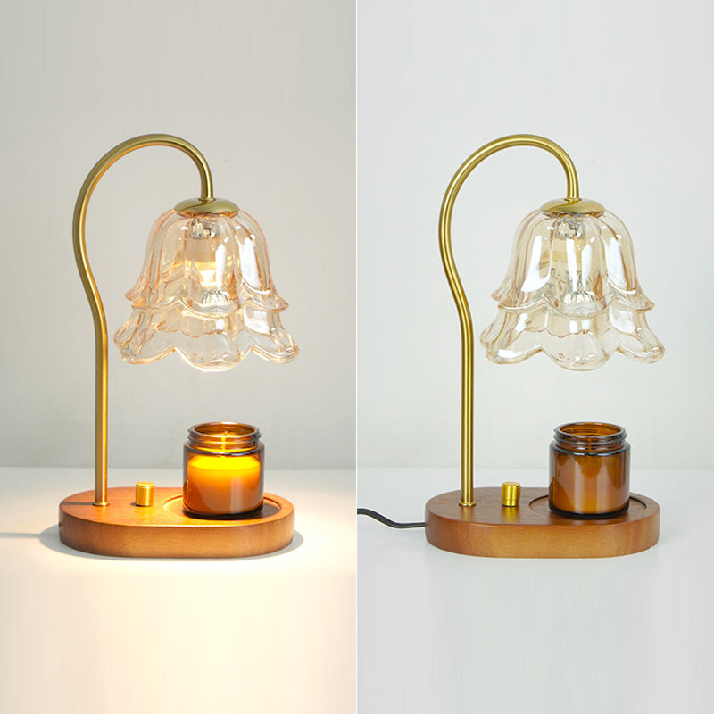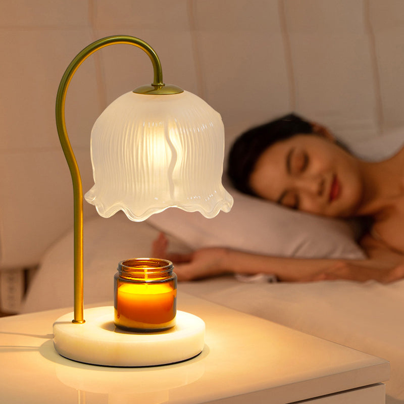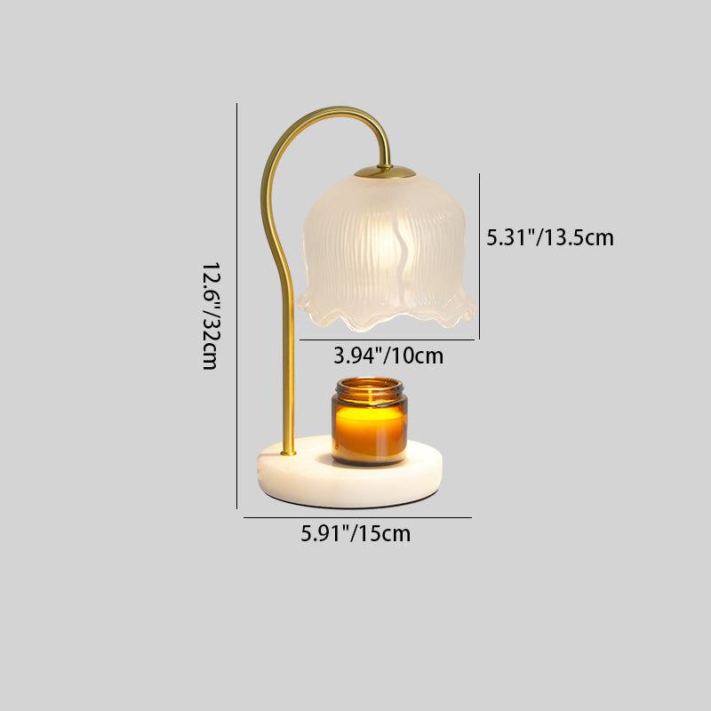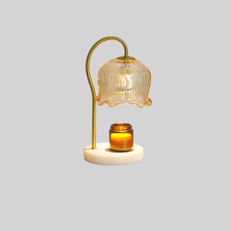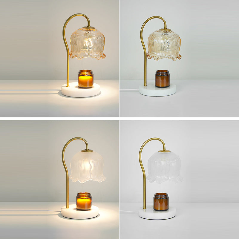 Contemporary Scandinavian Flower Marble Wood Iron 1-Light Aromatherapy Melting Wax Table Lamp For Bedroom
