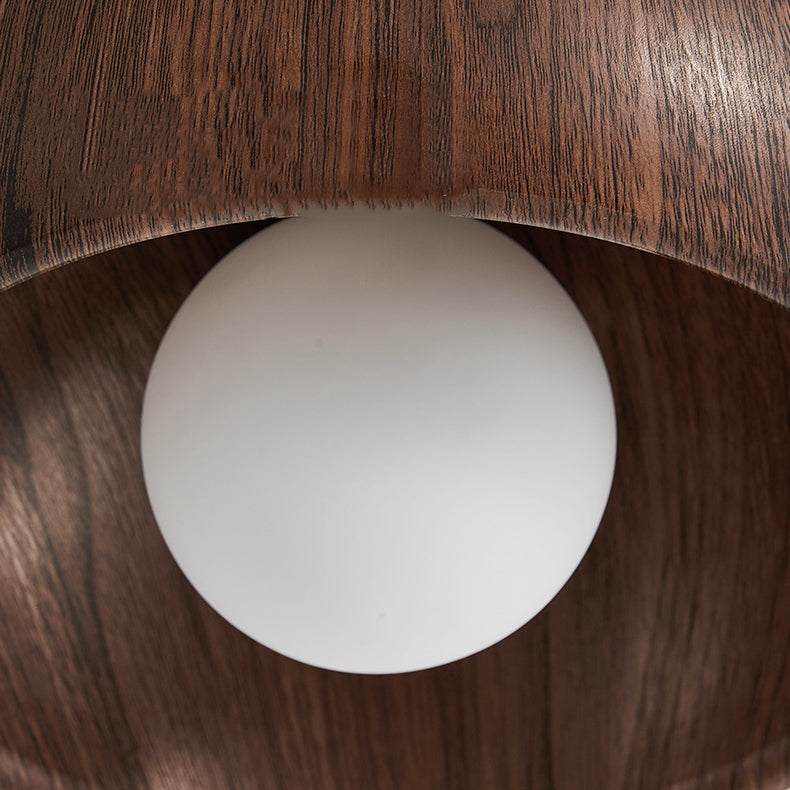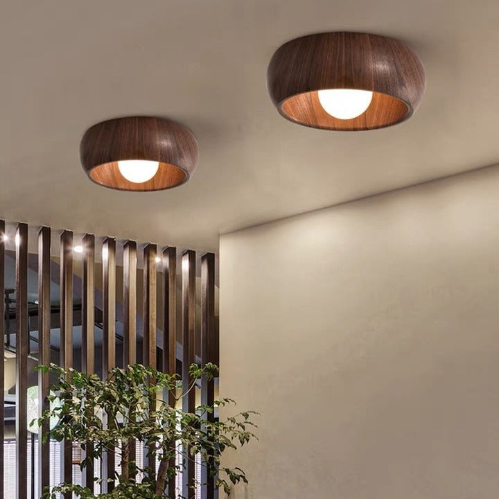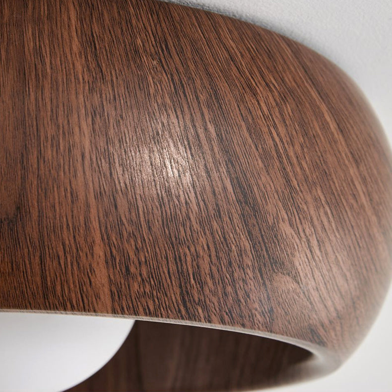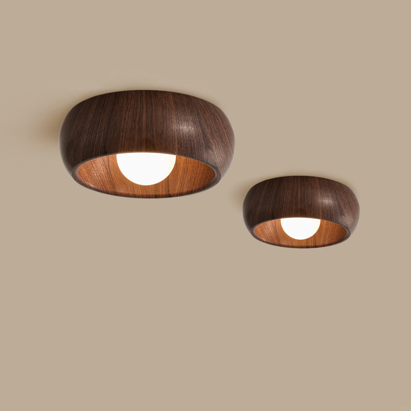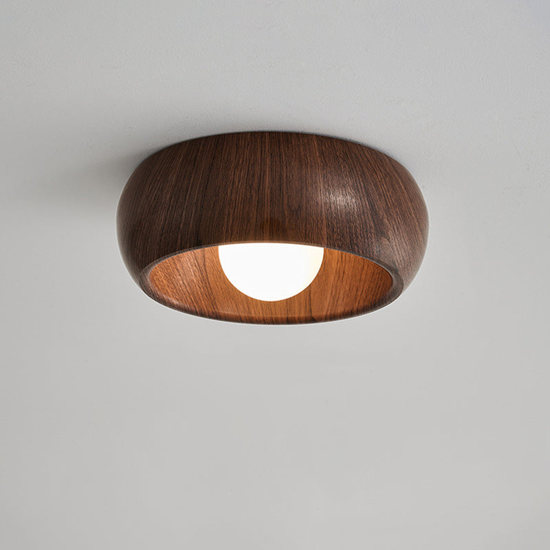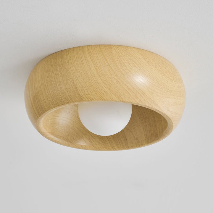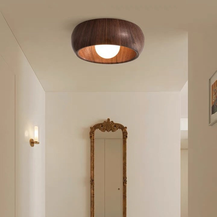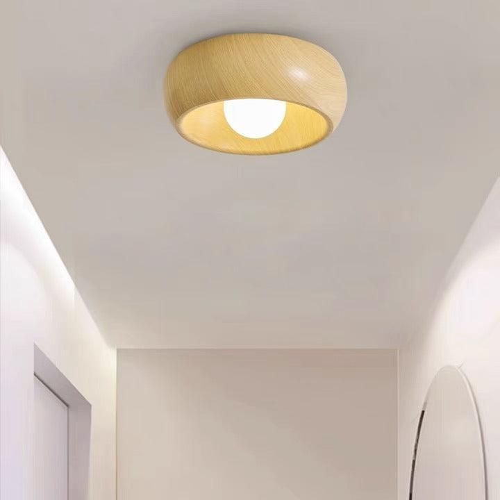 Contemporary Scandinavian Iron Glass Round Tart Wood Grain 1-Light Flush Mount Ceiling Light For Hallway