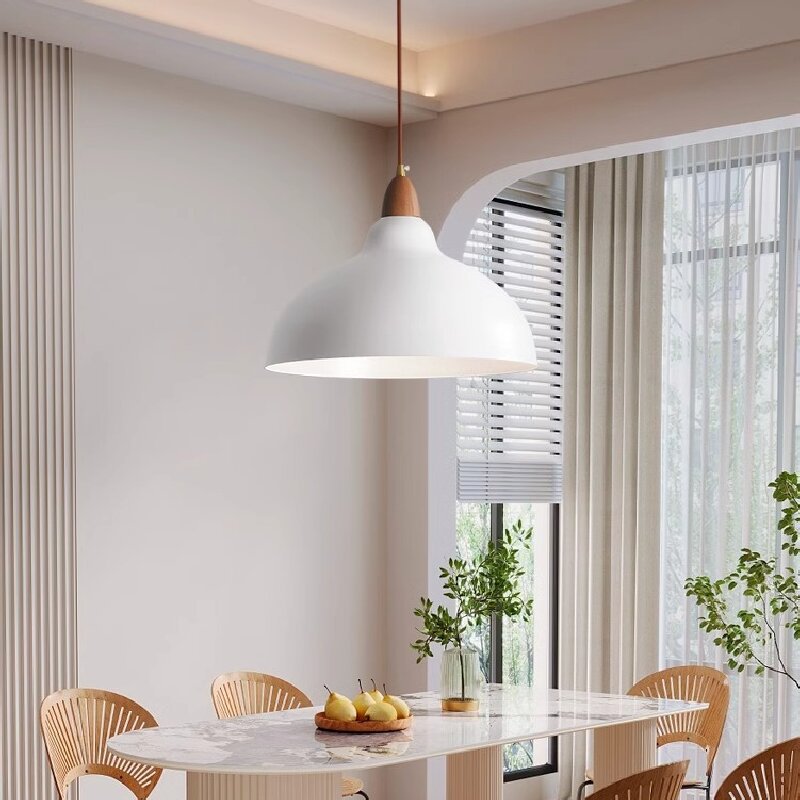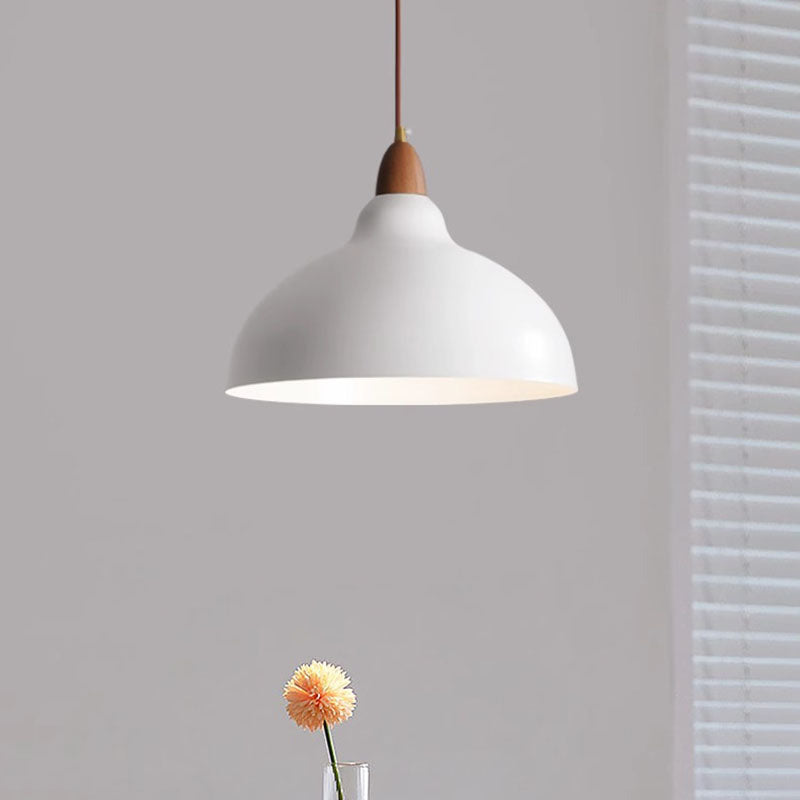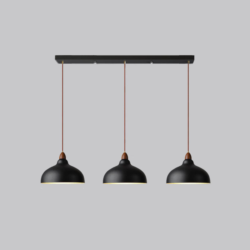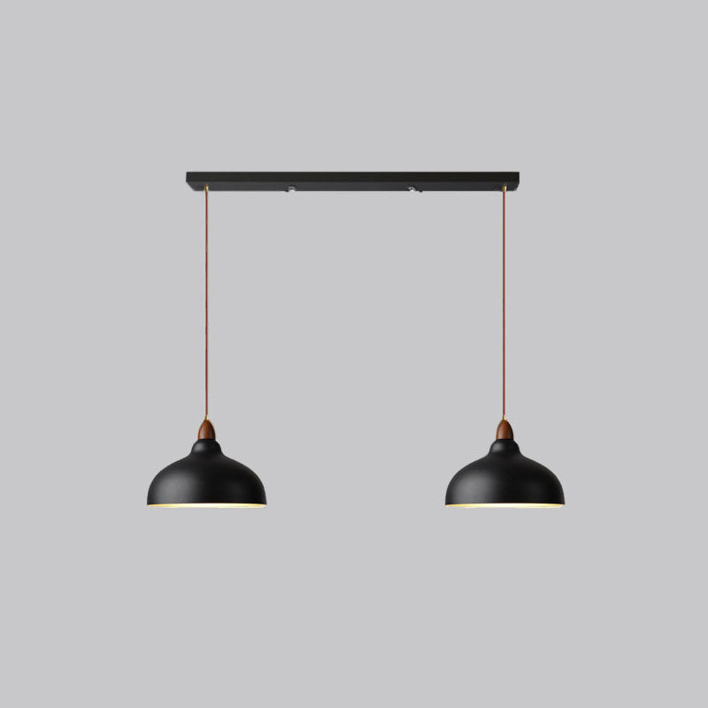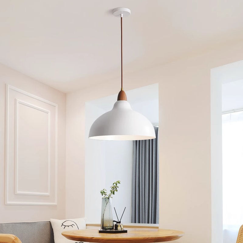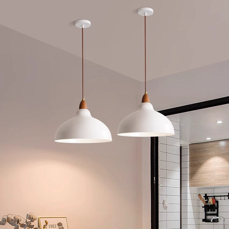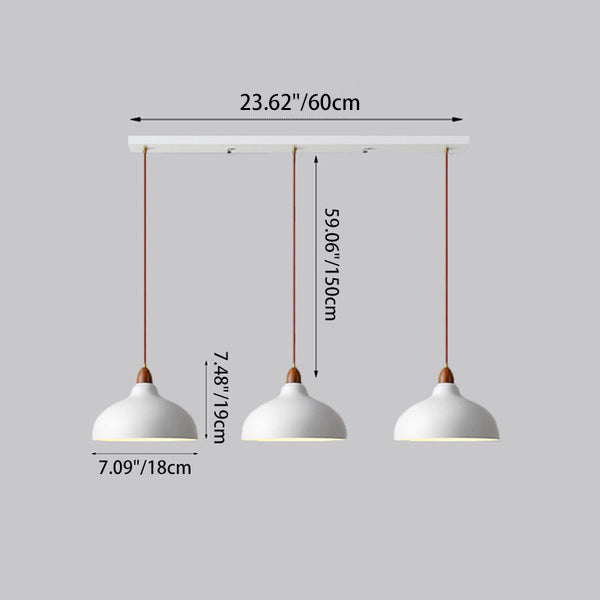 Contemporary Scandinavian Iron Wood Bowl 1/2/3 Light Pendant Light For Dining Room