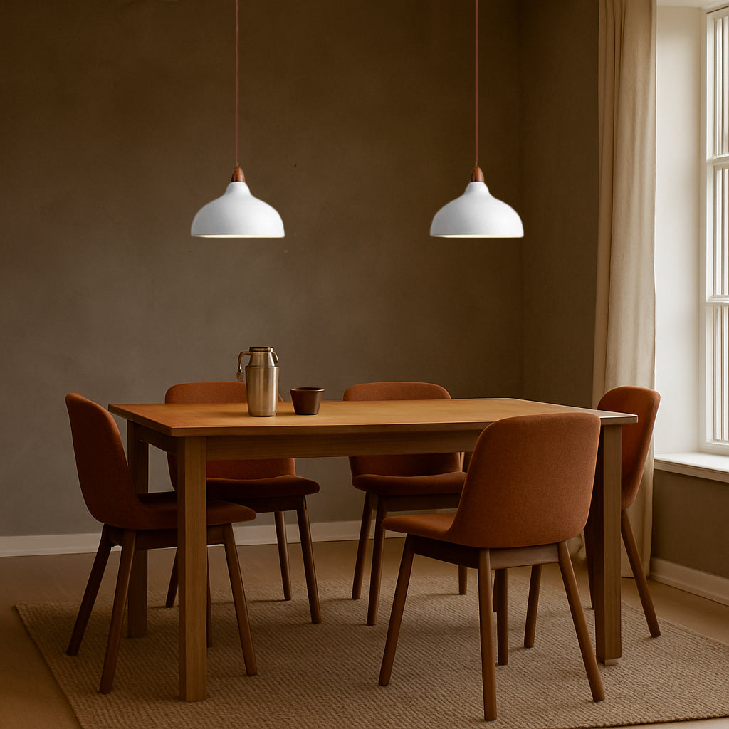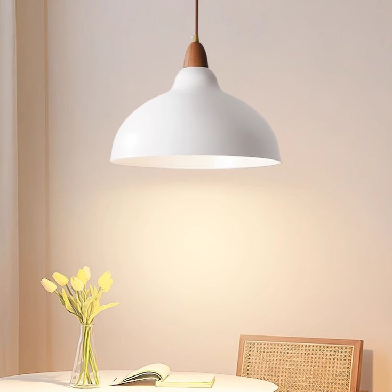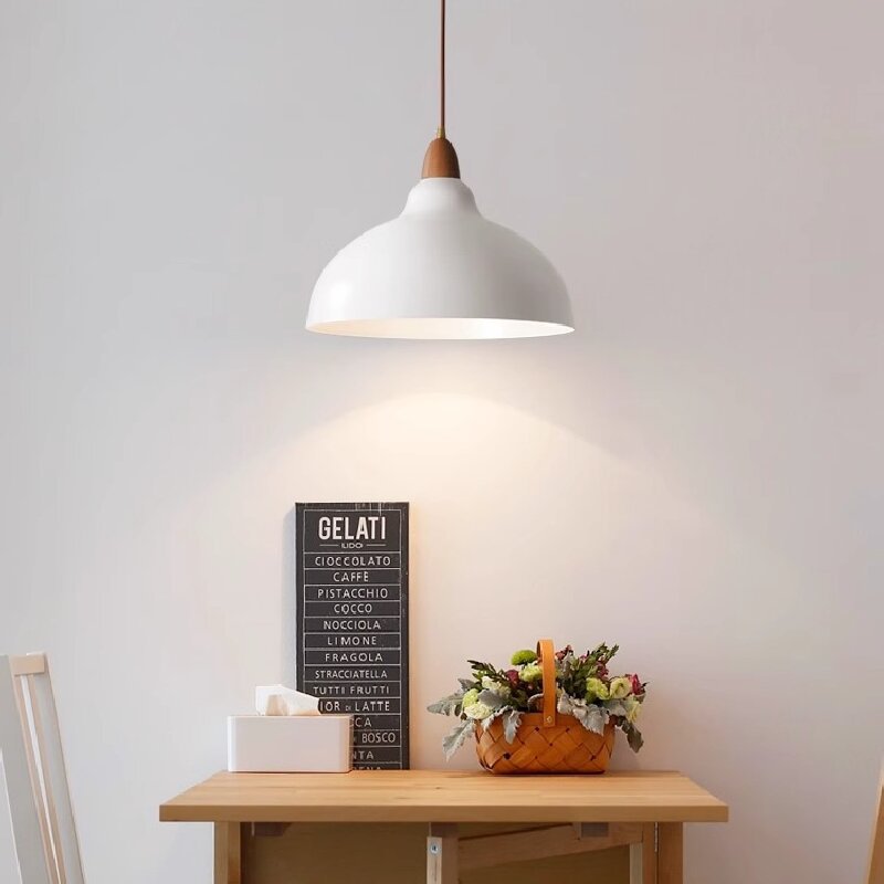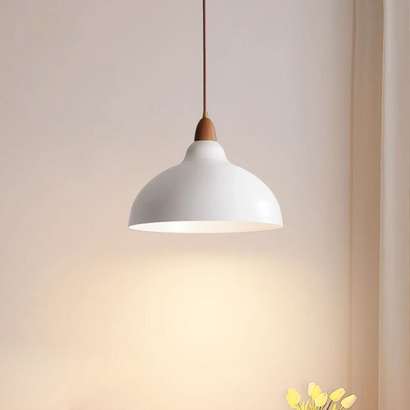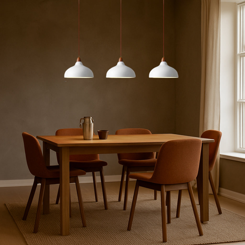 Contemporary Scandinavian Iron Wood Bowl 1/2/3 Light Pendant Light For Dining Room