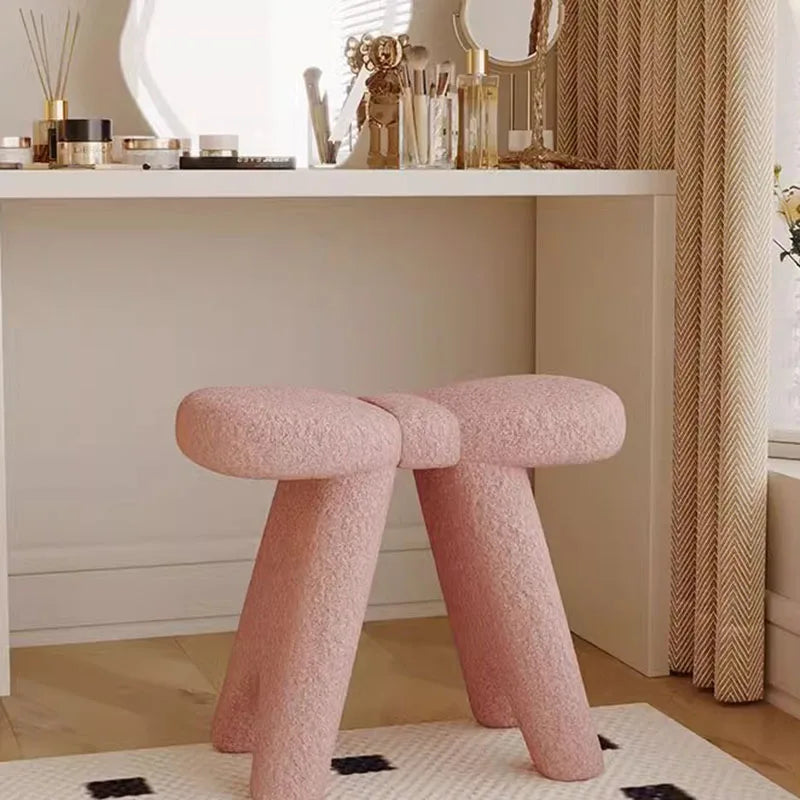 Contemporary Scandinavian Lambswool Butterfly Design Vanity Stool For Bedroom