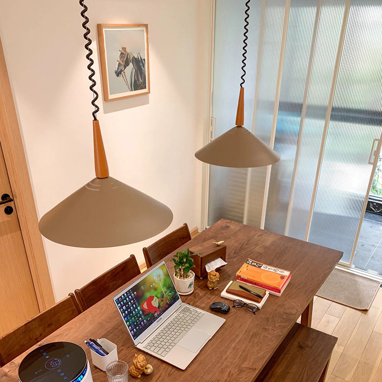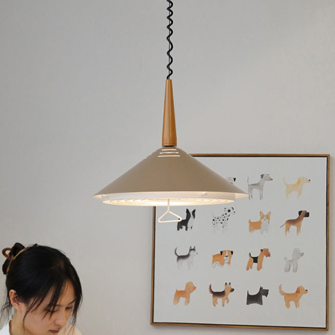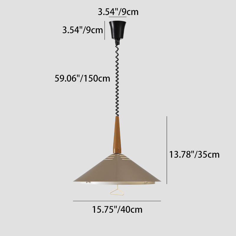 Contemporary Scandinavian Liftable Cone Round Iron 2-Light Pendant Light For Dining Room