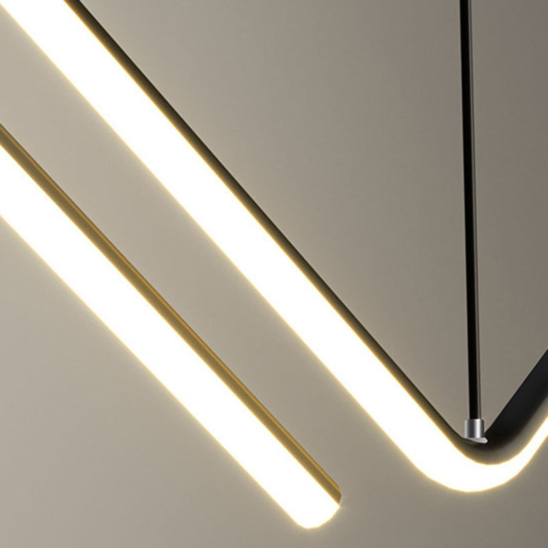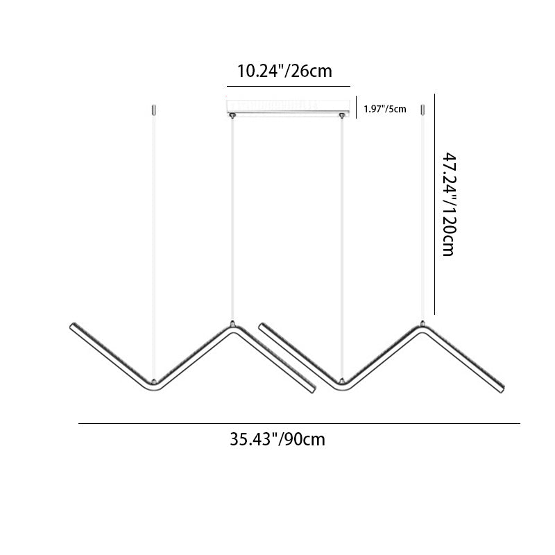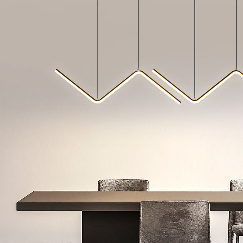 Contemporary Scandinavian Long Bent Line Iron Aluminum Acrylic LED Island Pendant Light For Dining Room