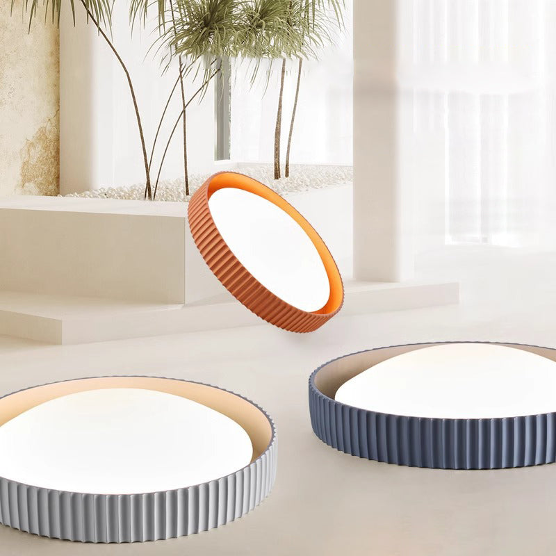 Contemporary Scandinavian Macaron Resin Acrylic Geometric Circle LED Flush Mount Ceiling Light For Bedroom