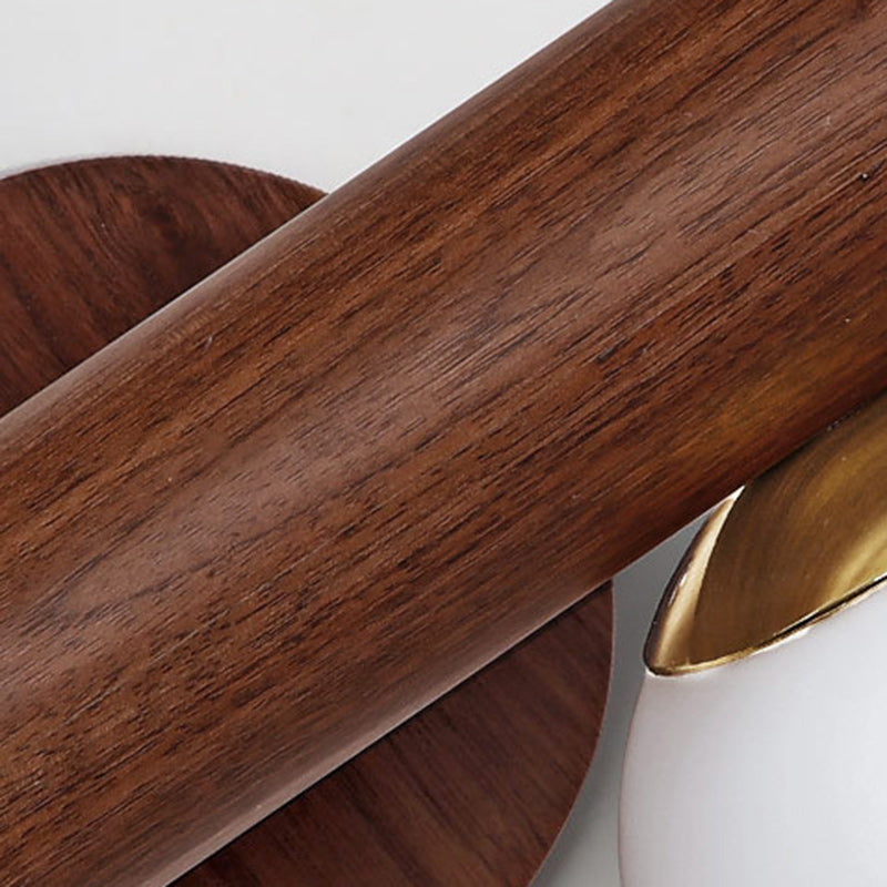 This Nordic-inspired 2-light wall sconce features a warm walnut rubberwood finish with elegant glass globes and a clean cylindrical design. With high light transmittance and easy-to-clean materials, it's perfect for modern bedrooms, hallways, or cozy living rooms.